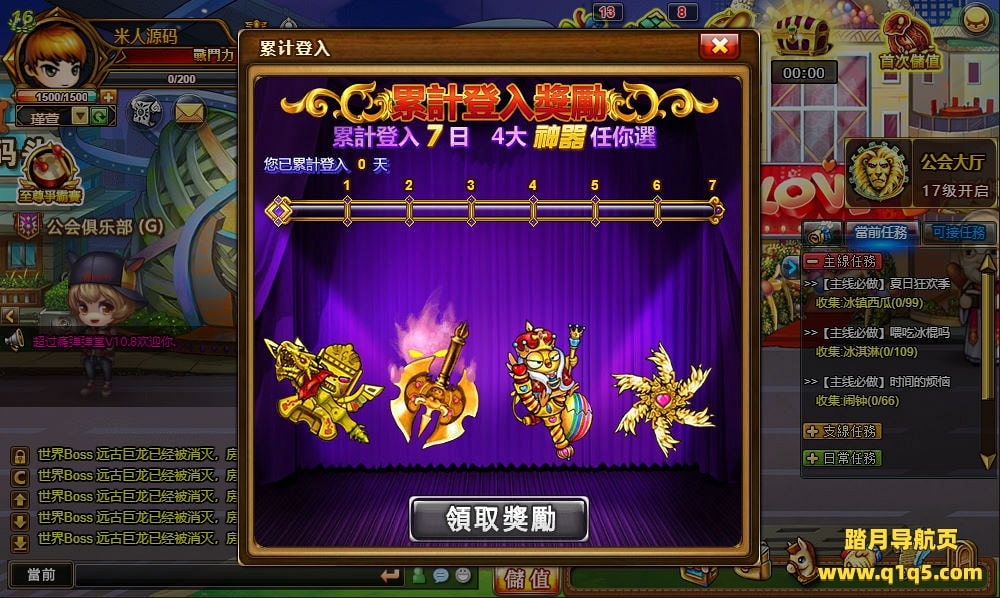 下面我们测试下游戏里的功能看看。好了,其他功能自行测试吧。更多的游戏资源可以访问www.q1q5.com下载,我们每款游戏资源均单独制作了独立的视频架设教程,让小白也可以快速上手游戏架设,快来体验自己做GM的乐趣吧!