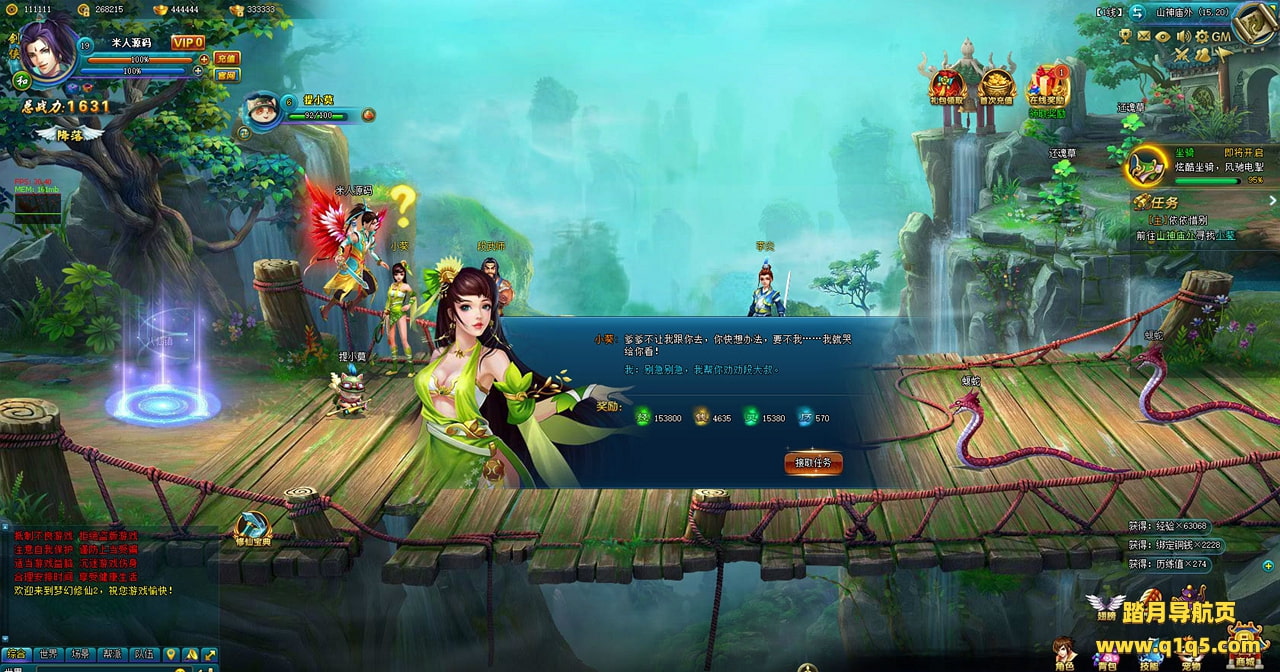 下面我们来测试下游戏里的功能看看吧。好了,其他功能就自行测试吧。更多的游戏资源可以访问www.q1q5.com下载,我们每款游戏资源均单独制作了独立的视频架设教程,让小白也可以快速上手游戏架设,快来体验自己做GM的乐趣吧!