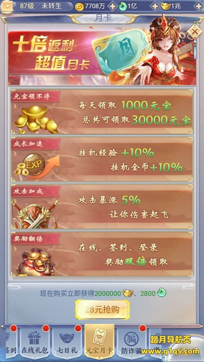 下面我们来测试下游戏里的功能看看。下面我们通过网页在测试下游戏里的功能。好了。其他功能就自行测试吧。更多的游戏资源可以访问www.q1q5.com下载,我们每款游戏资源均单独制作了独立的视频架设教程,让小白也可以快速上手游戏架设,快来体验自己做GM的乐趣吧!