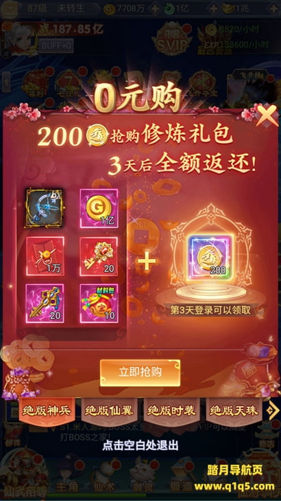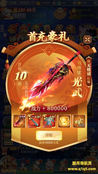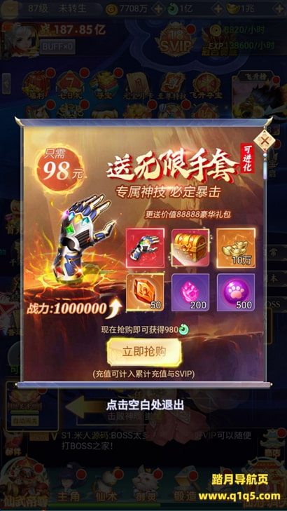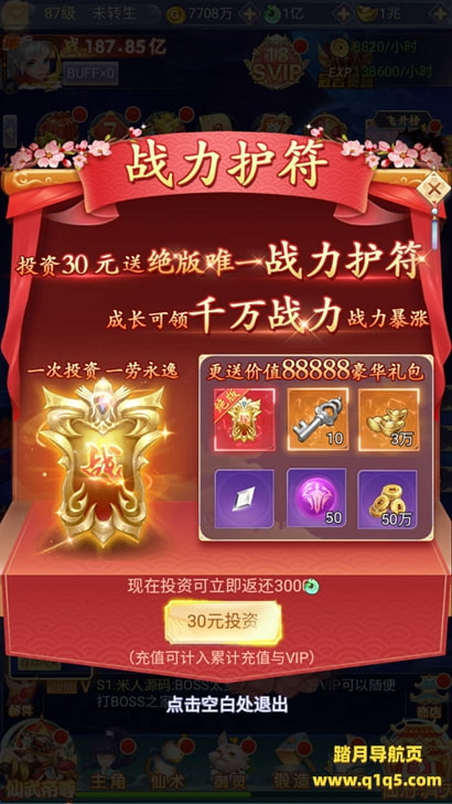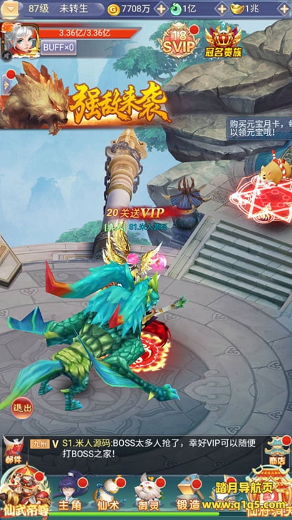 注:首次进游戏卡初始化99,刷新下网页即可,如果使用的apk,就关掉重新进就行!然后选择一区进入。