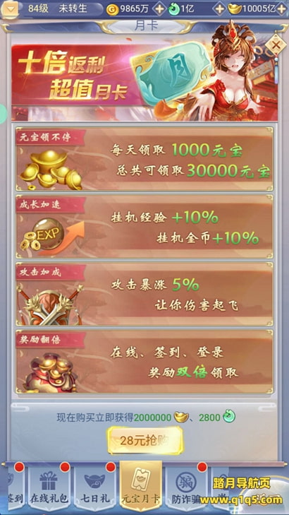好了,下面我们测试下游戏里的功能看看。其他功能就自行测试吧。更多的游戏资源可以访问www.q1q5.com下载,我们每款游戏资源均单独制作了独立的视频架设教程,让小白也可以快速上手游戏架设,快来体验自己做GM的乐趣吧!