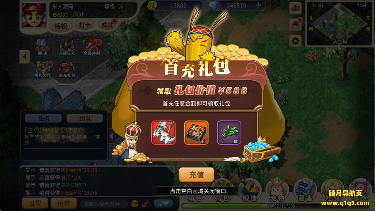 下面我们来测试下游戏里的功能看看吧。好了,其他功能就自行测试吧。更多的游戏资源可以访问www.q1q5.com下载,我们每款游戏资源均单独制作了独立的视频架设教程,让小白也可以快速上手游戏架设,快来体验自己做GM的乐趣吧!