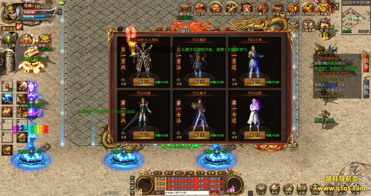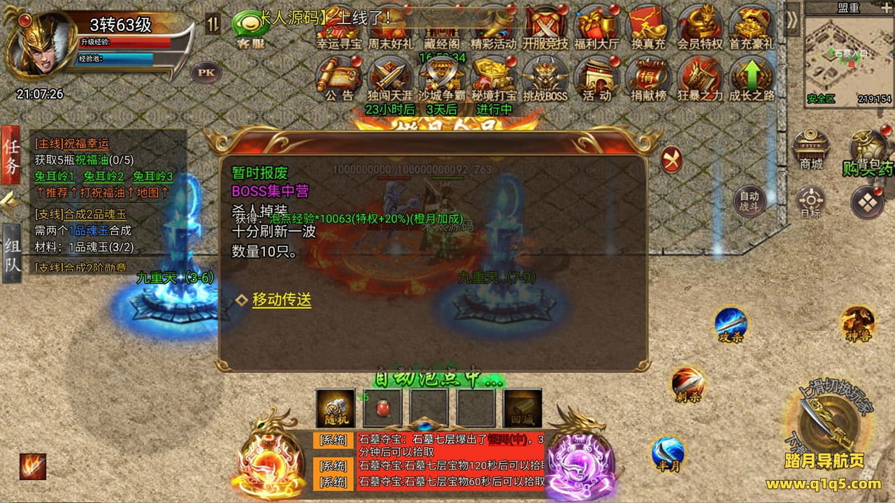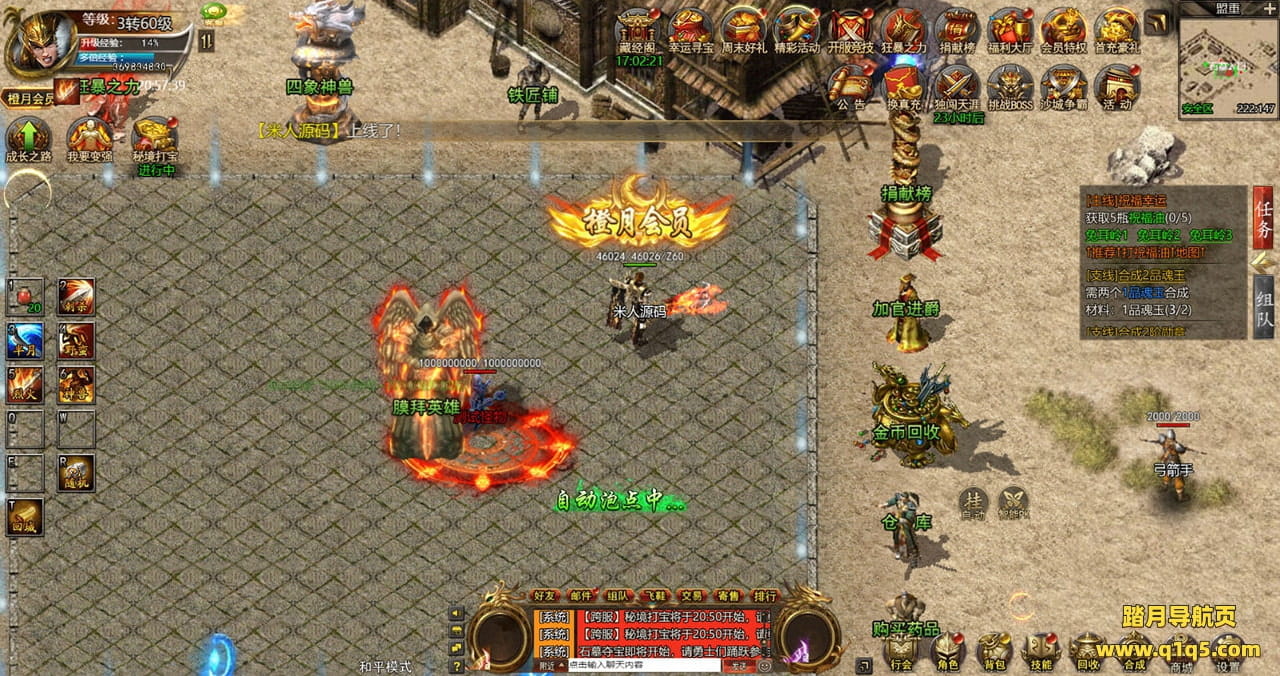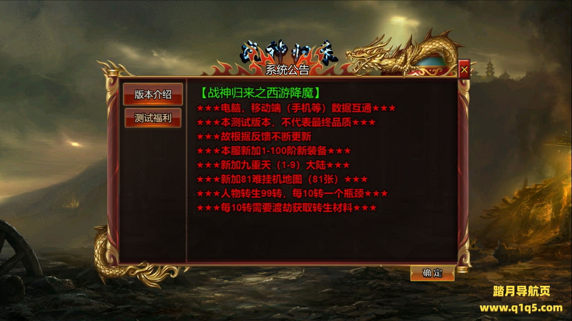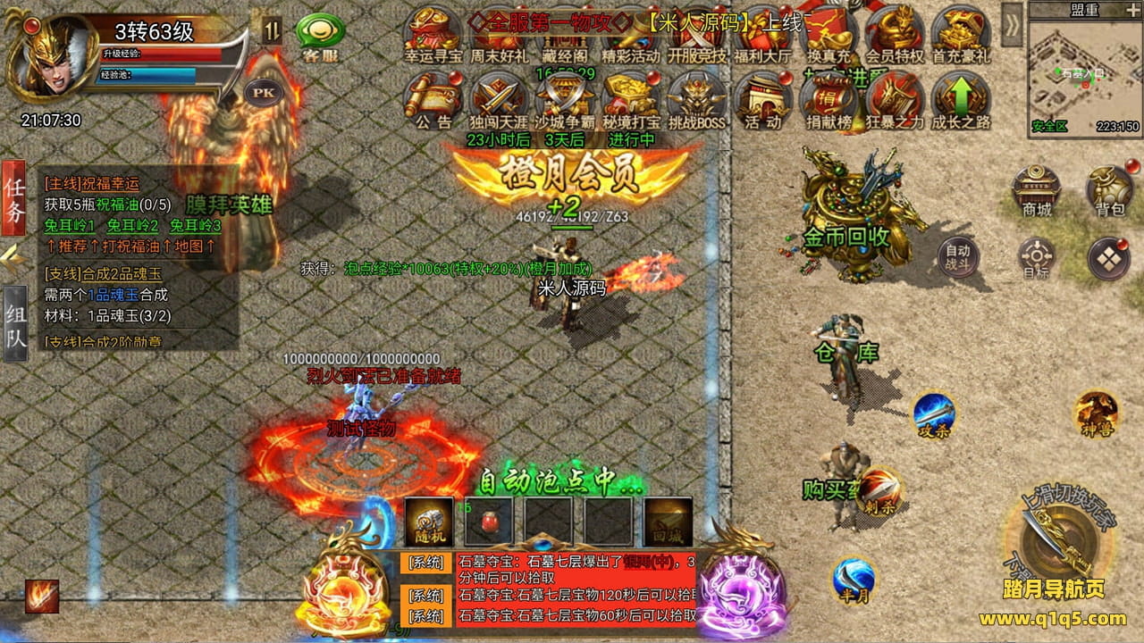 下面我们来测试下游戏里的功能看看。好了,其他功能就自行测试吧。更多的游戏资源可以访问www.q1q5.com下载,我们每款游戏资源均单独制作的有独立的视频架设教程,让小白也可以快速上手游戏架设,快来体验自己做GM的乐趣吧!