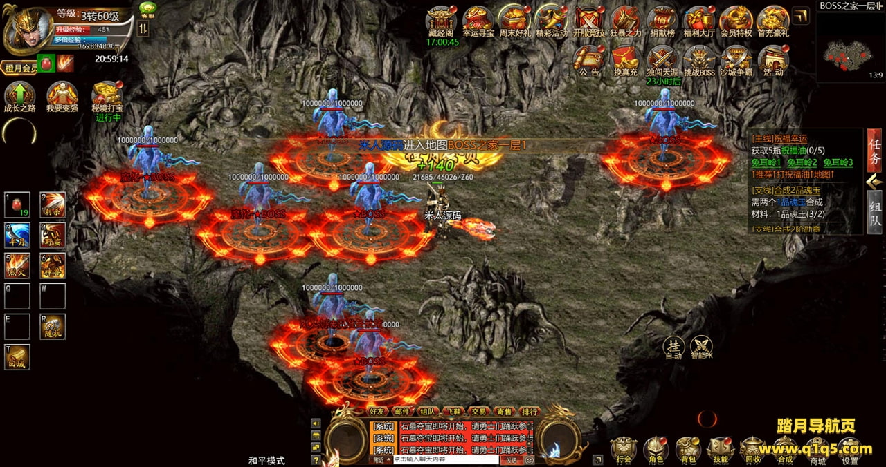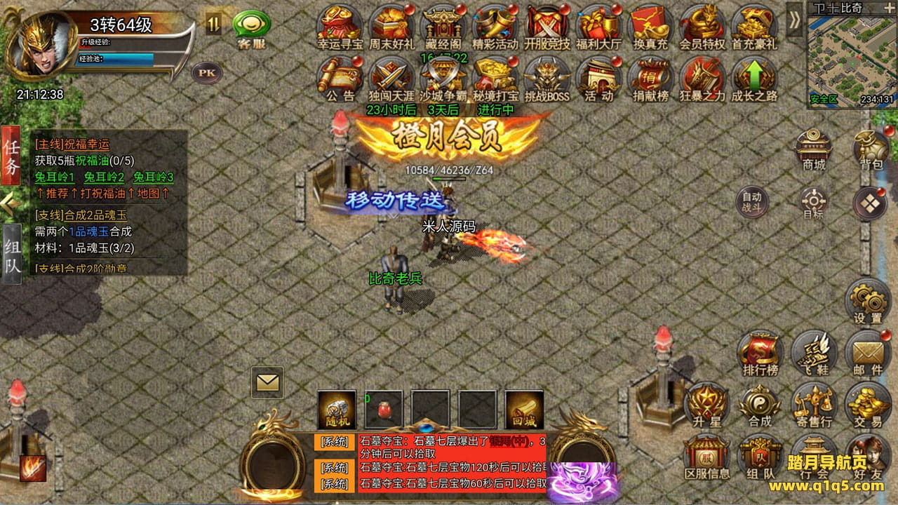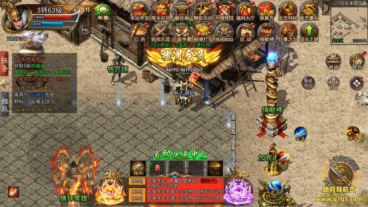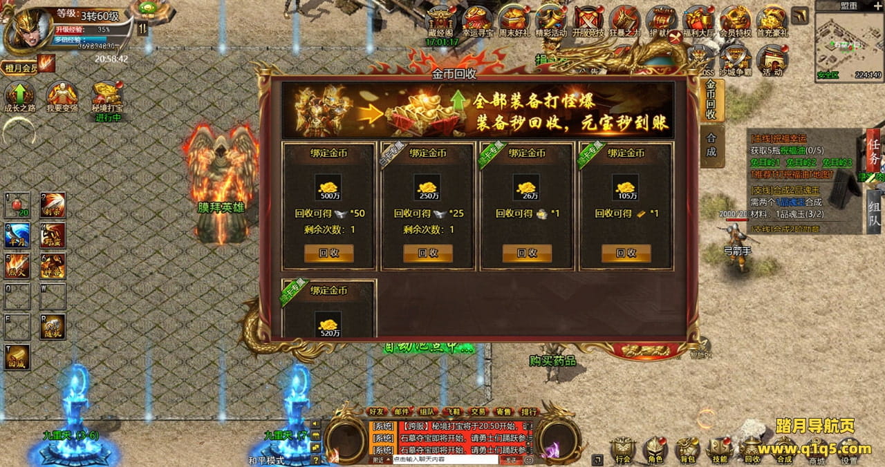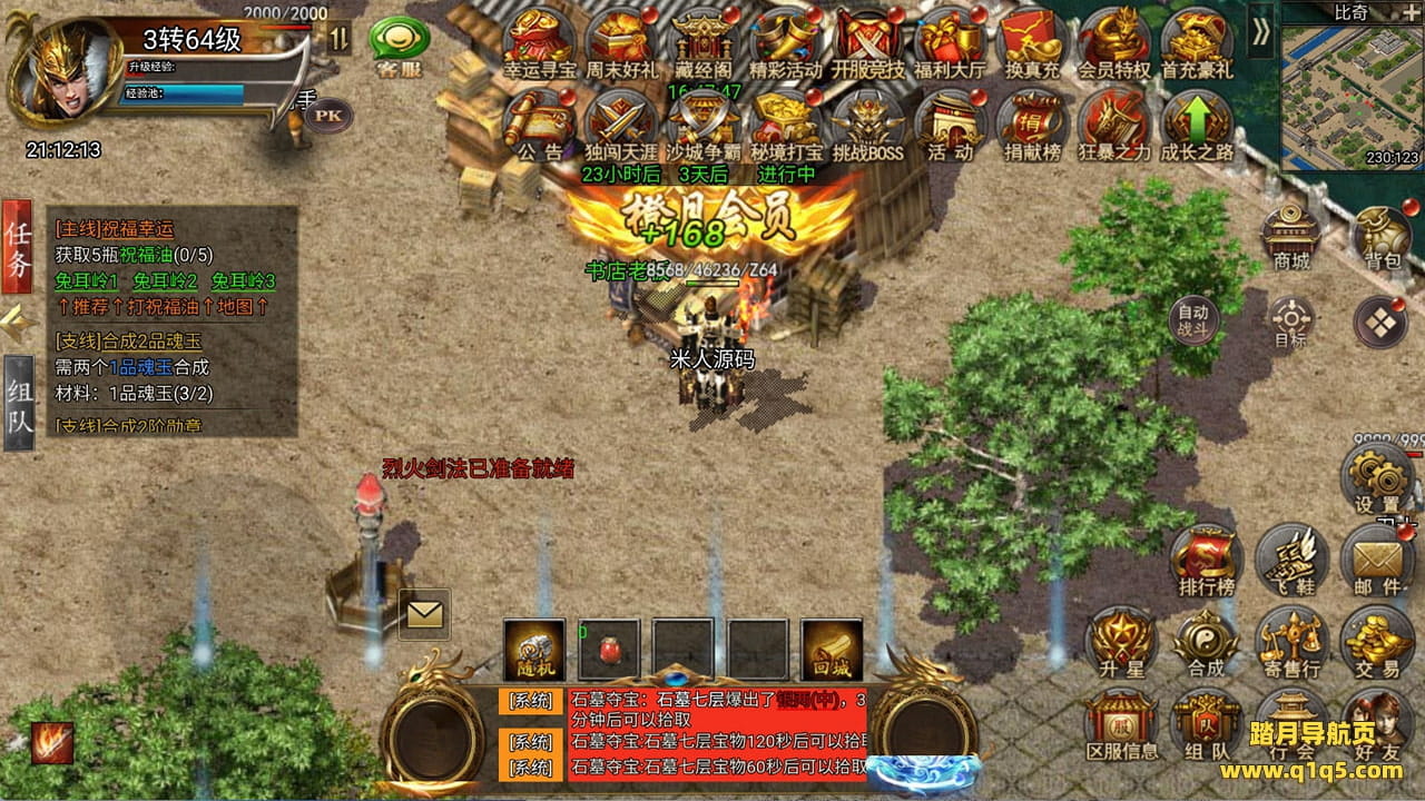 下面我们来测试下游戏里的功能看看。好了,其他功能就自行测试吧。更多的游戏资源可以访问www.q1q5.com下载,我们每款游戏资源均单独制作的有独立的视频架设教程,让小白也可以快速上手游戏架设,快来体验自己做GM的乐趣吧!