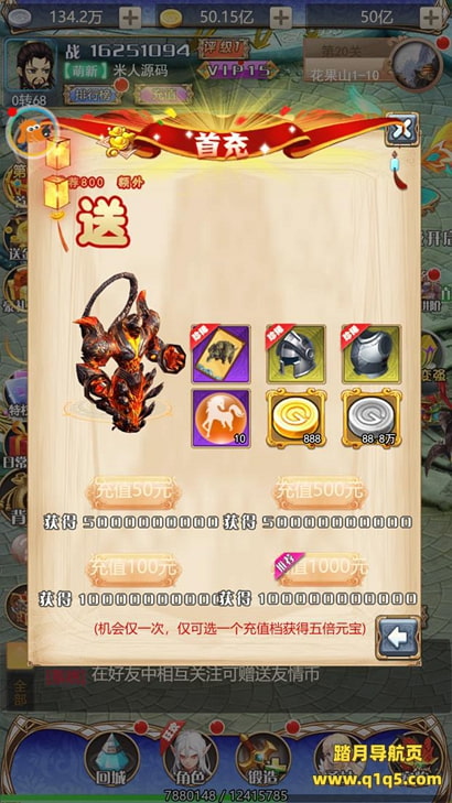 5档:单日充值150000元(实际金额1500元):神·进阶丹*2000,史装碎片*400,魔药大礼包*20