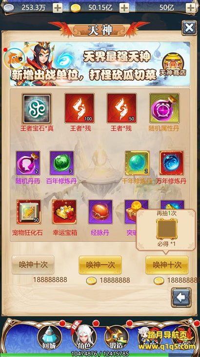 3档:单日充值50000元(实际金额500元):随机进阶丹*2000,神·进阶丹*200,属性丹大礼包*50