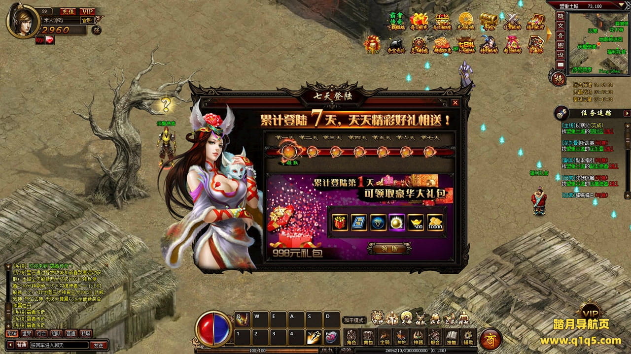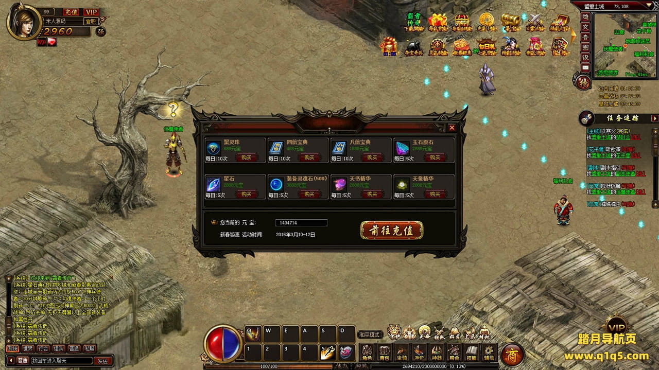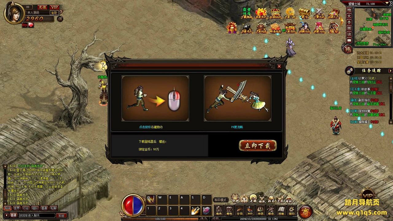 好了,我们进游戏测试下里面功能看看。其他功能就自行测试了吧。更多的游戏资源可以访问www.q1q5.com下载,我们每款游戏资源均单独制作了独立的视频架设教程,让小白也可以快速上手游戏架设,快来体验自己做GM的乐趣吧!