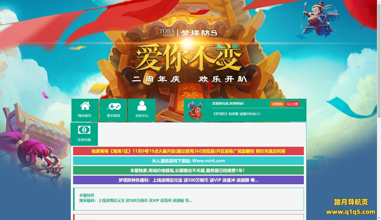 首先进入我们官网:www.q1q5.com 搜索《梦塔防》下载好服务端,我这里已事先下载好了