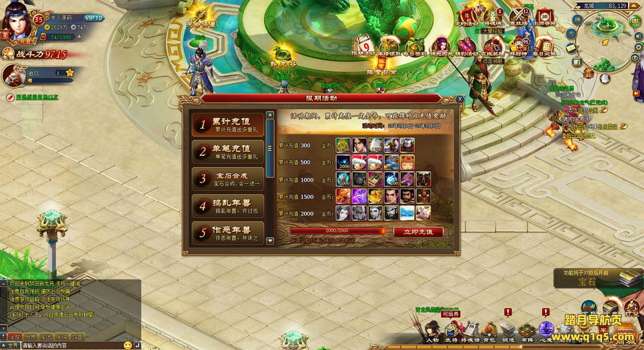 下面我们来测试下游戏里的功能看看。好了,其他功能就自行测试吧。更多的游戏资源可以访问www.q1q5.com下载,我们每款游戏资源均单独制作了独立的视频架设教程,让小白也可以快速上手游戏架设,快来体验自己做GM的乐趣吧!