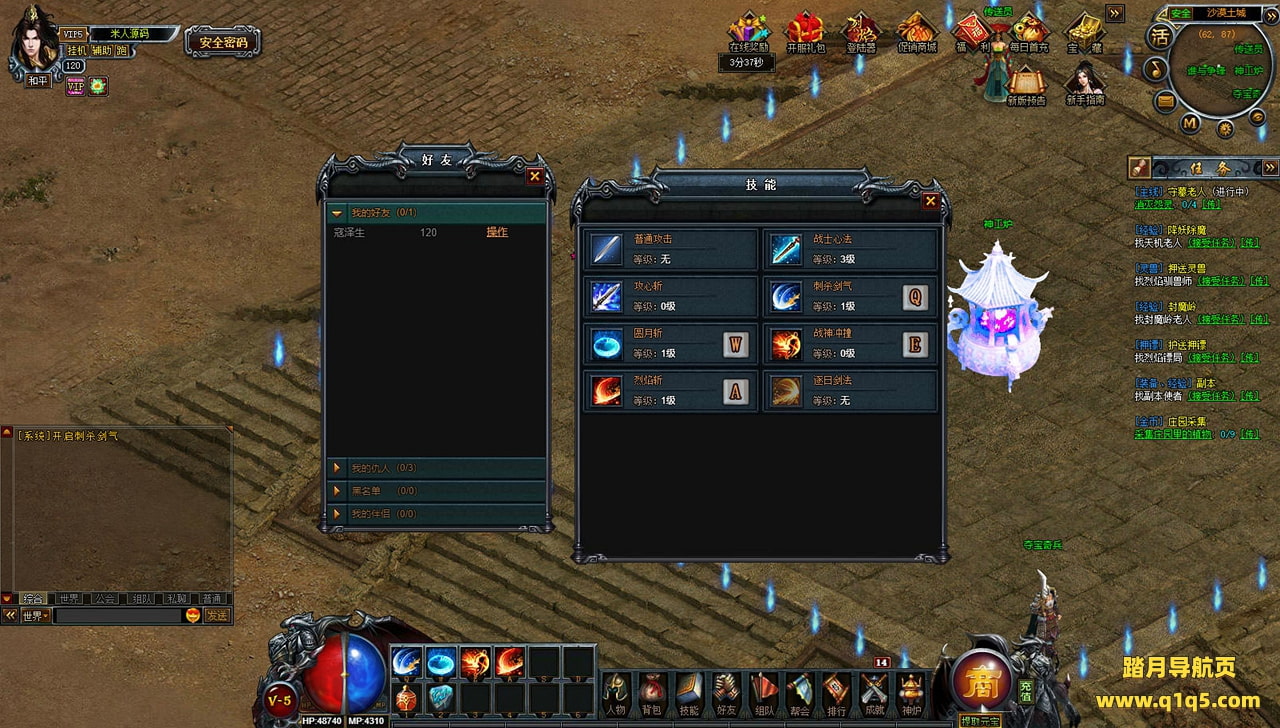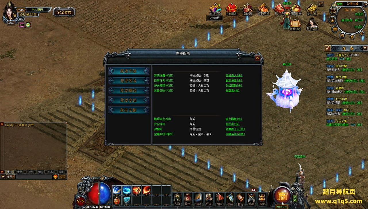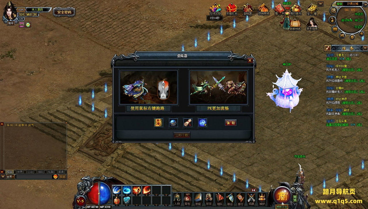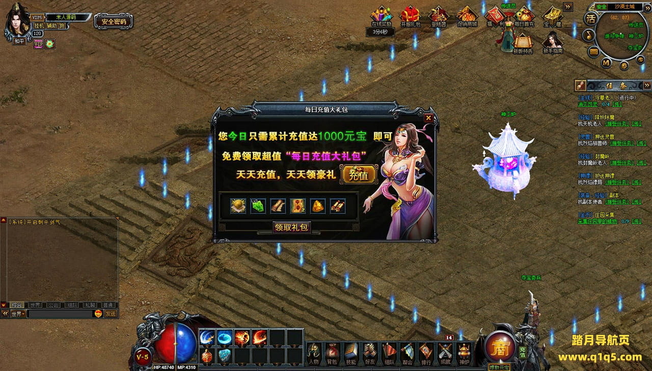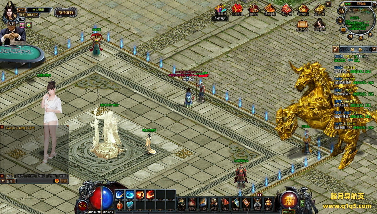 下面我们来测试下游戏里的功能看看。好了,其他功能就自行测试吧。更多的游戏资源可以访问www.q1q5.com下载,我们每款游戏资源均单独制作了独立的视频架设教程,让小白也可以快速上手游戏架设,快来体验自己做GM的乐趣吧!