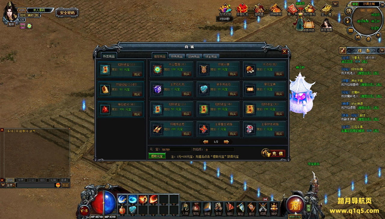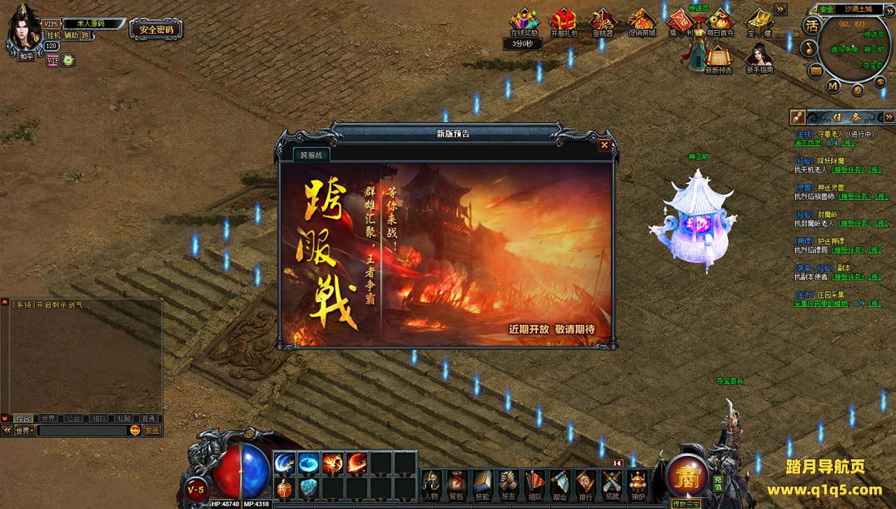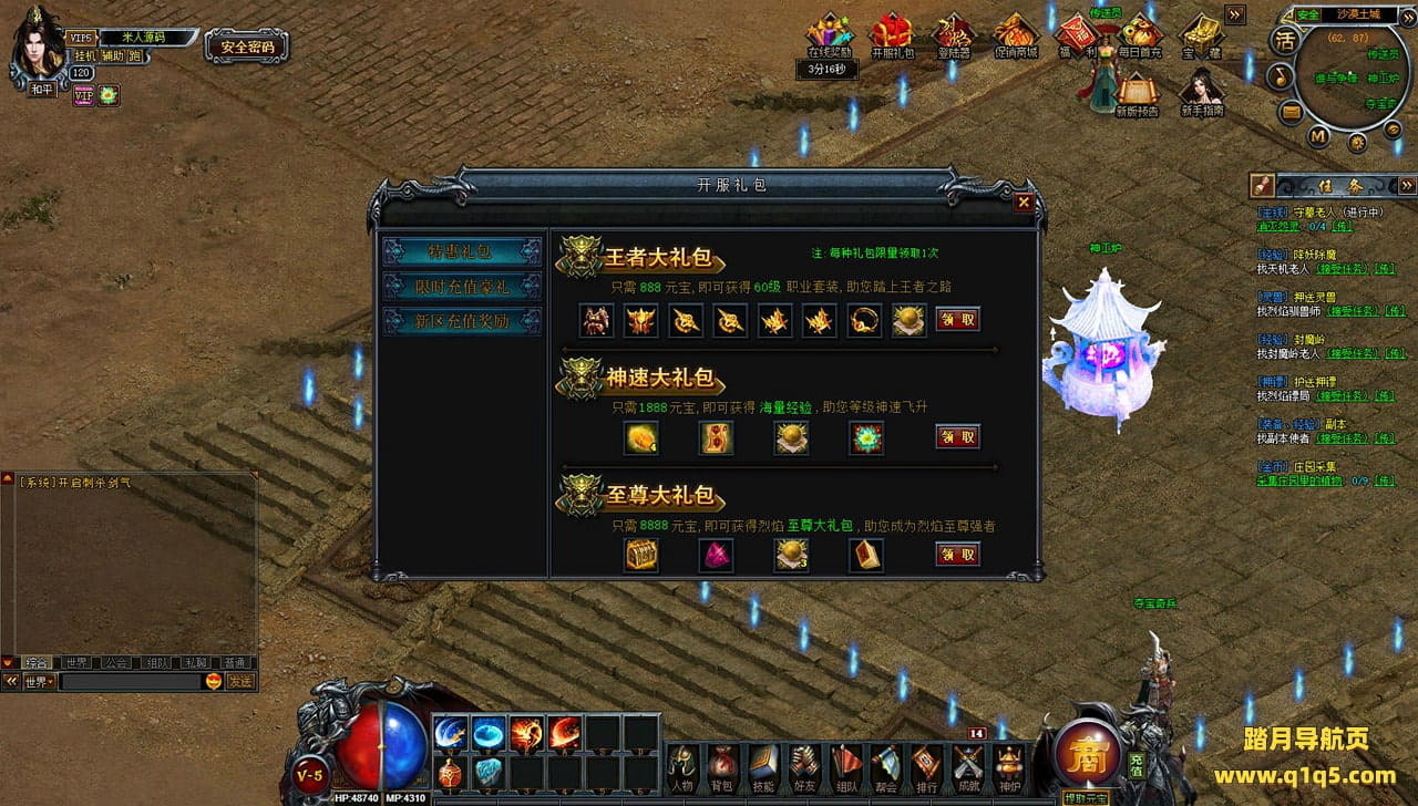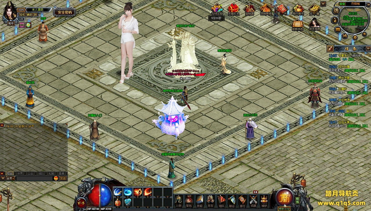 下面我们来测试下游戏里的功能看看。好了,其他功能就自行测试吧。更多的游戏资源可以访问www.q1q5.com下载,我们每款游戏资源均单独制作了独立的视频架设教程,让小白也可以快速上手游戏架设,快来体验自己做GM的乐趣吧!