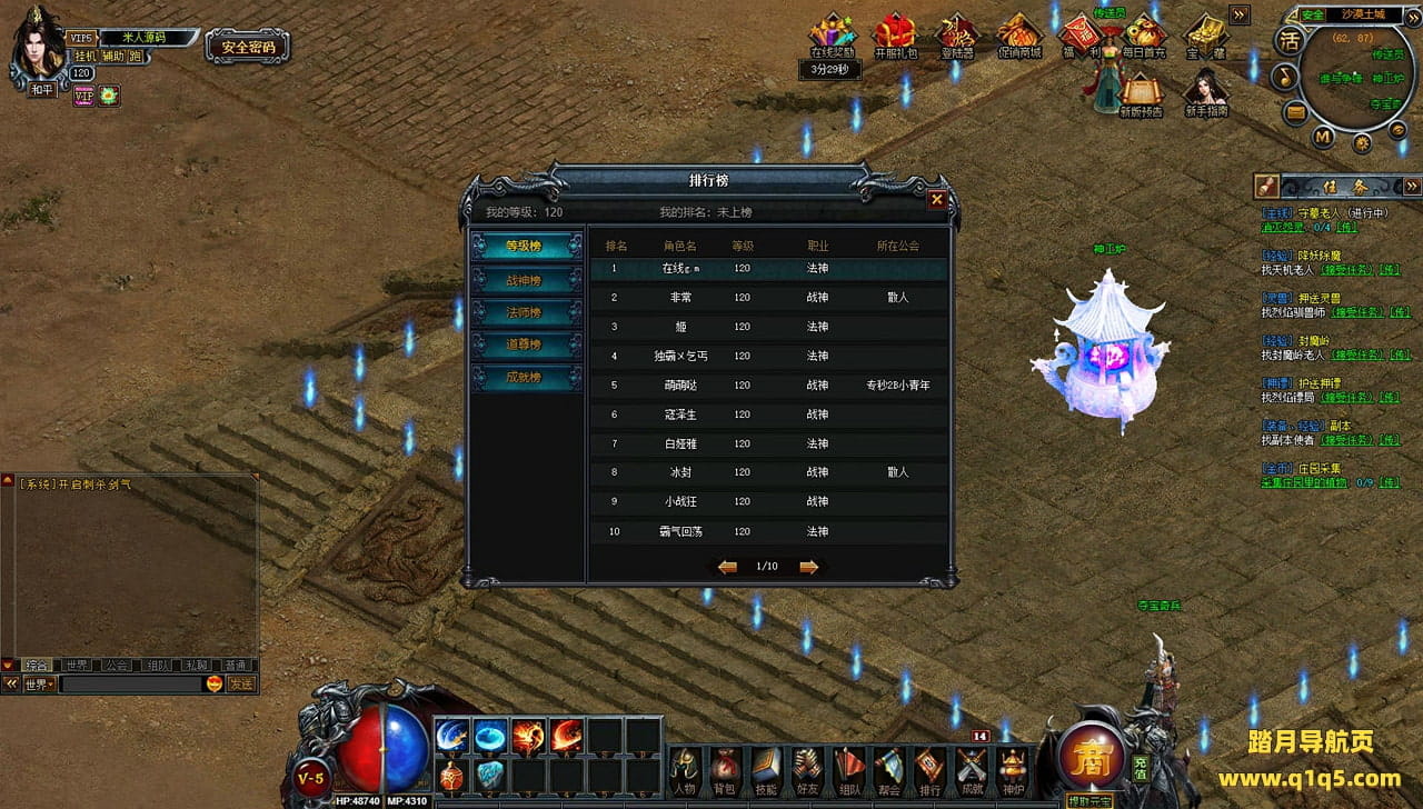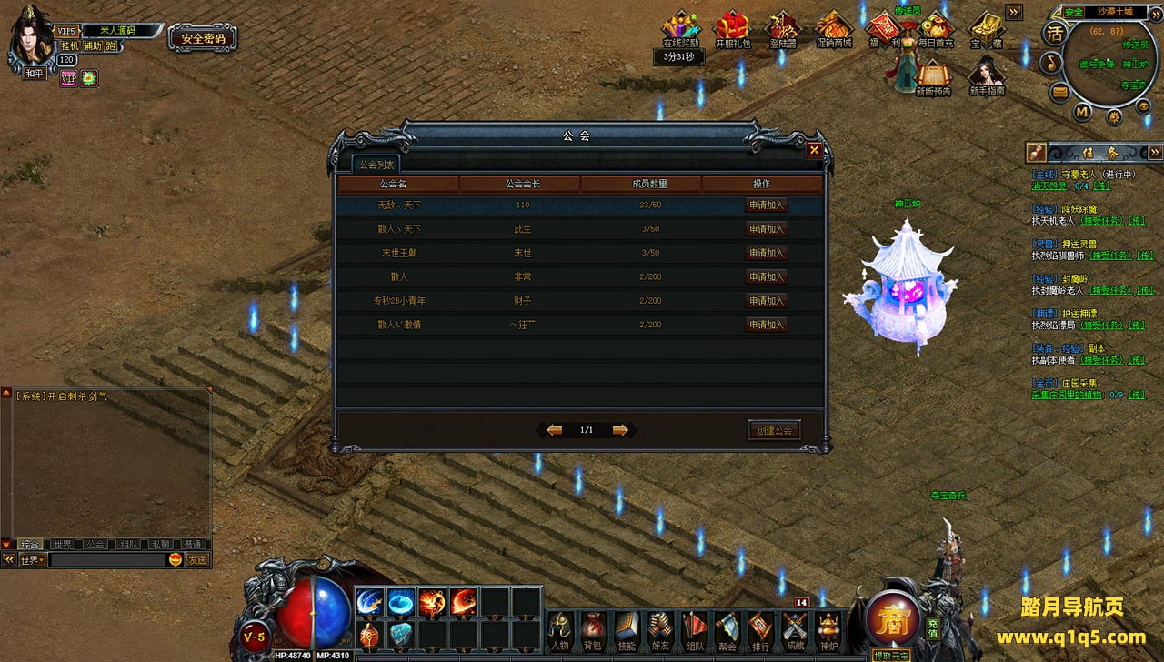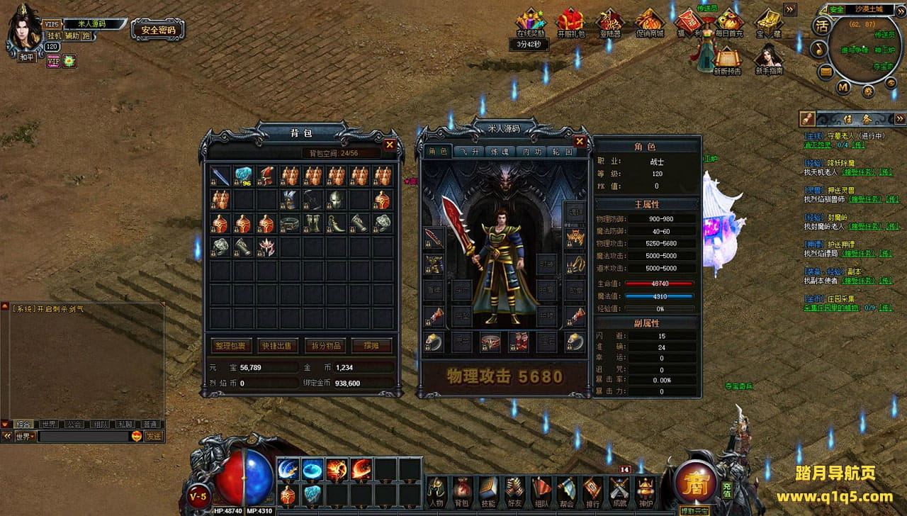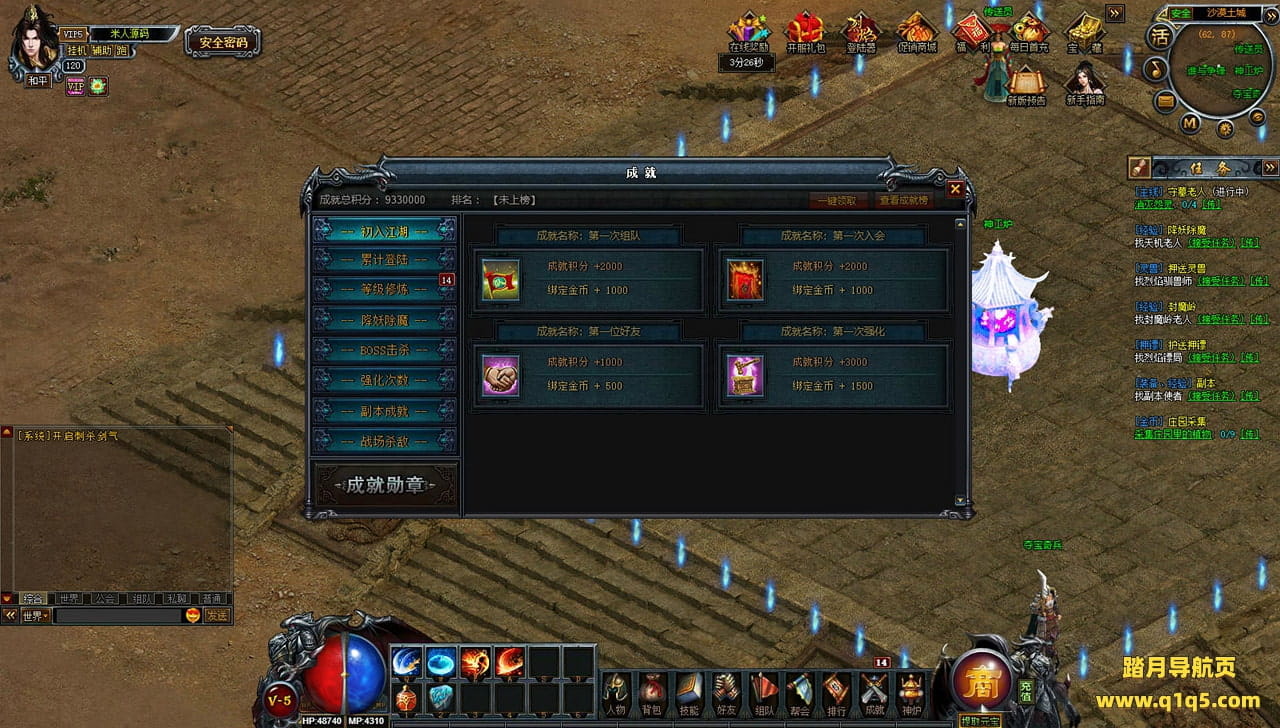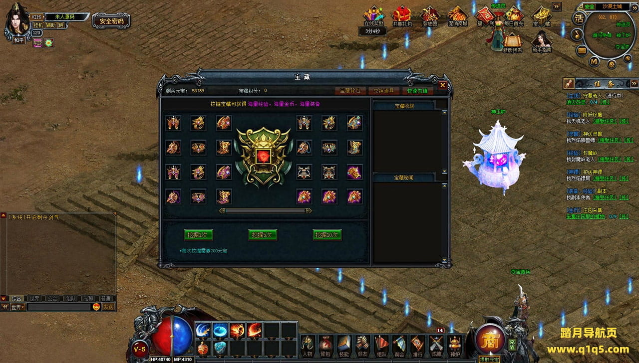 下面我们来测试下游戏里的功能看看。好了,其他功能就自行测试吧。更多的游戏资源可以访问www.q1q5.com下载,我们每款游戏资源均单独制作了独立的视频架设教程,让小白也可以快速上手游戏架设,快来体验自己做GM的乐趣吧!