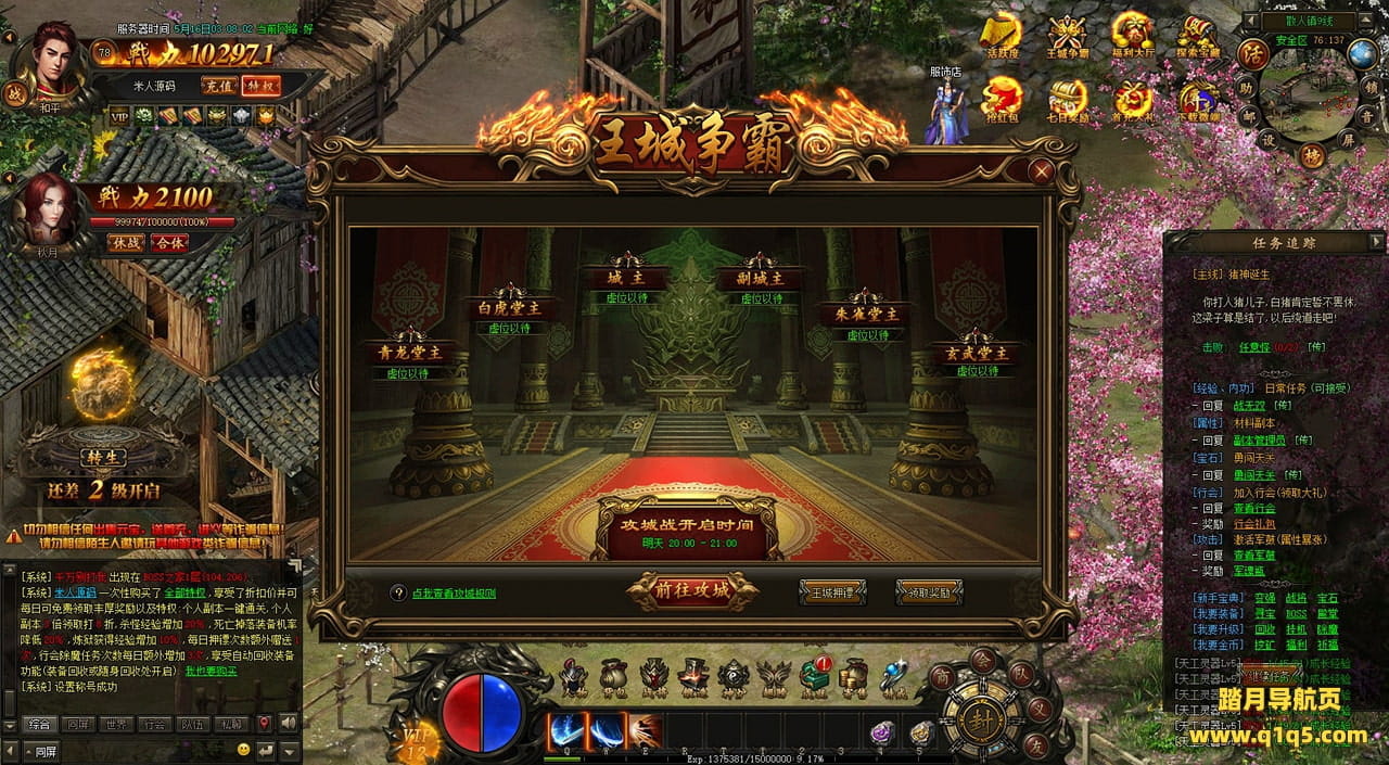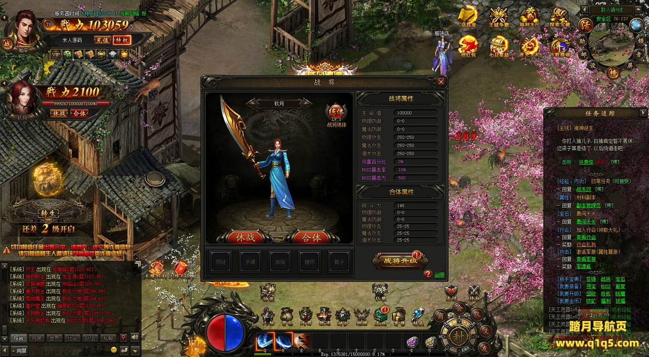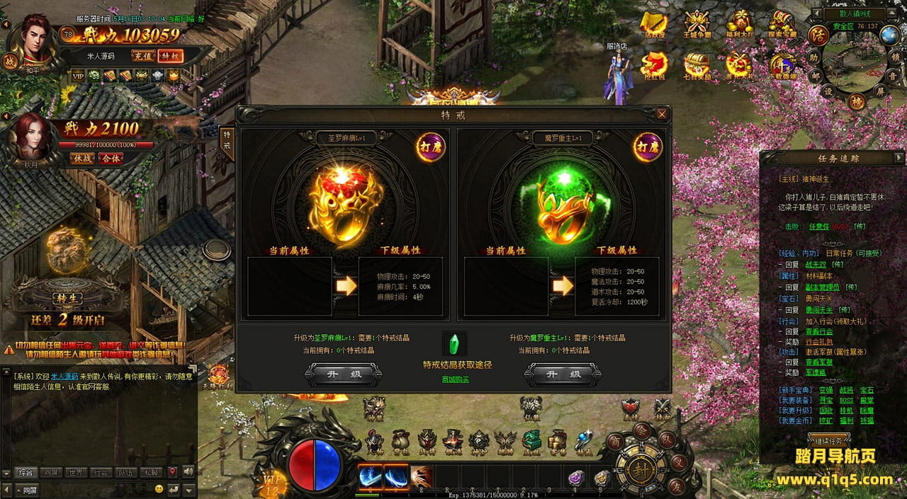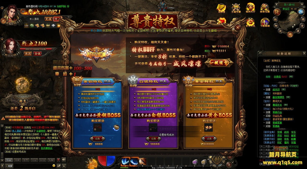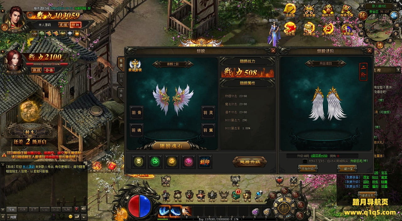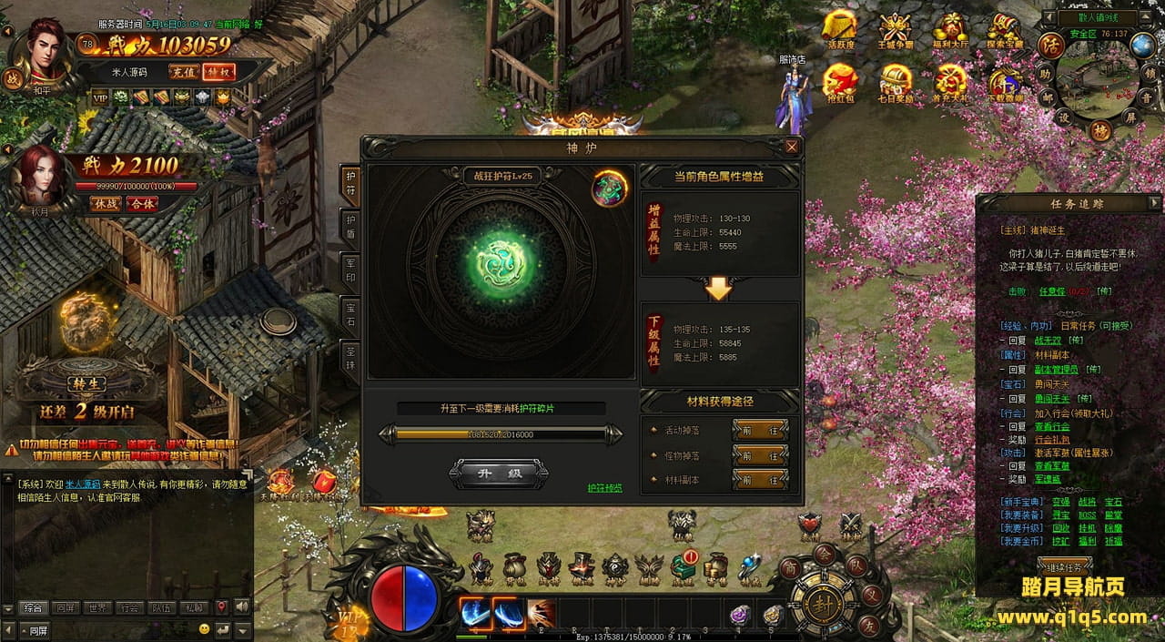 下面我们在进入游戏测试下游戏里的功能看看。遇到这类问题,再次进不去了。就需要确认看是否是DB掉线了。补充启动即可。然后再进入即可。好了,其他功能就自行测试吧。更多的游戏资源可以访问www.q1q5.com下载,我们每款游戏资源均单独制作了独立的视频架设教程,让小白也可以快速上手游戏架设,快来体验自己做GM的乐趣吧!