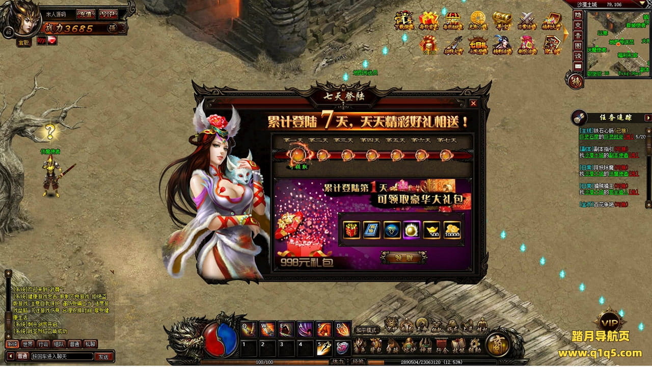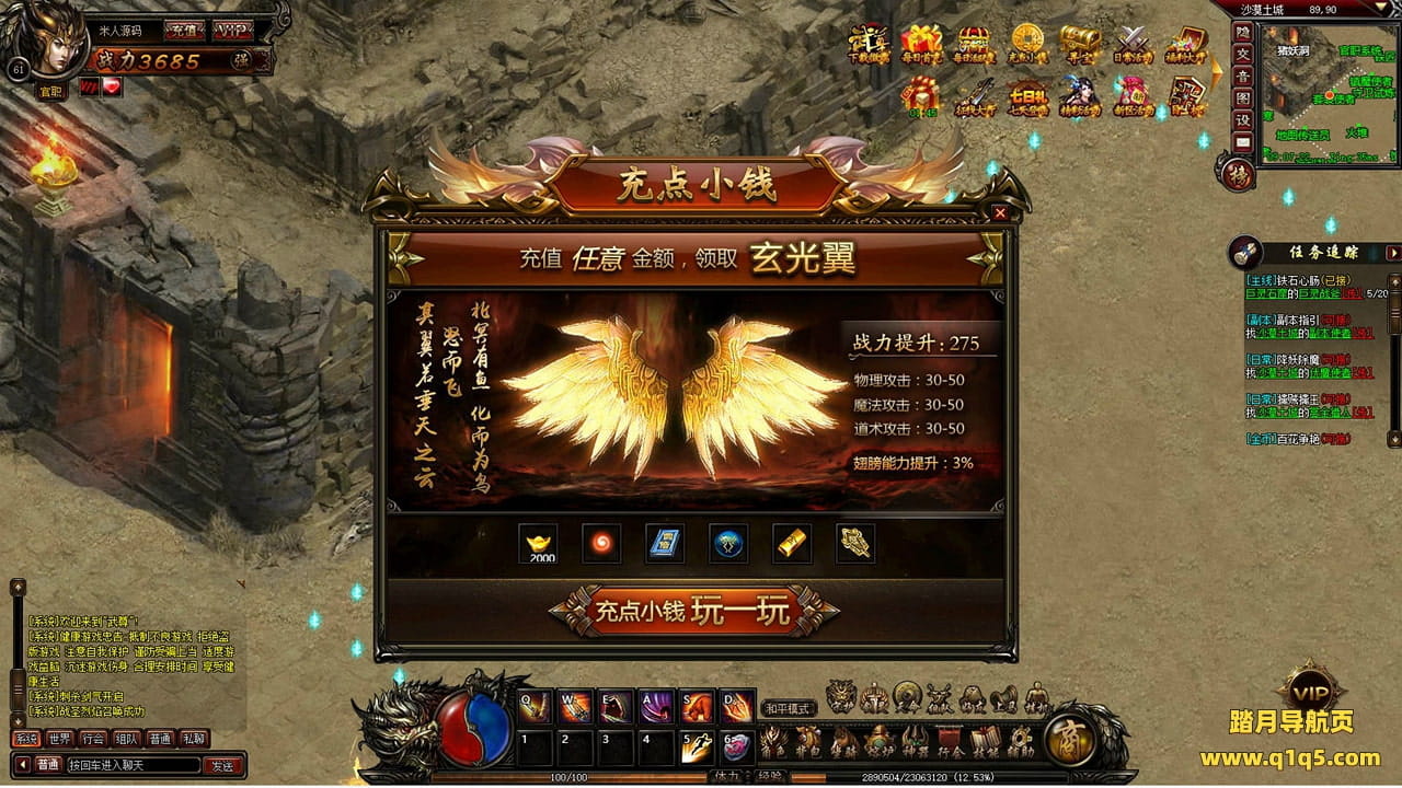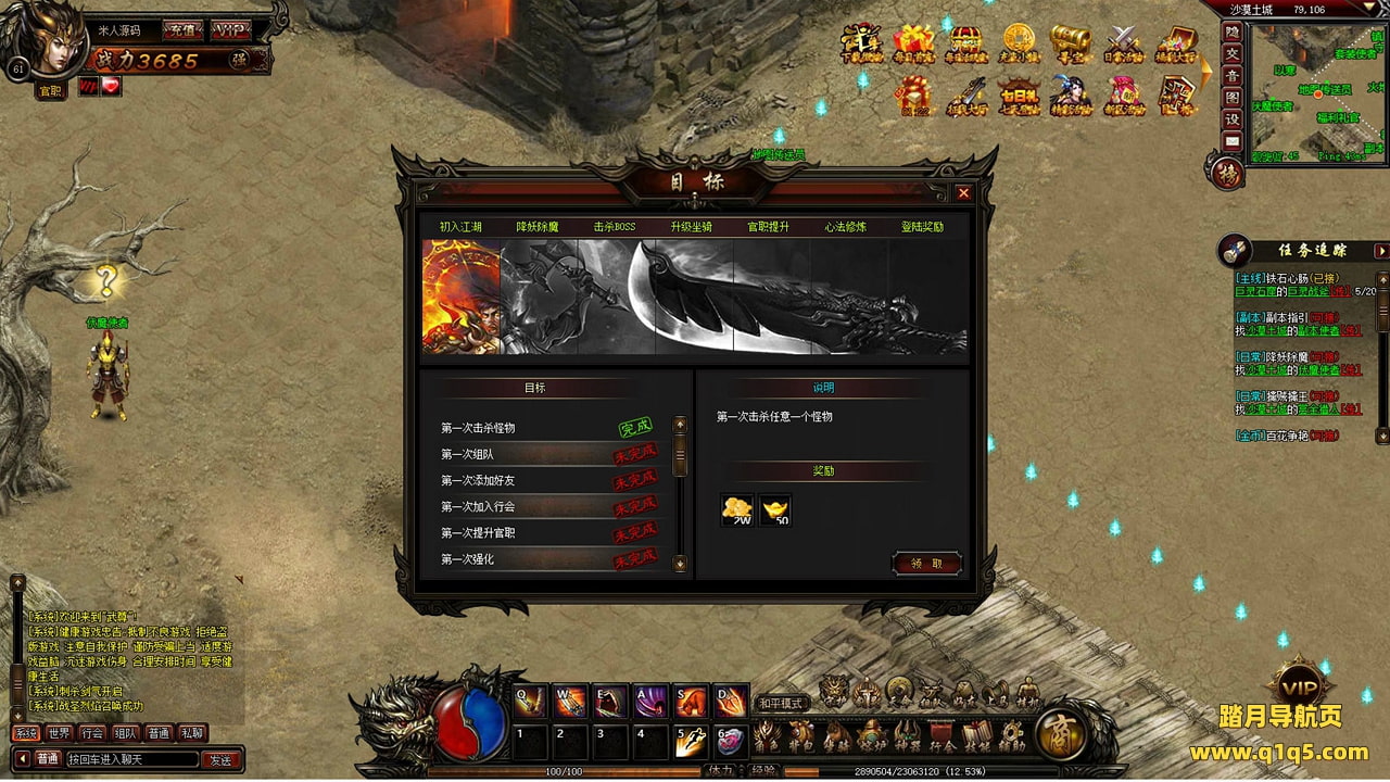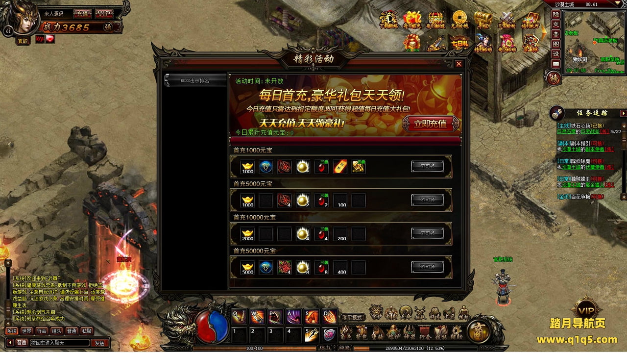下面我们测试下游戏里的功能看看。好了。其他功能就自行测试吧。更多的游戏资源可以访问www.q1q5.com下载,我们每款游戏资源均单独制作了独立的视频架设教程,让小白也可以快速上手游戏架设,快来体验自己做GM的乐趣吧!