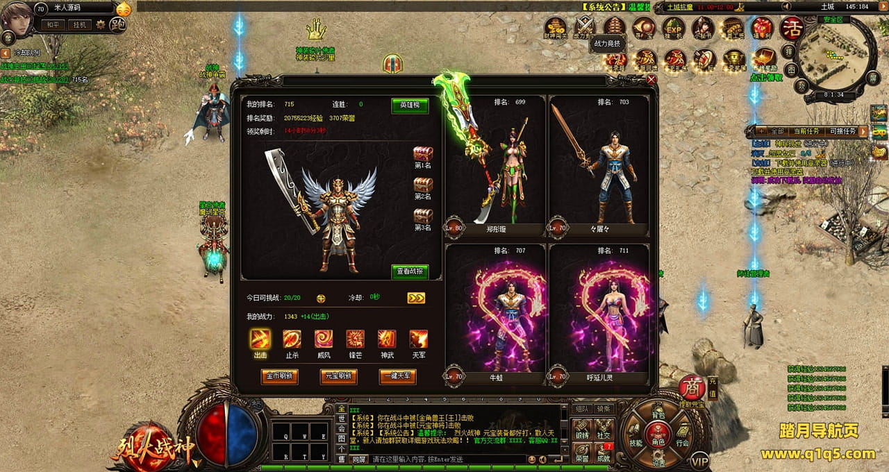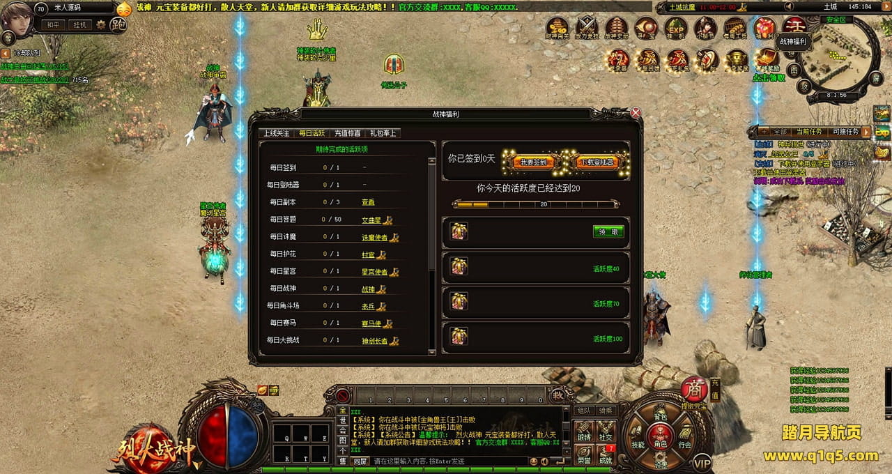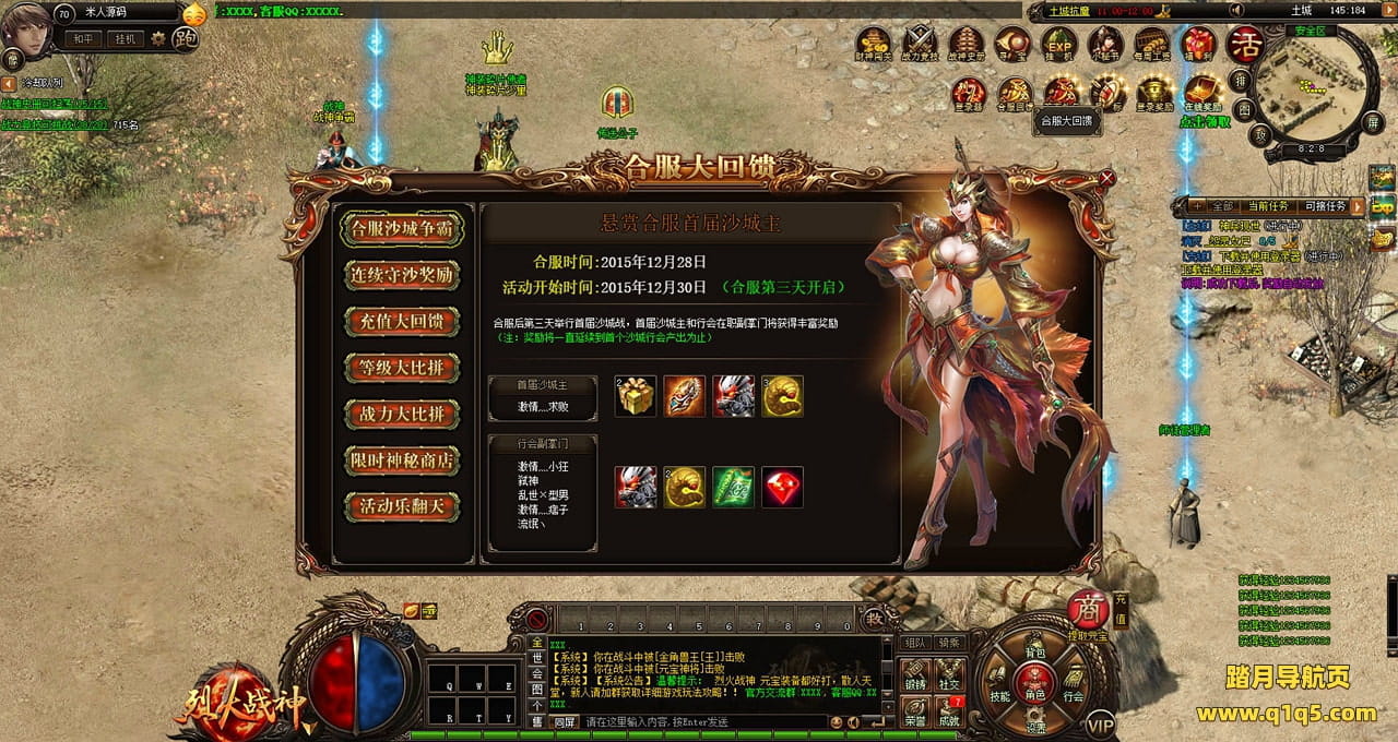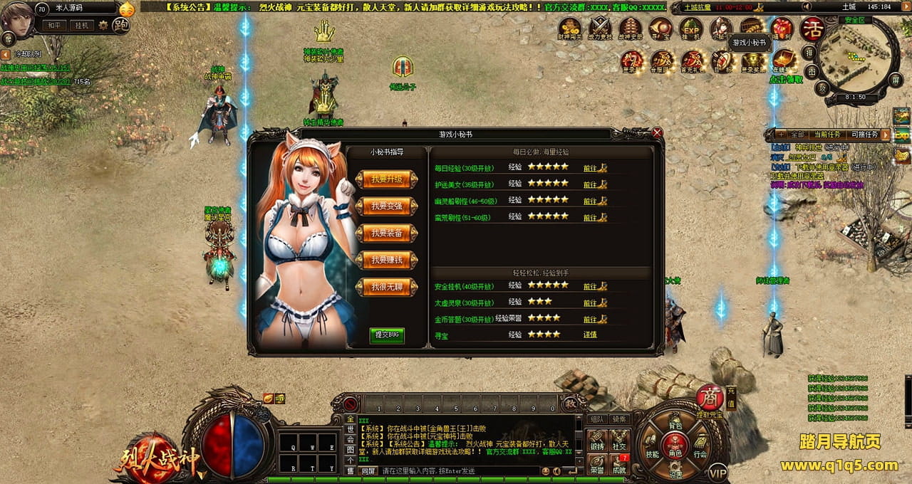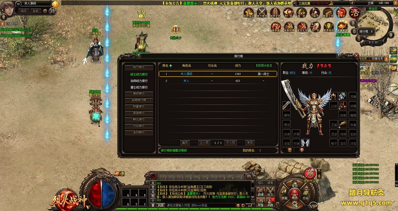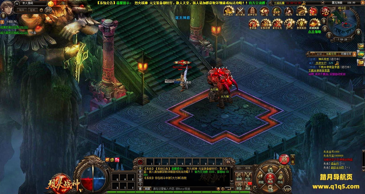 下面我们测试下游戏里的功能看看。好了,其他功能就自行测试吧。更多的游戏资源可以访问www.q1q5.com下载,我们每款游戏资源均单独制作了独立的视频架设教程,让小白也可以快速上手游戏架设,快来体验自己做GM的乐趣吧!