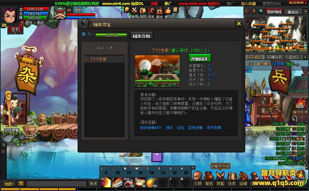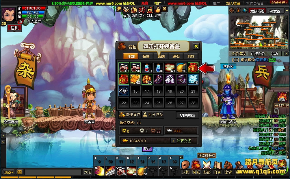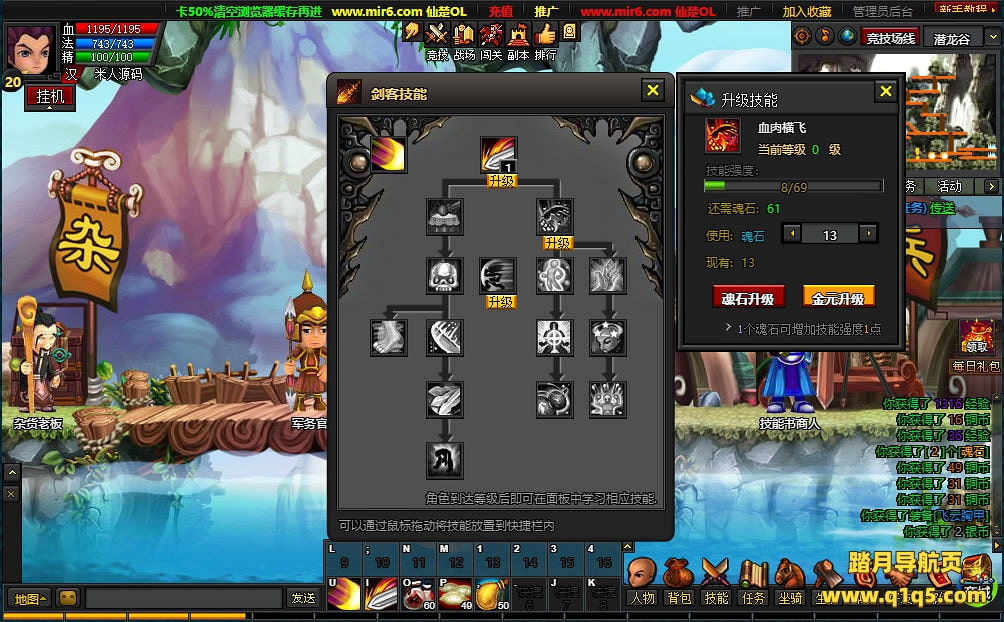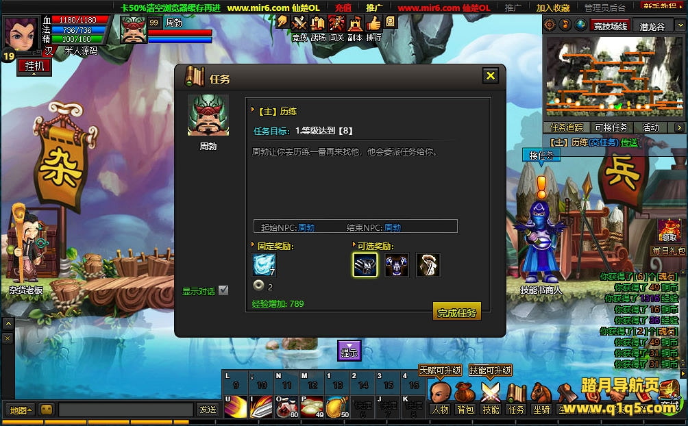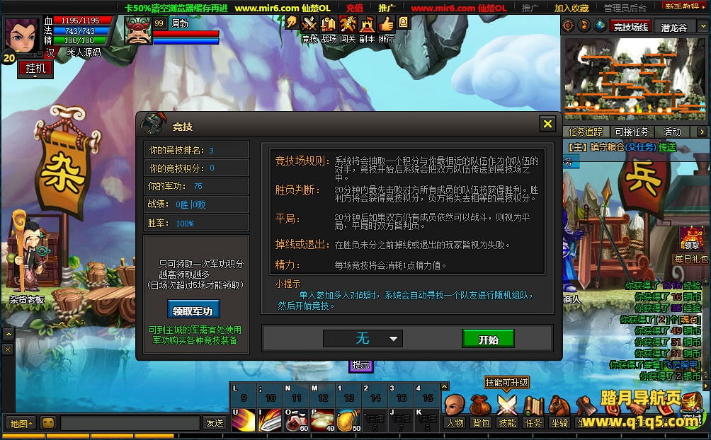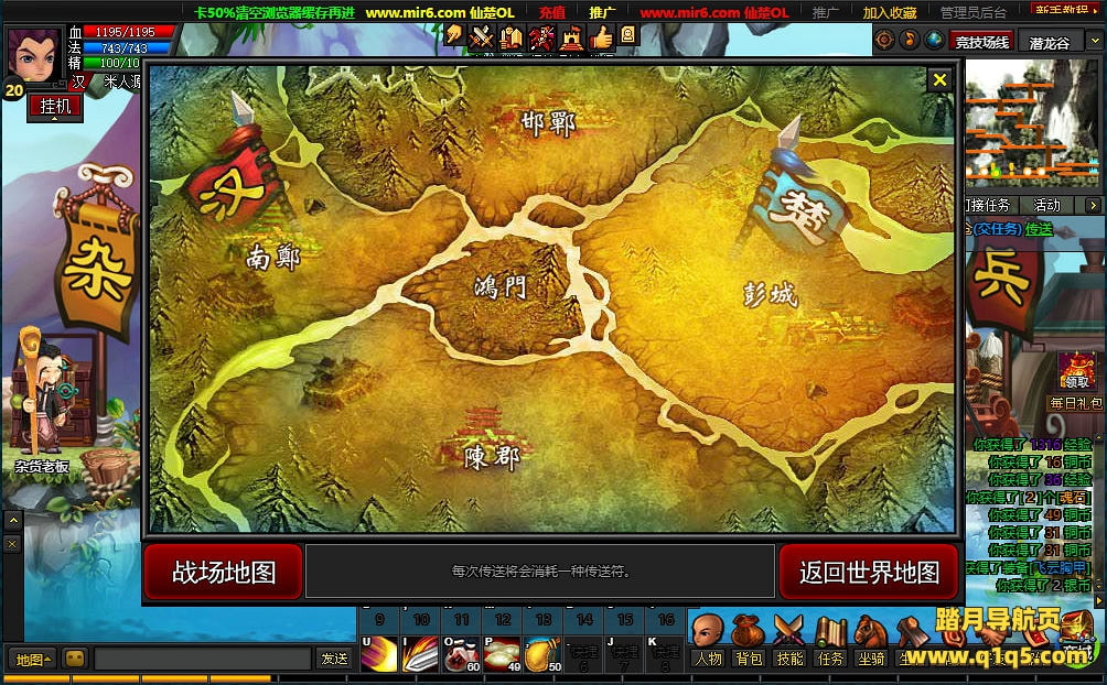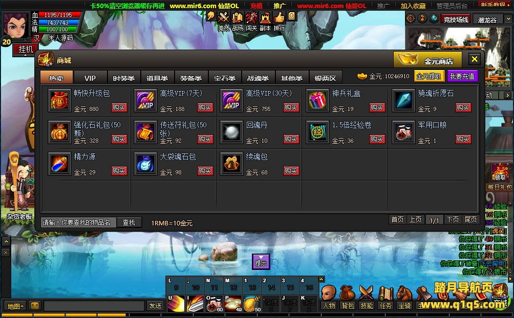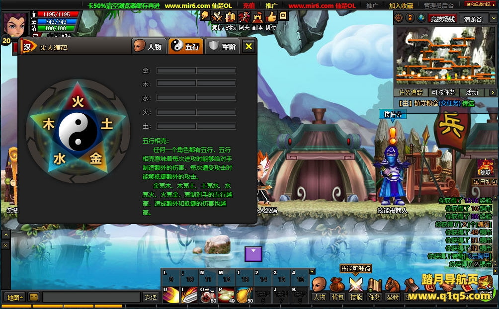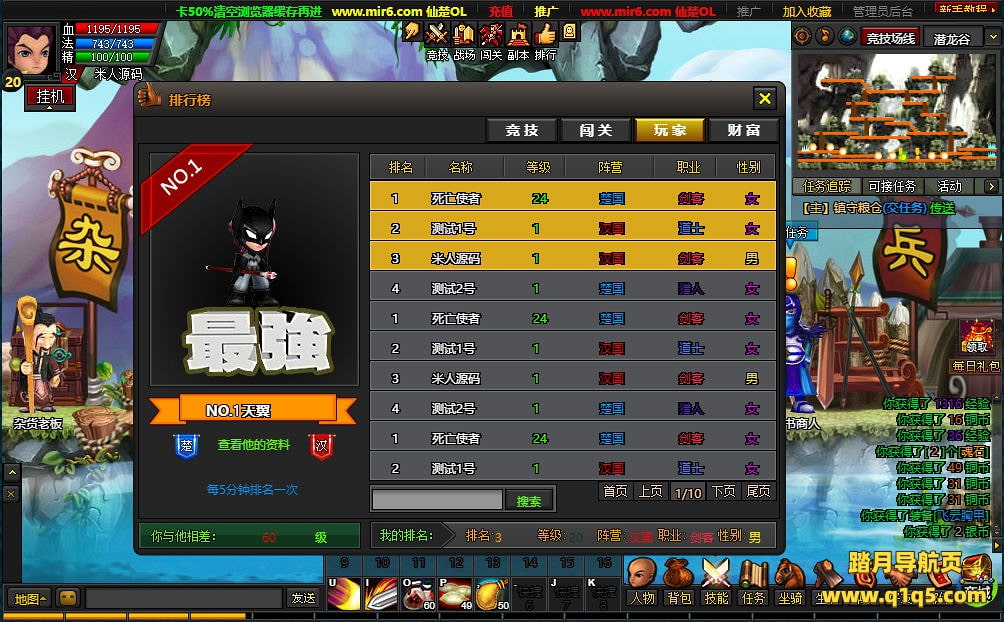 下面我们测试下游戏里的功能看看。好了。其他功能就自行测试吧。更多的游戏资源可访问www.q1q5.com下载,我们每款游戏资源均单独制作了独立的视频架设教程,让小白也可以快速上手游戏架设,快来体验自己做GM的乐趣吧!