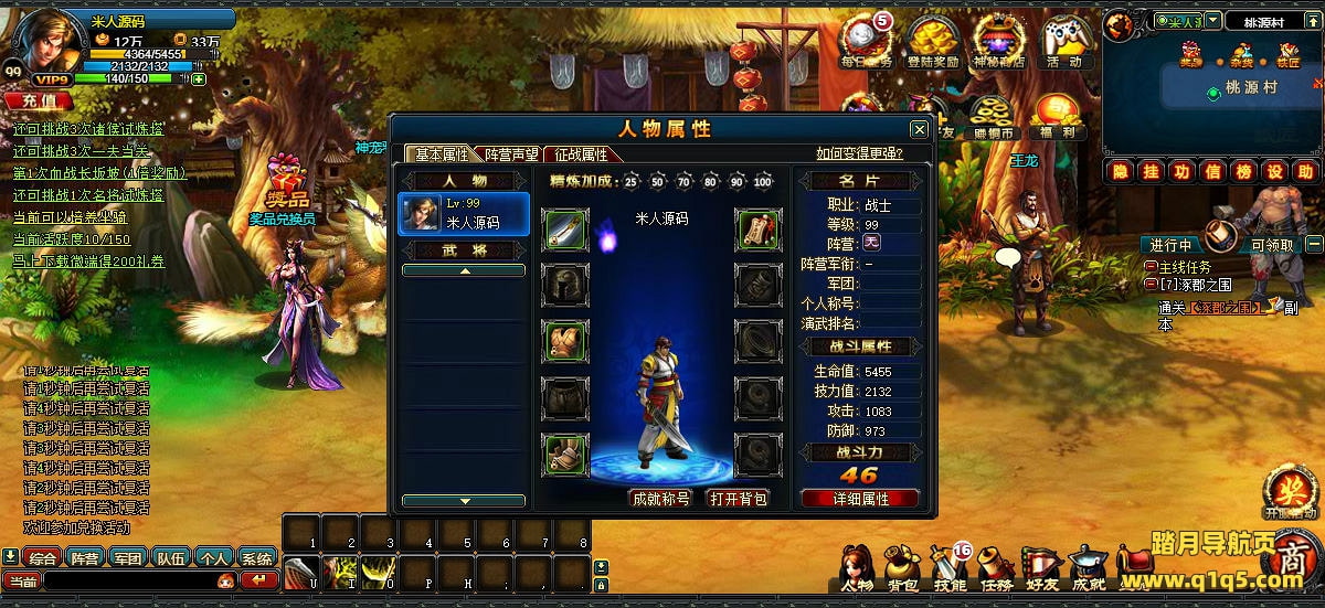 下面我们来测试下游戏里的功能。副本难过,可以直接修改角色等级等信息。我们GM工具先修改试试。好了,其他功能就自行测试吧。更多的游戏资源可以访问www.q1q5.com下载,我们每款游戏资源均单独制作了独立的视频架设教程,让小白也可以快速上手游戏架设,快来体验自己做GM的乐趣吧!