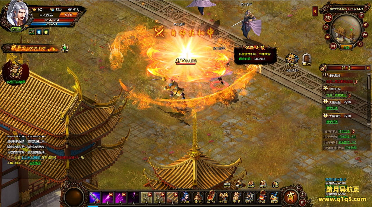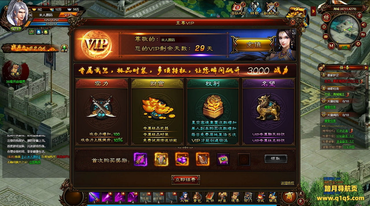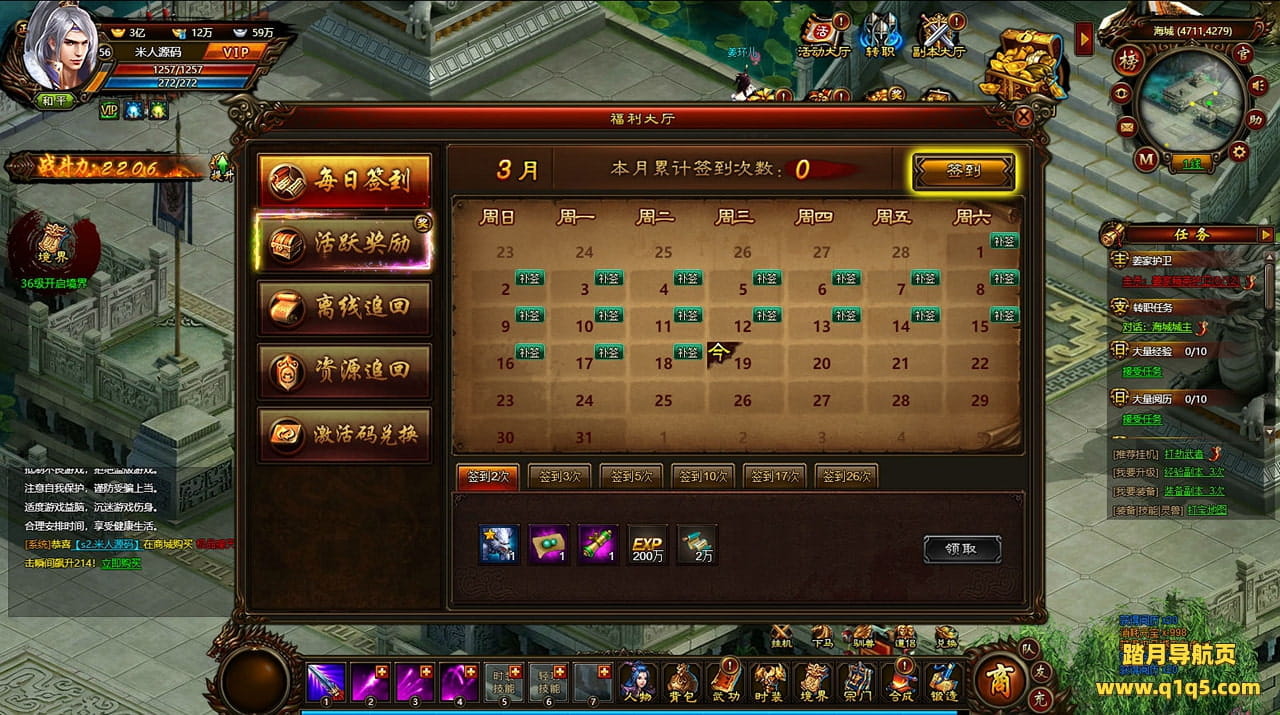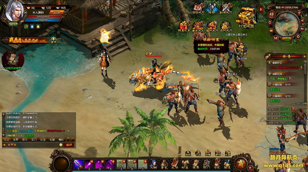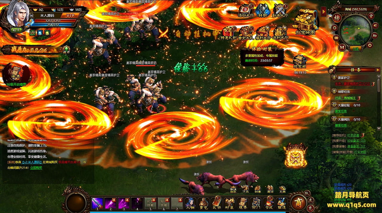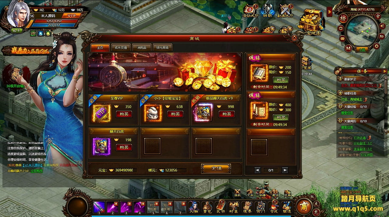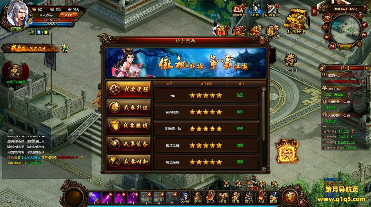 好了,下面我们来测试下游戏里的功能看看。好了。其他功能就自行测试吧。更多的游戏资源可以访问www.q1q5.com下载,我们每款游戏资源均单独制作了独立的视频架设教程,让小白也可以快速上手游戏架设,快来体验自己做GM的乐趣吧!