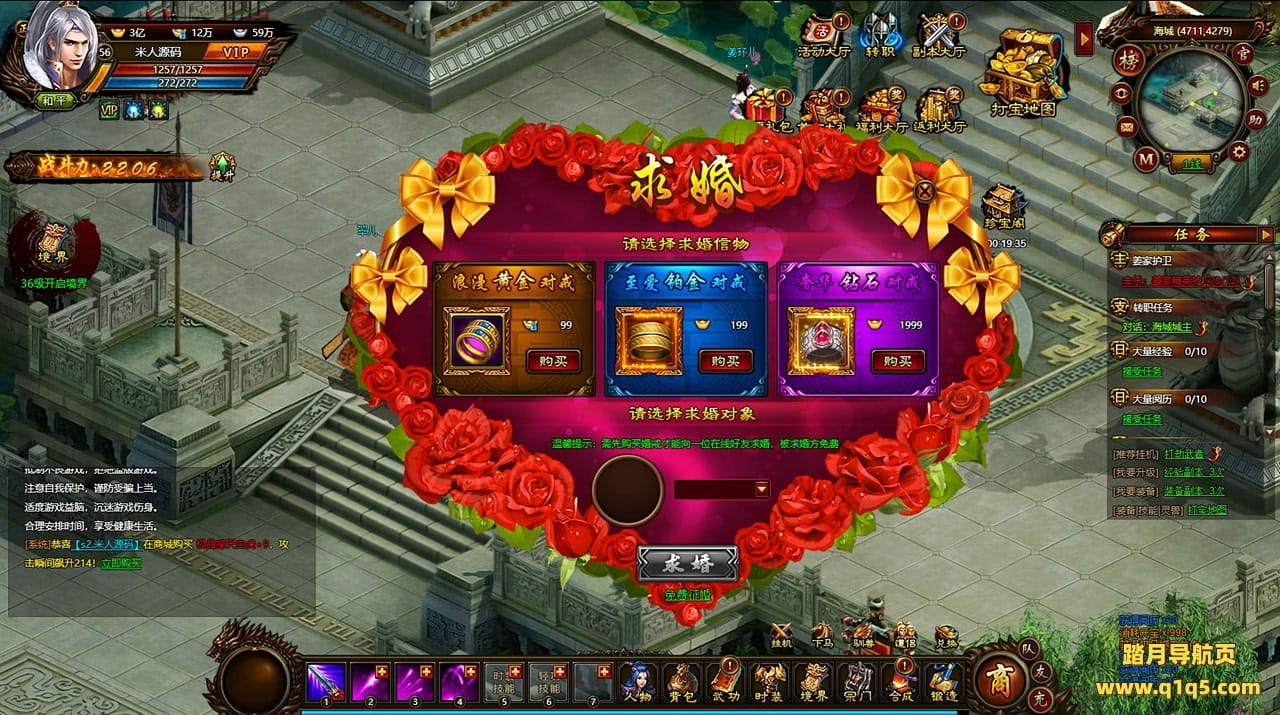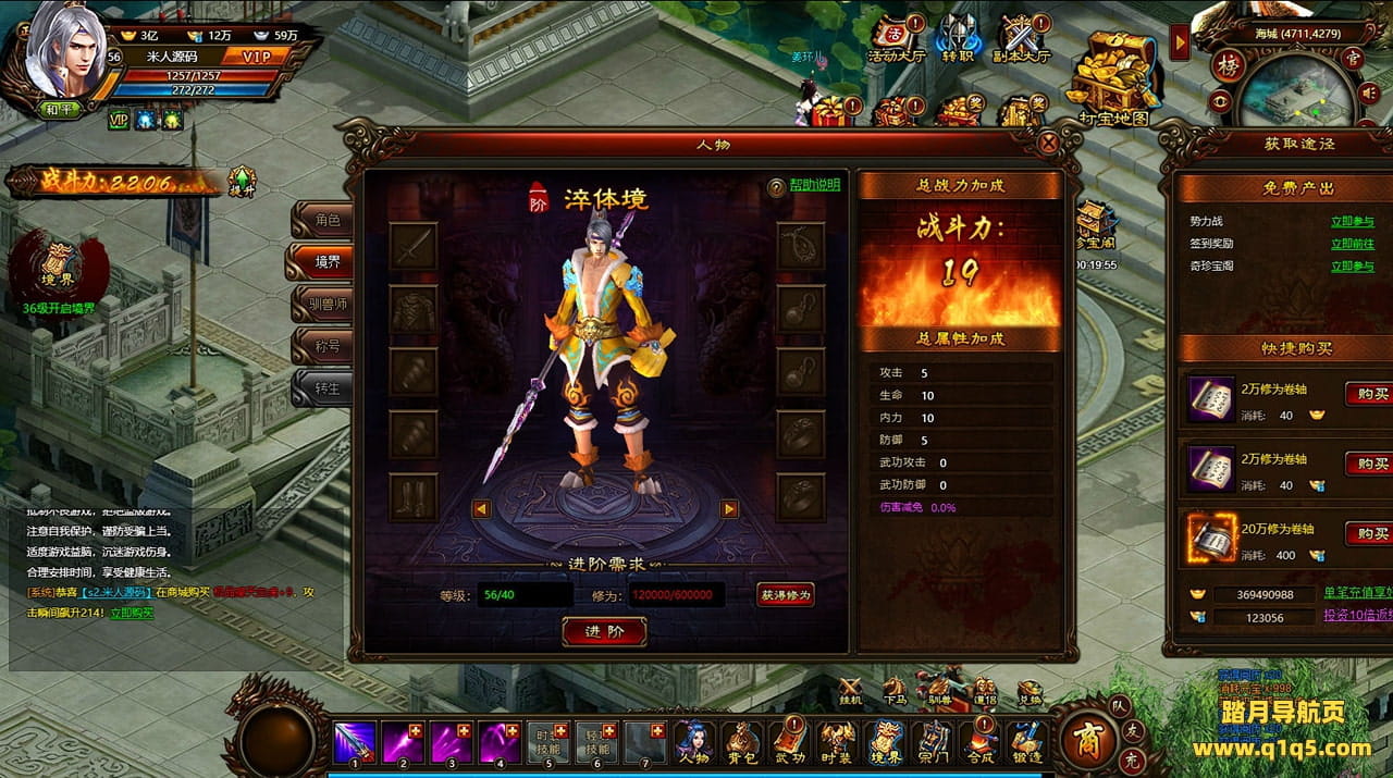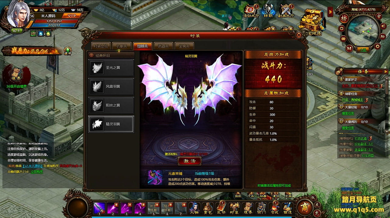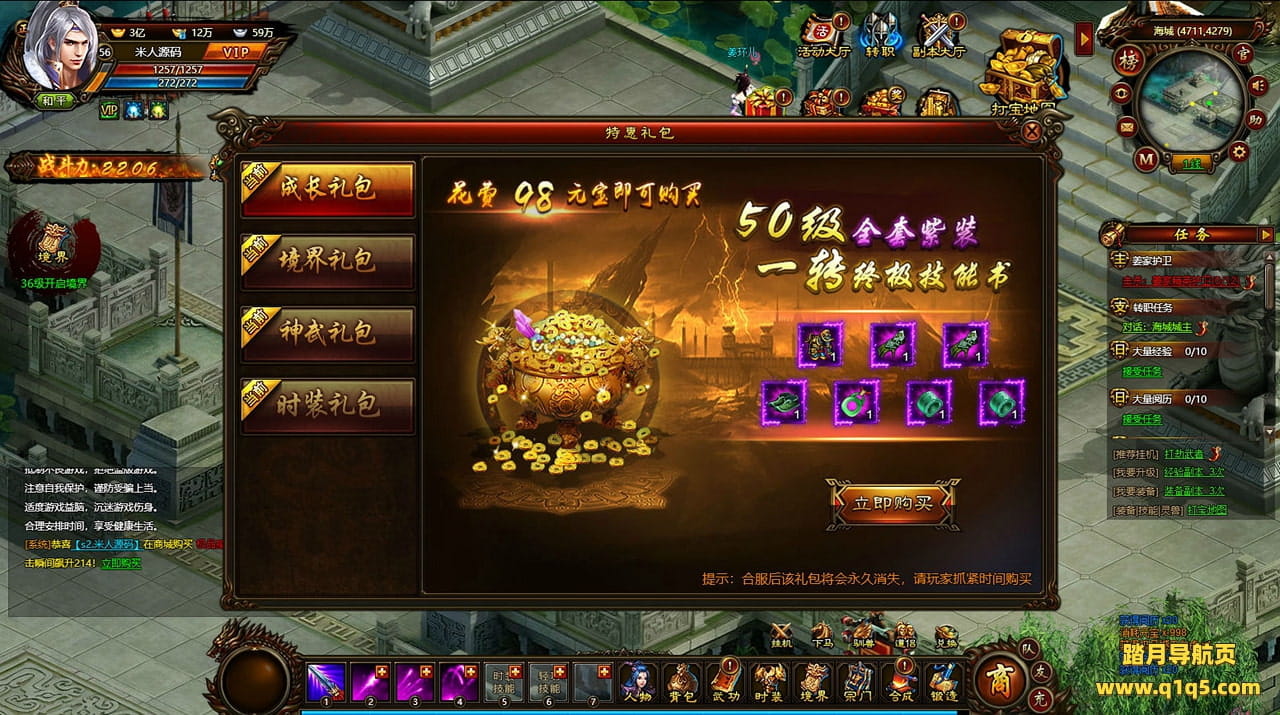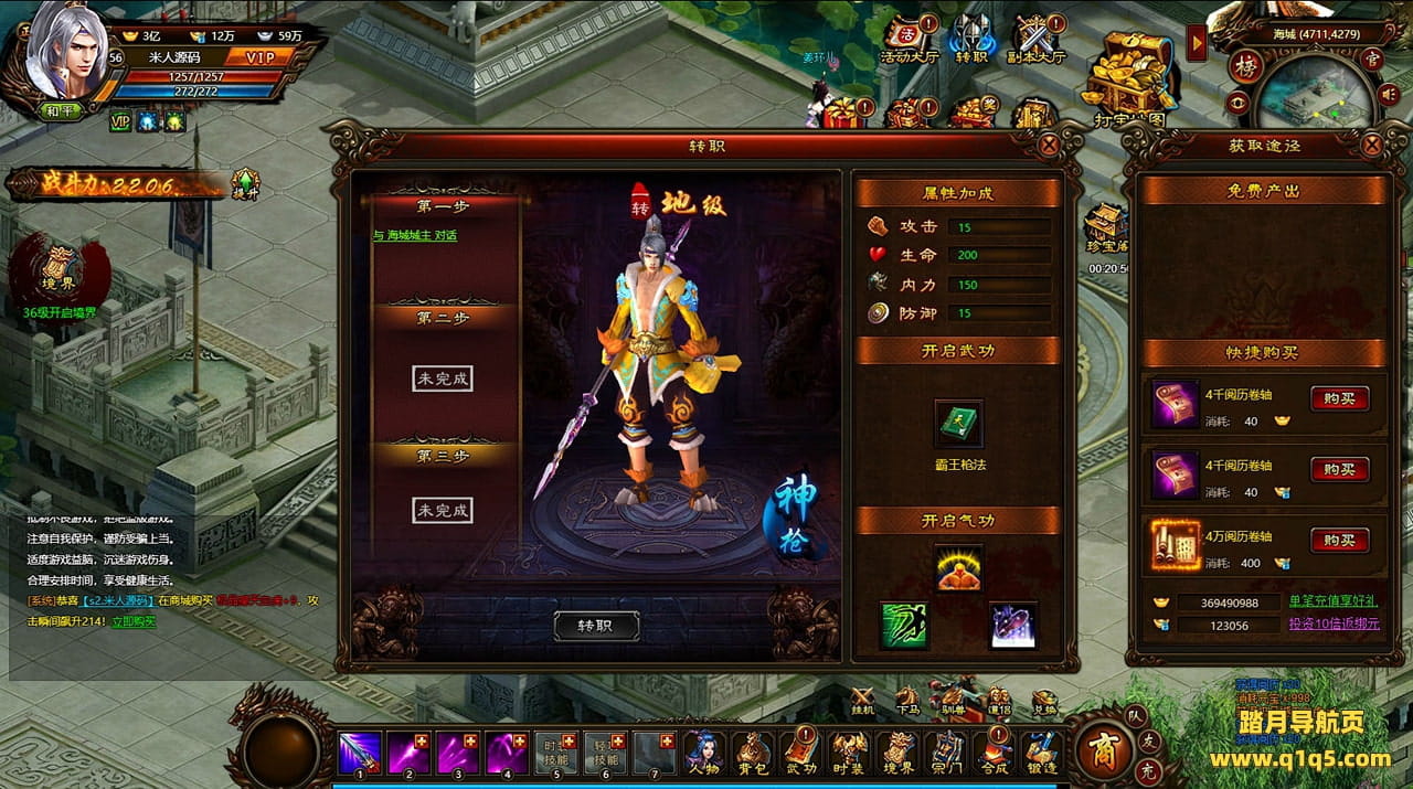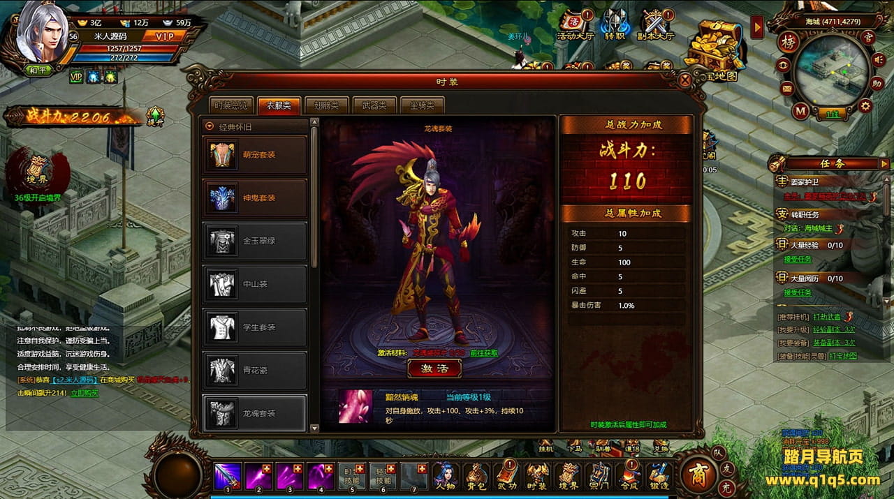 好了,下面我们来测试下游戏里的功能看看。好了。其他功能就自行测试吧。更多的游戏资源可以访问www.q1q5.com下载,我们每款游戏资源均单独制作了独立的视频架设教程,让小白也可以快速上手游戏架设,快来体验自己做GM的乐趣吧!
