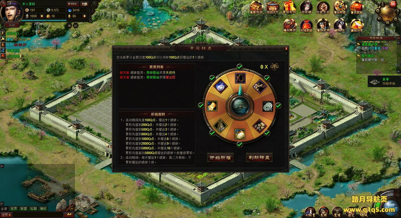 下面我们来测试下游戏里的功能吧。好了,其他功能就自行测试了吧。更多的游戏资源可以访问www.q1q5.com下载,我们每款游戏资源均单独制作了独立的视频架设教程,让小白也可以快速上手游戏架设,快来体验自己做GM的乐趣吧!