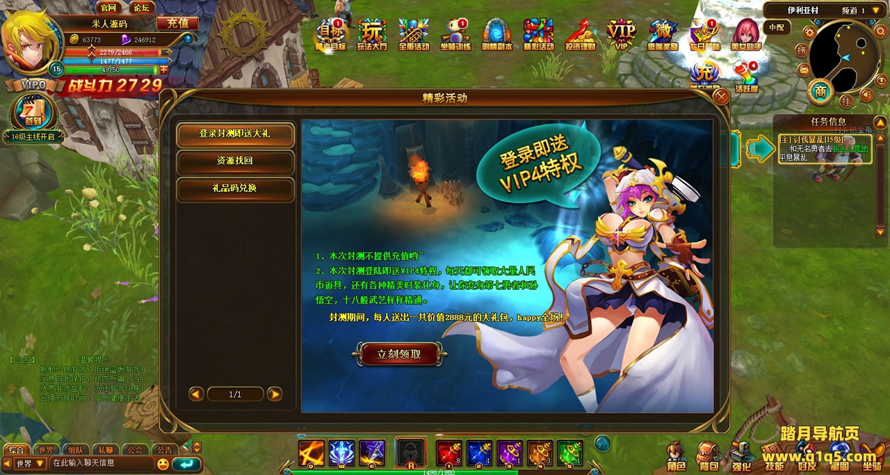 下面我们来测试下游戏里的功能看看吧。好了,其他功能就自行测试吧。更多的游戏资源可以访问www.q1q5.com下载,我们每款游戏资源均单独制作了独立的视频架设教程,让小白也可以快速上手游戏架设,快来体验自己做GM的乐趣吧!