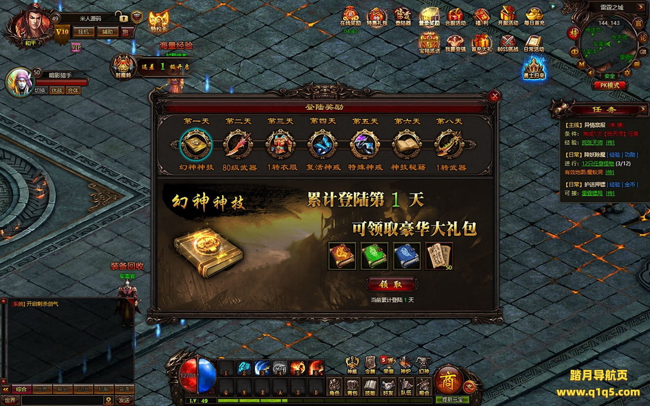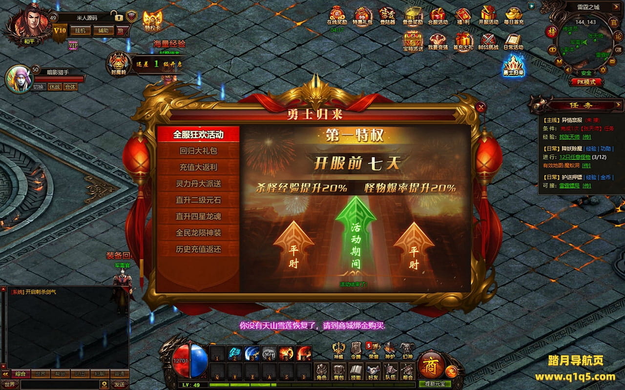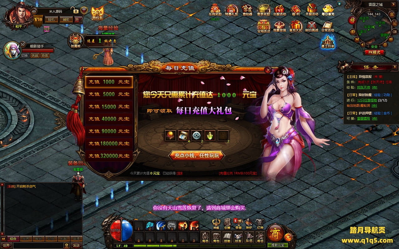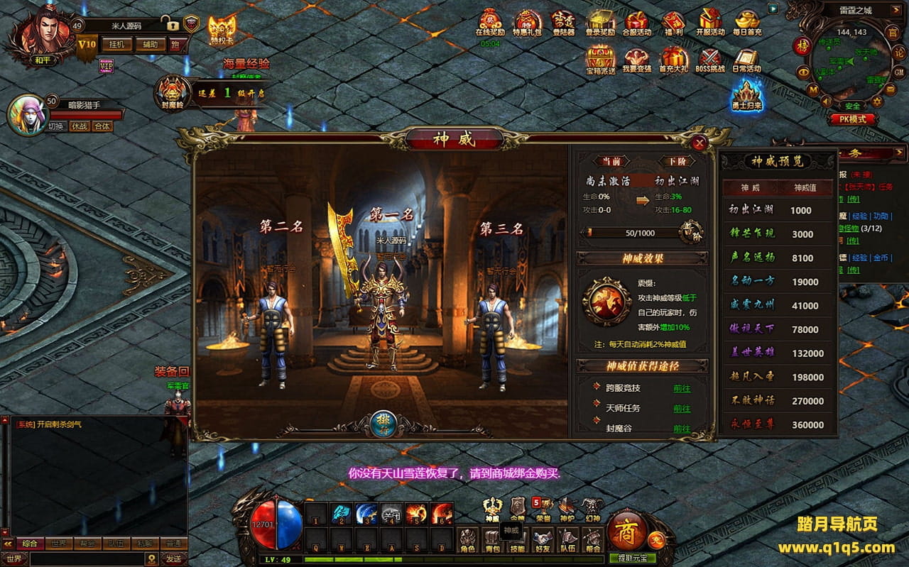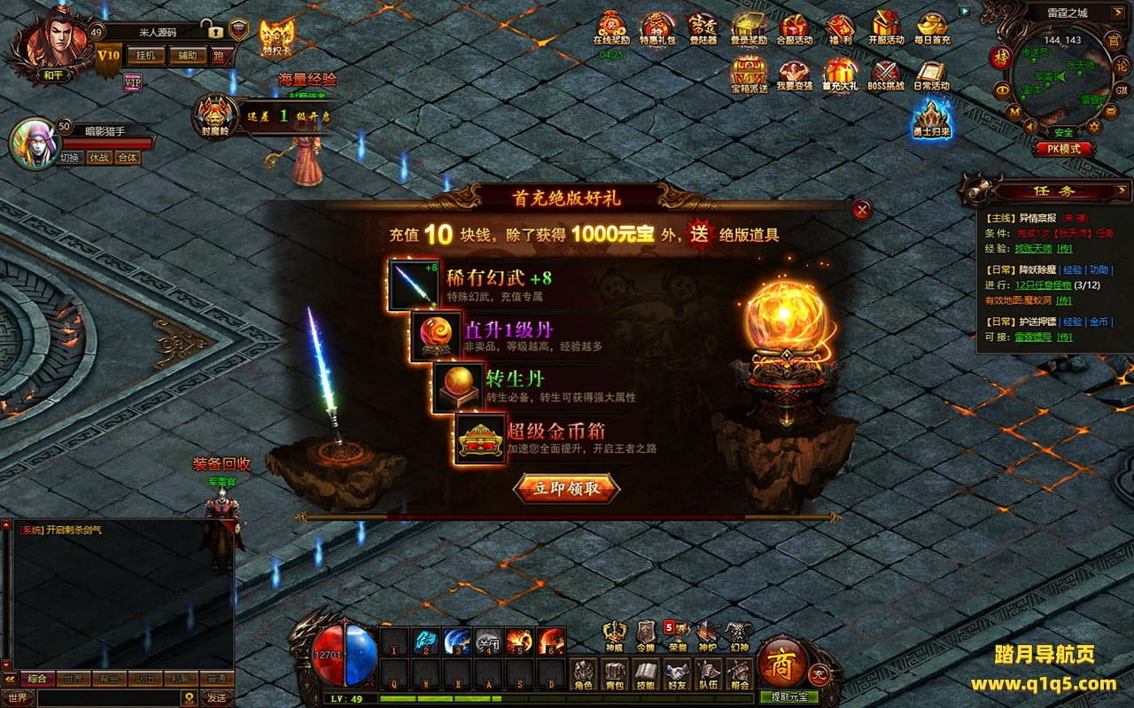 下面我们进入游戏测试下是否到账(已测试到账没问题)并且测试下游戏里的功能看看。好了,其他功能就自行测试吧。更多的游戏资源可以访问www.q1q5.com下载,我们每款游戏资源均单独制作了独立的视频架设教程,让小白也可以快速上手游戏架设,快来体验自己做GM的乐趣吧!