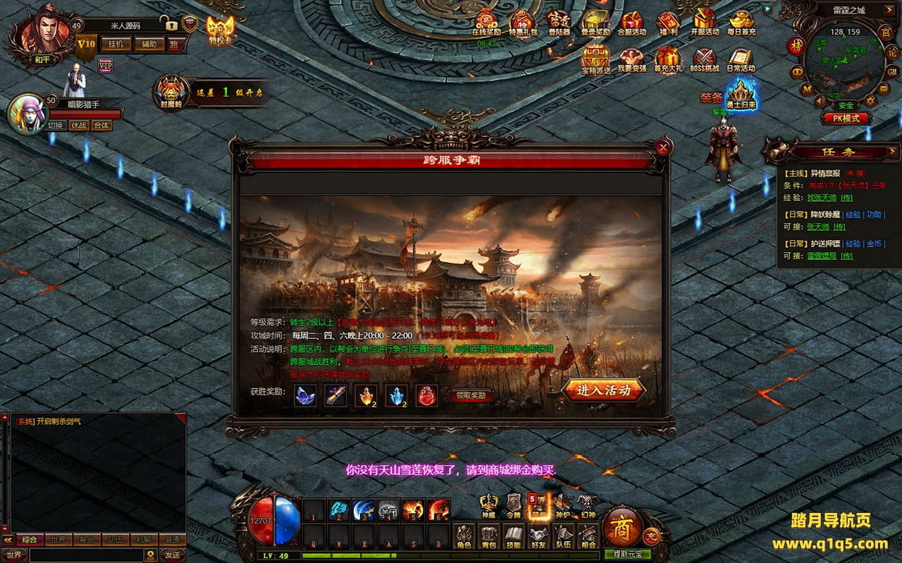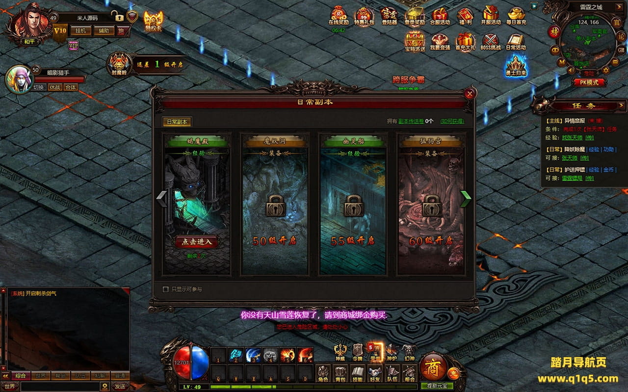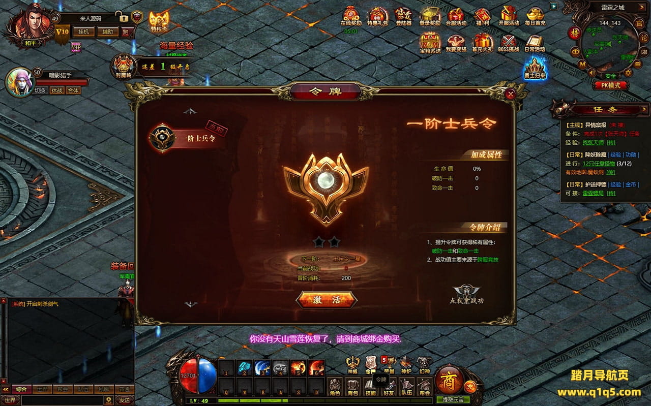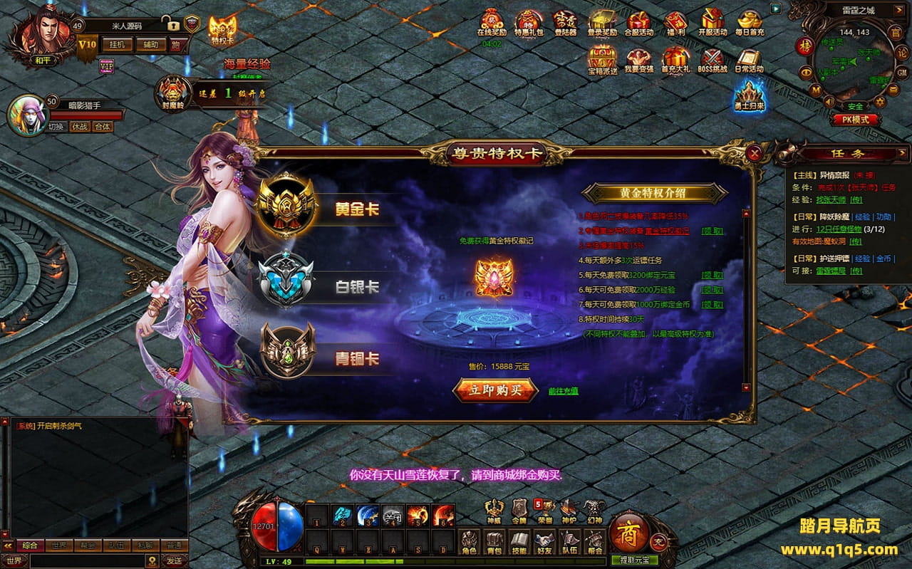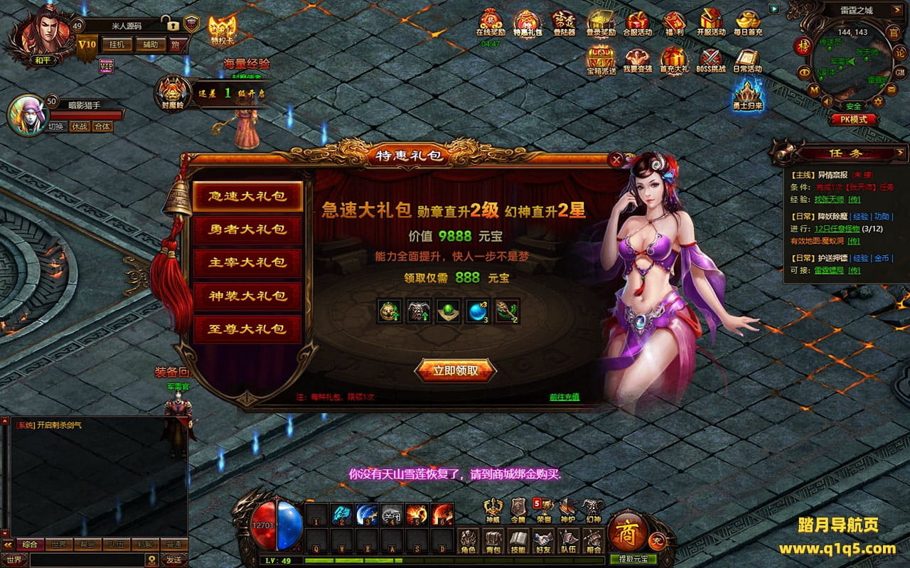 下面我们进入游戏测试下是否到账(已测试到账没问题)并且测试下游戏里的功能看看。好了,其他功能就自行测试吧。更多的游戏资源可以访问www.q1q5.com下载,我们每款游戏资源均单独制作了独立的视频架设教程,让小白也可以快速上手游戏架设,快来体验自己做GM的乐趣吧!