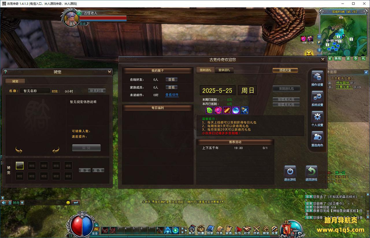 下面我们来测试下游戏里的功能看看。好了,其他功能就自行测试吧。更多的游戏资源可以访问www.q1q5.com下载,我们每款游戏资源均单独制作了独立的视频架设教程,让小白也可以快速上手游戏架设,快来体验自己做GM的乐趣吧!
