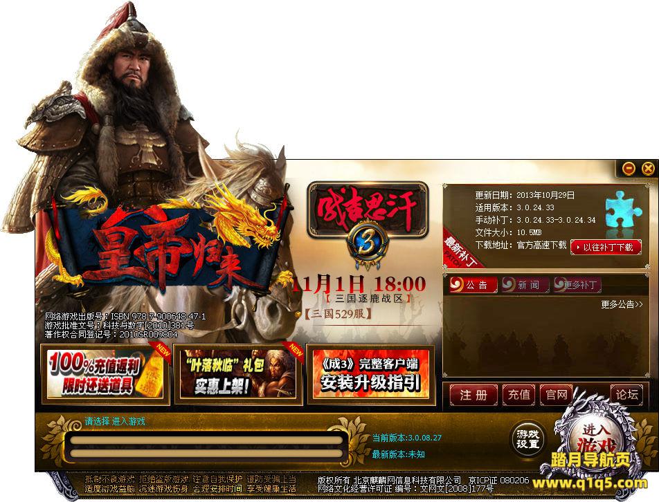 首先进入我们官网:www.q1q5.com 搜索《成吉思汗III皇帝归来完整版》下载好服务端,我这里已事先下载好了
