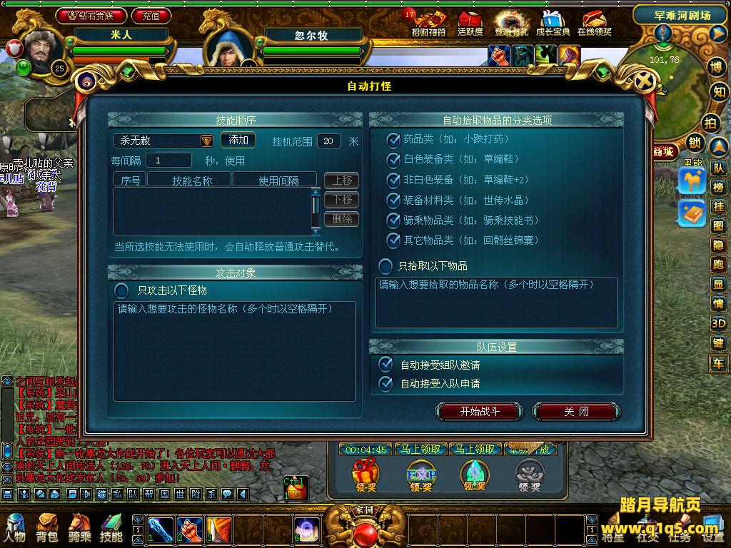 下面我们来测试下游戏里的功能看看。好了,其他功能就自行测试吧。更多的游戏资源可以访问www.q1q5.com下载,我们每款游戏资源均单独制作了独立的视频架设教程,让小白也可以快速上手游戏架设,快来体验自己做GM的乐趣吧!