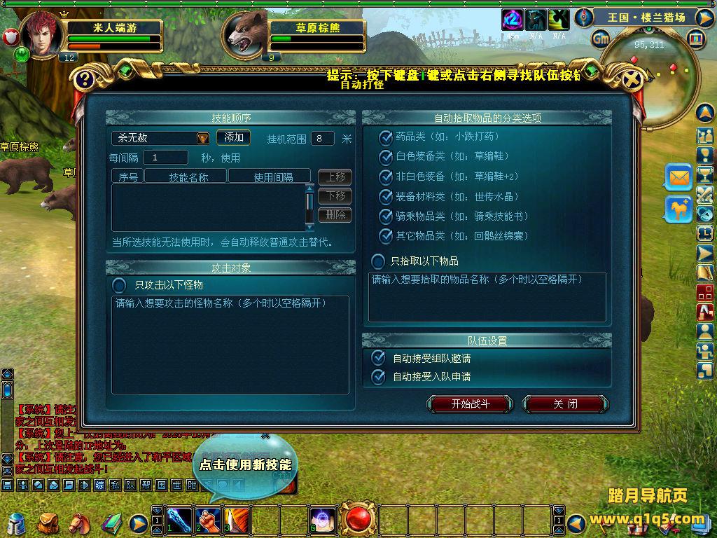 下面我们进入游戏测试下游戏里的功能看看。好了,其他功能就自行测试吧。更多的游戏资源可以访问www.q1q5.com下载,我们每款游戏资源均单独制作了独立的视频架设教程,让小白也可以快速上手游戏架设,快来体验自己做GM的乐趣吧!