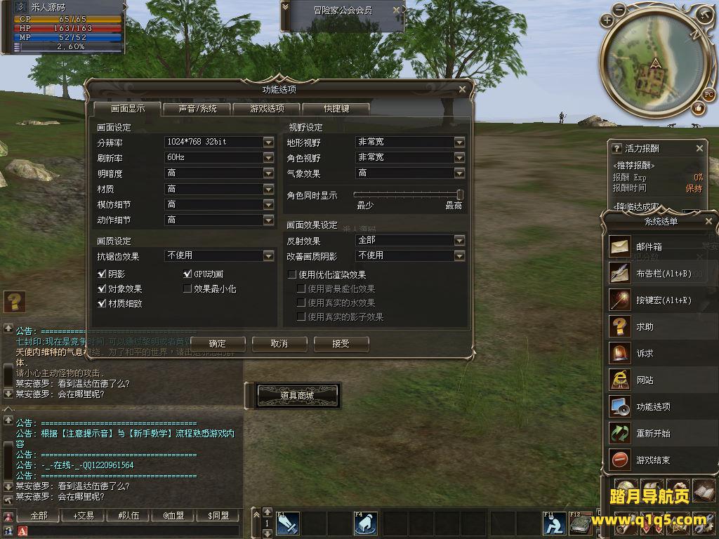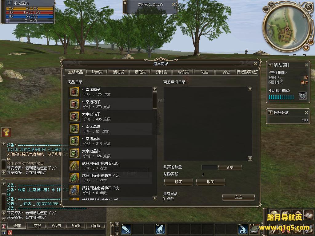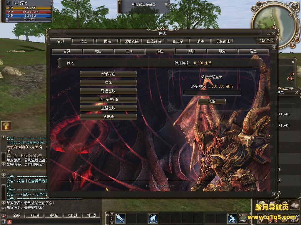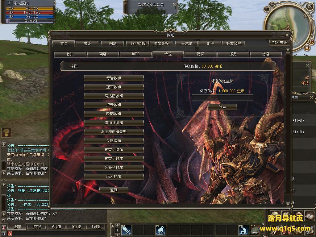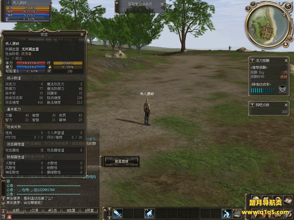 可以了。下面我们测试下游戏里的功能看看。好了。其他功能就自行测试吧。更多的游戏资源可以访问www.q1q5.com下载,我们每款游戏资源均单独制作了独立的视频架设教程,让小白也可以快速上手游戏架设,快来体验自己做GM的乐趣吧!