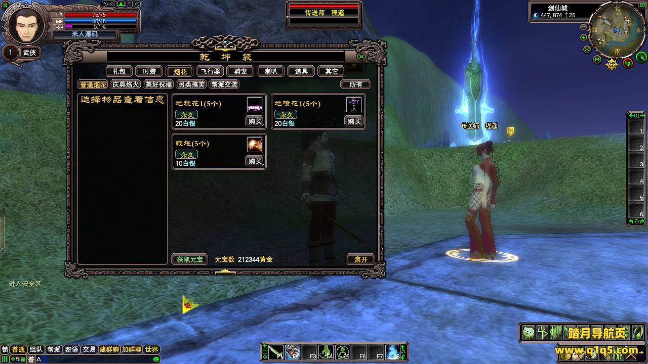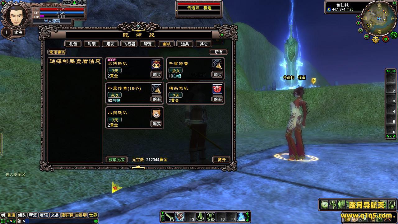 下面我们进入游戏测试看看游戏里的功能吧。好了,其他功能自行测试吧。更多的游戏资源可以访问www.q1q5.com下载,我们每款游戏资源均单独制作了独立的视频教程,让小白也可以快速上手游戏架设,快来体验自己做GM的乐趣吧!