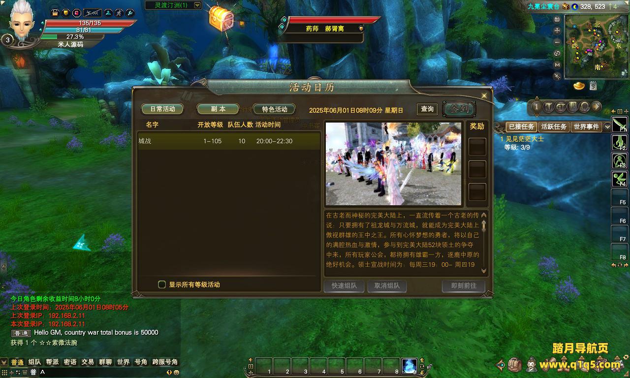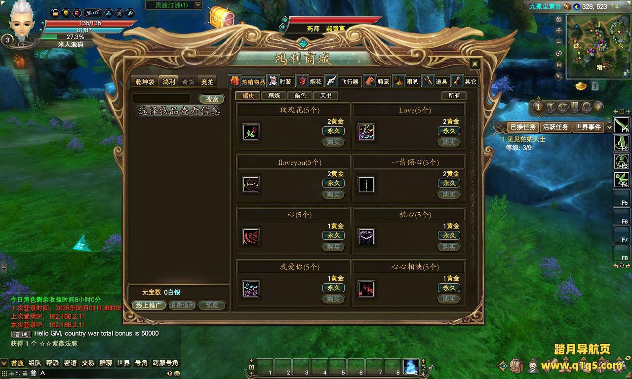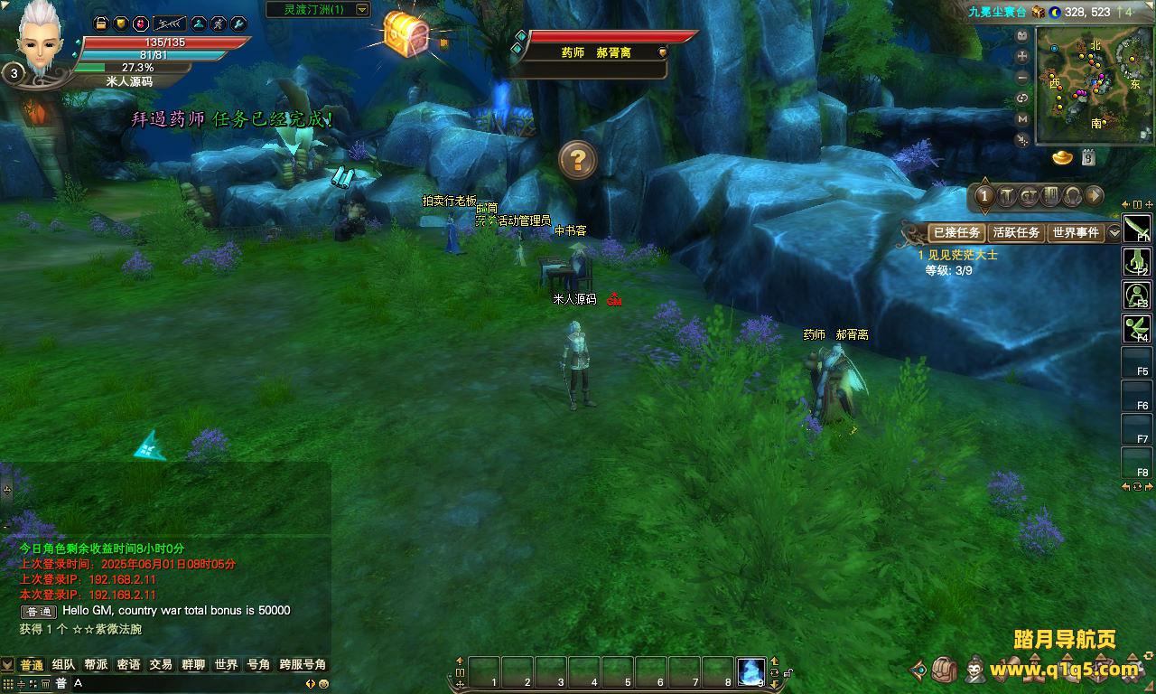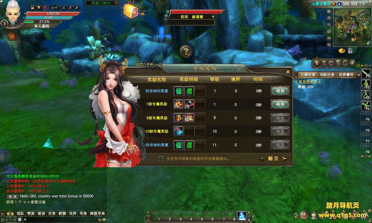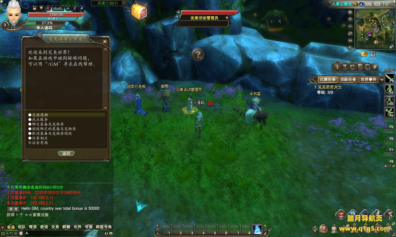 下面我们来测试下游戏里的功能看看。好了,其他功能就自行测试吧。更多的游戏资源可以访问www.q1q5.com下载,我们每款游戏资源均单独制作了独立的视频架设教程。让小白也可以快速上手游戏架设,快来体验自己做GM的乐趣吧!