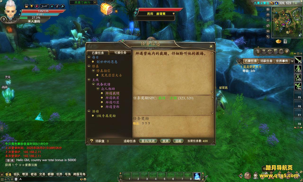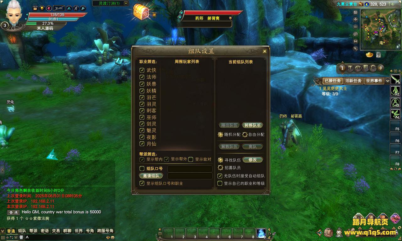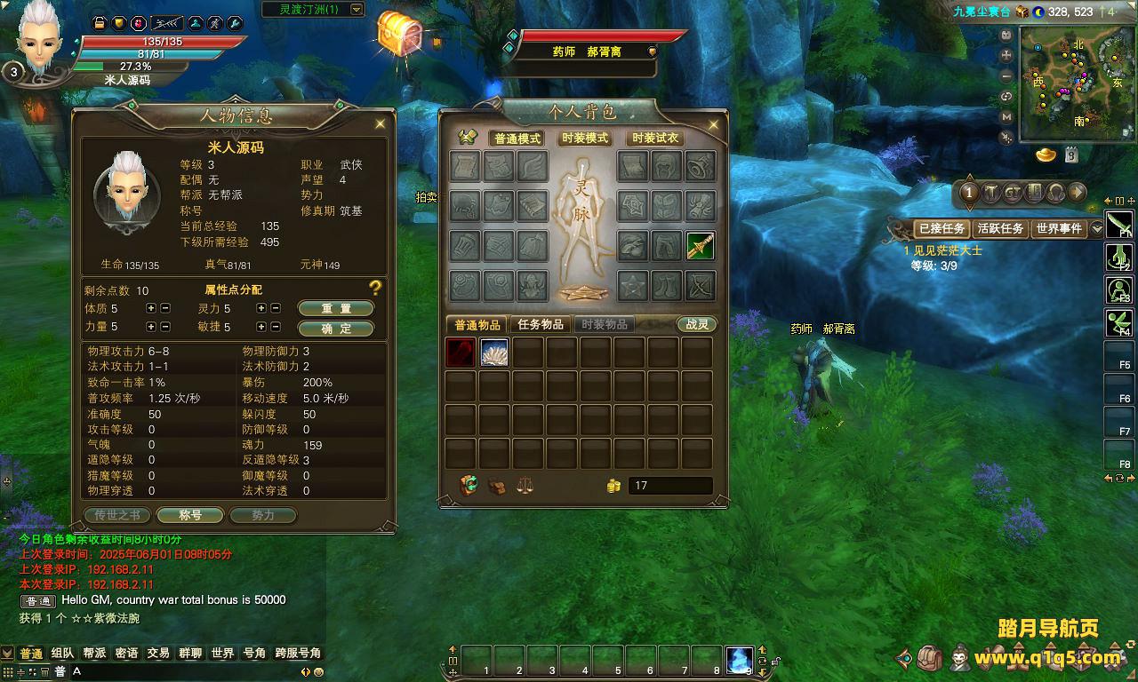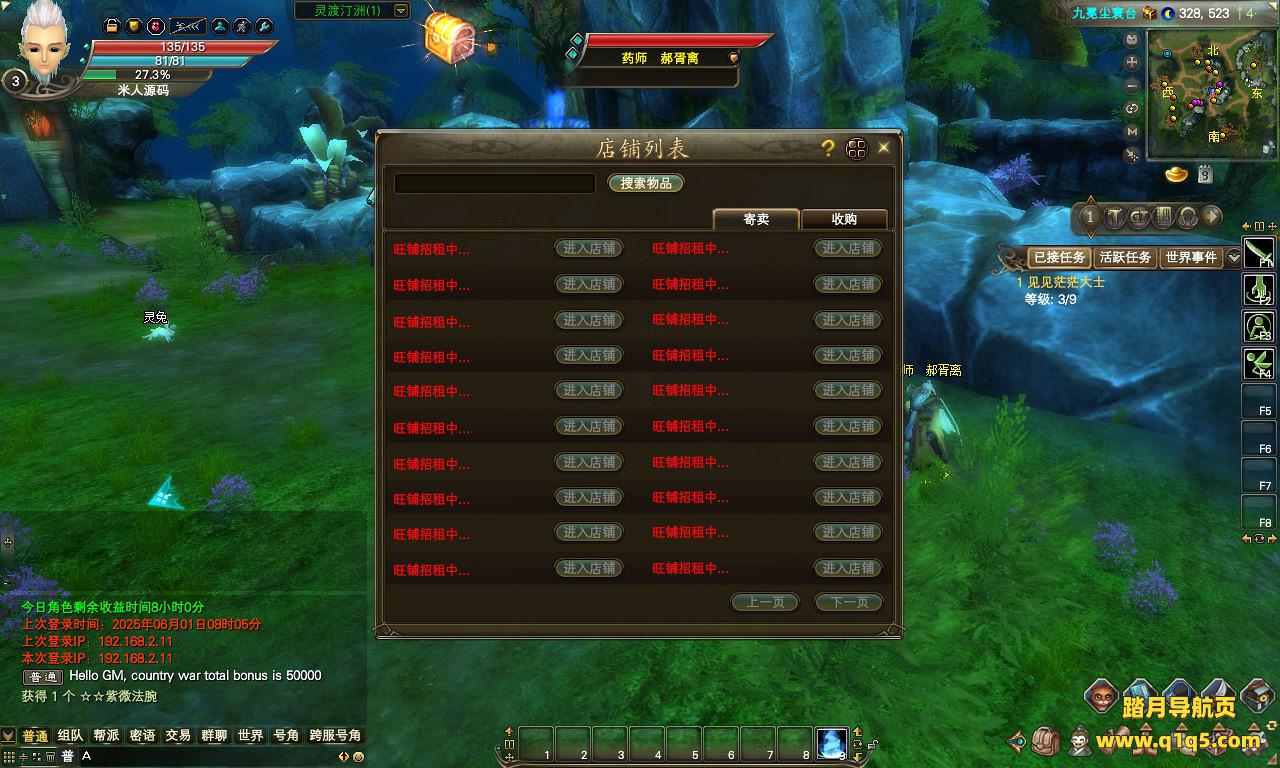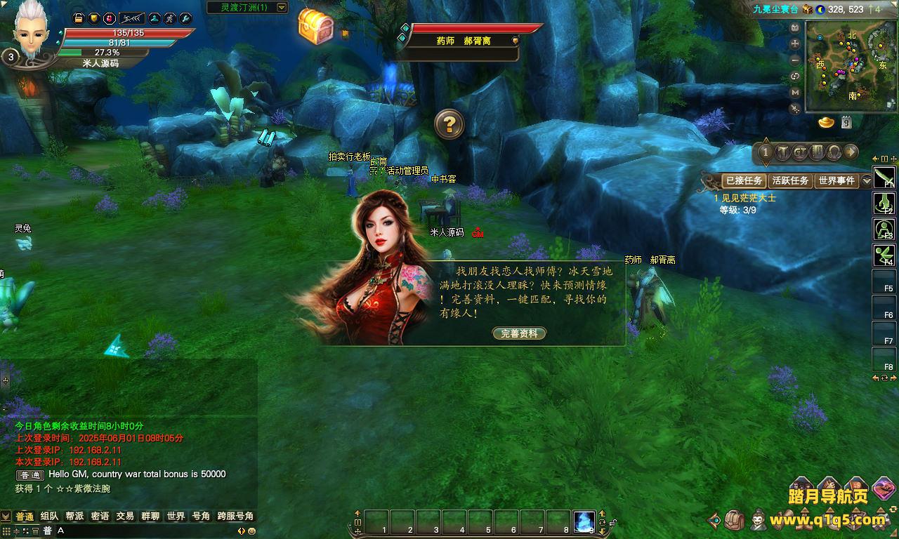下面我们来测试下游戏里的功能看看。好了,其他功能就自行测试吧。更多的游戏资源可以访问www.q1q5.com下载,我们每款游戏资源均单独制作了独立的视频架设教程。让小白也可以快速上手游戏架设,快来体验自己做GM的乐趣吧!