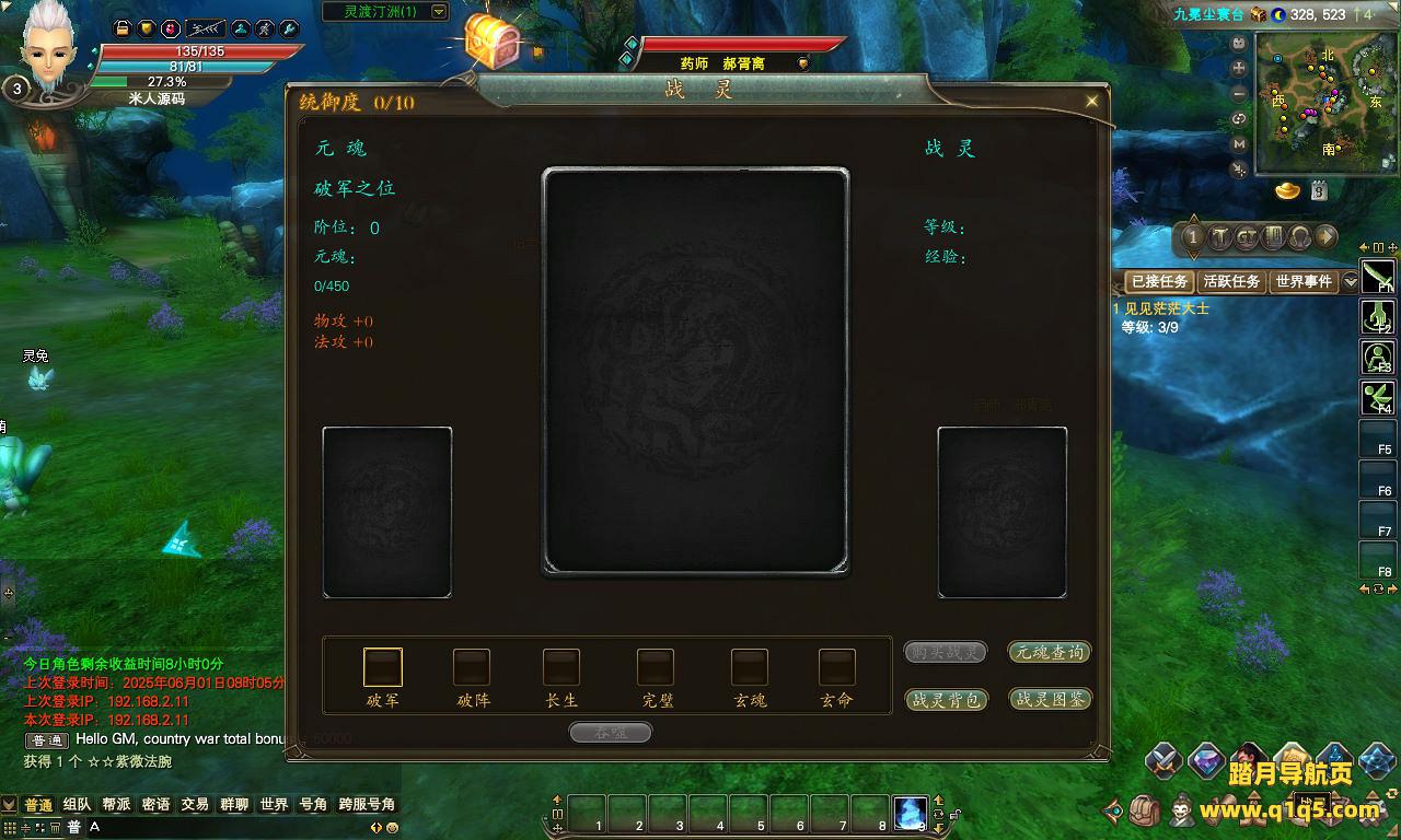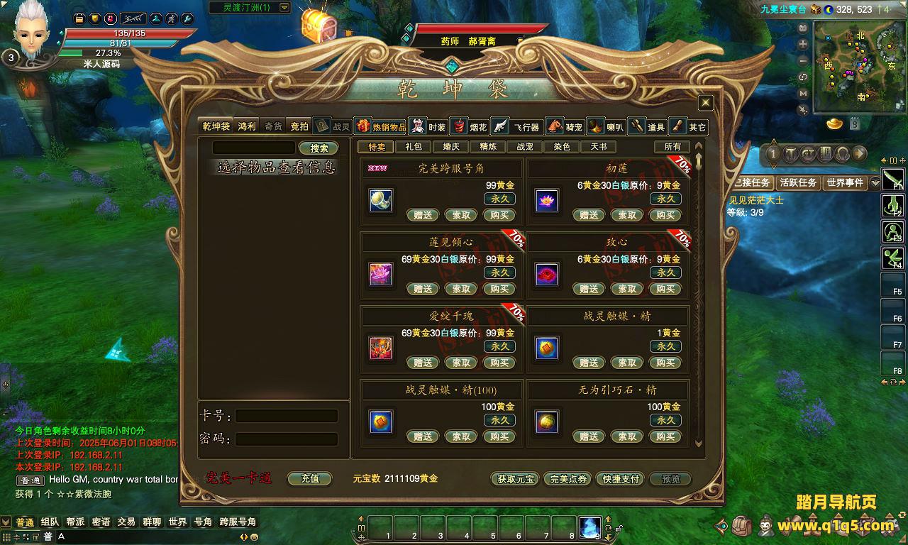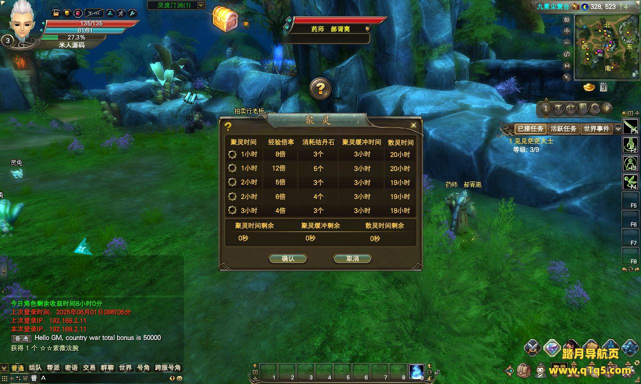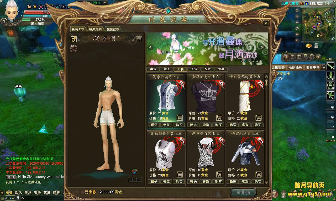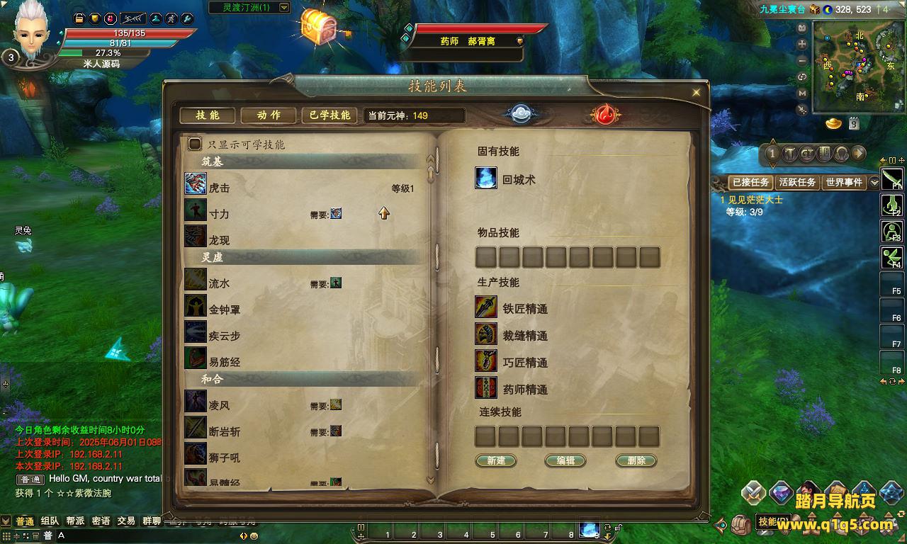 下面我们来测试下游戏里的功能看看。好了,其他功能就自行测试吧。更多的游戏资源可以访问www.q1q5.com下载,我们每款游戏资源均单独制作了独立的视频架设教程。让小白也可以快速上手游戏架设,快来体验自己做GM的乐趣吧!