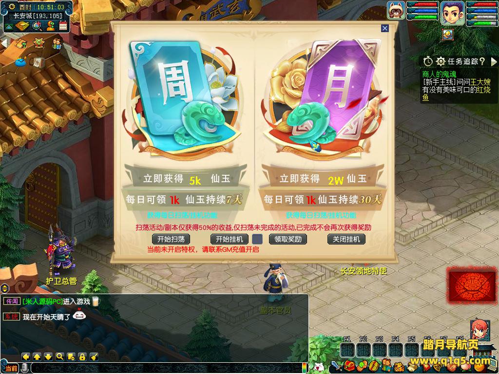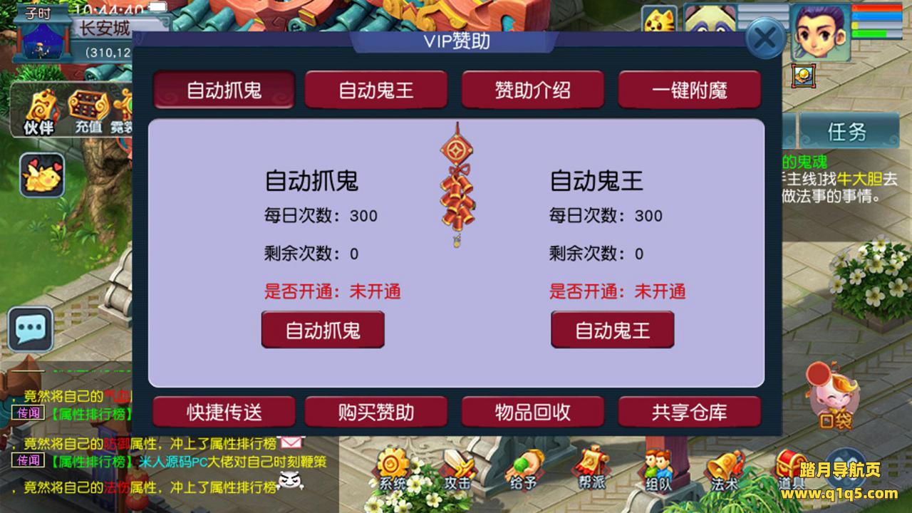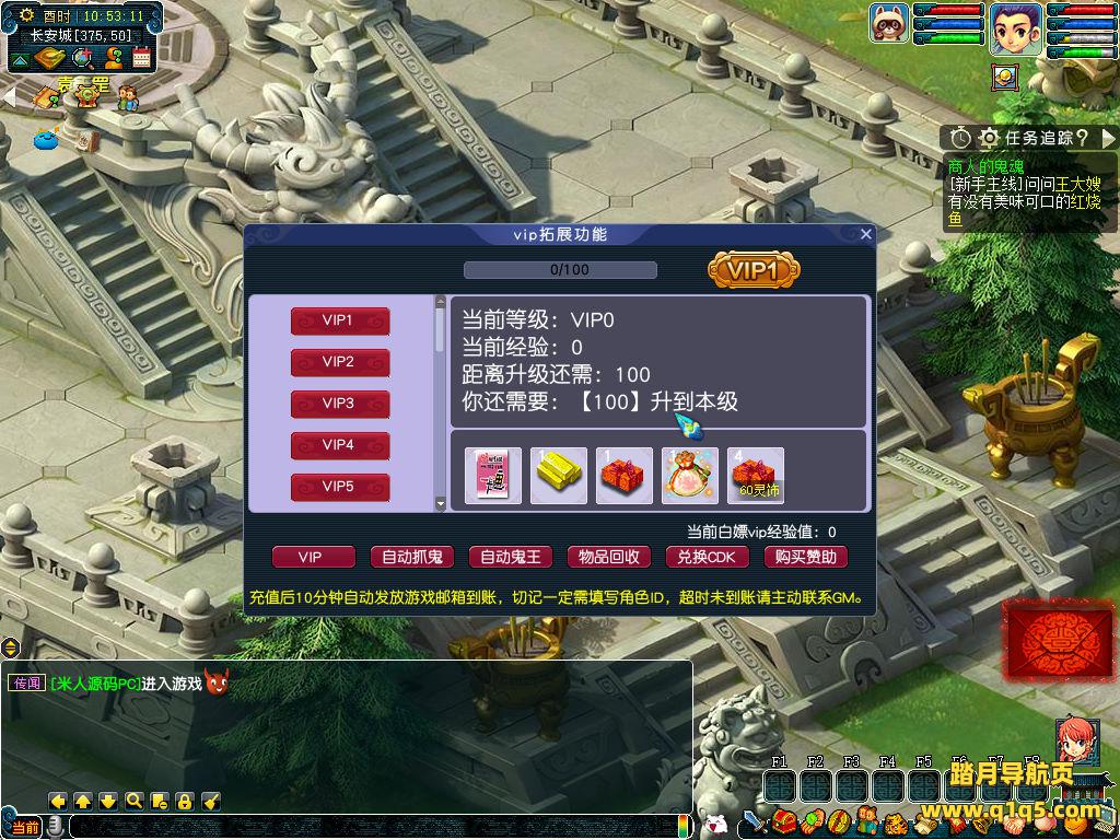 好了,下面我们来测试看看游戏里的功能了。好了,其他功能就自行研究吧。更多的游戏资源可访问www.q1q5.com下载,我们每款游戏资源均单独制作了独立的视频架设教程,让小白也可以快速上手游戏架设,快来体验做GM的乐趣吧!