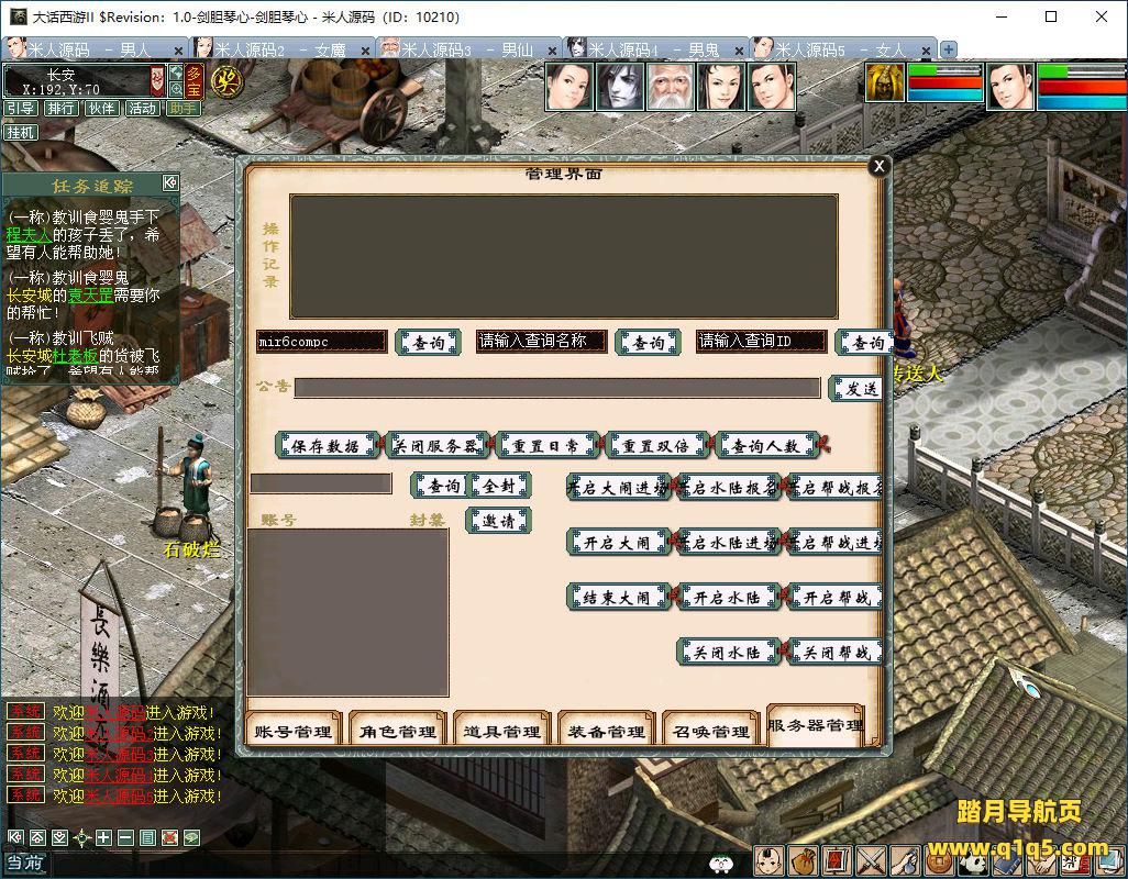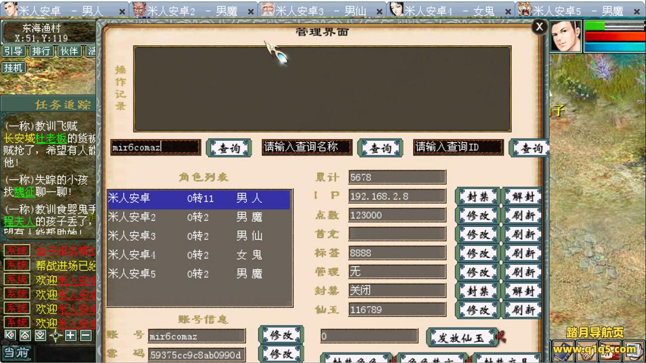 下面我们分别测试下PC客户端和安卓客户端里的游戏功能看看。好了,其他功能就自行测试吧。更多的游戏资源可以访问www.q1q5.com下载,我们每款游戏资源均单独制作了独立的视频架设教程,让小白也可以快速上手游戏架设,快来体验自己做GM的乐趣吧!