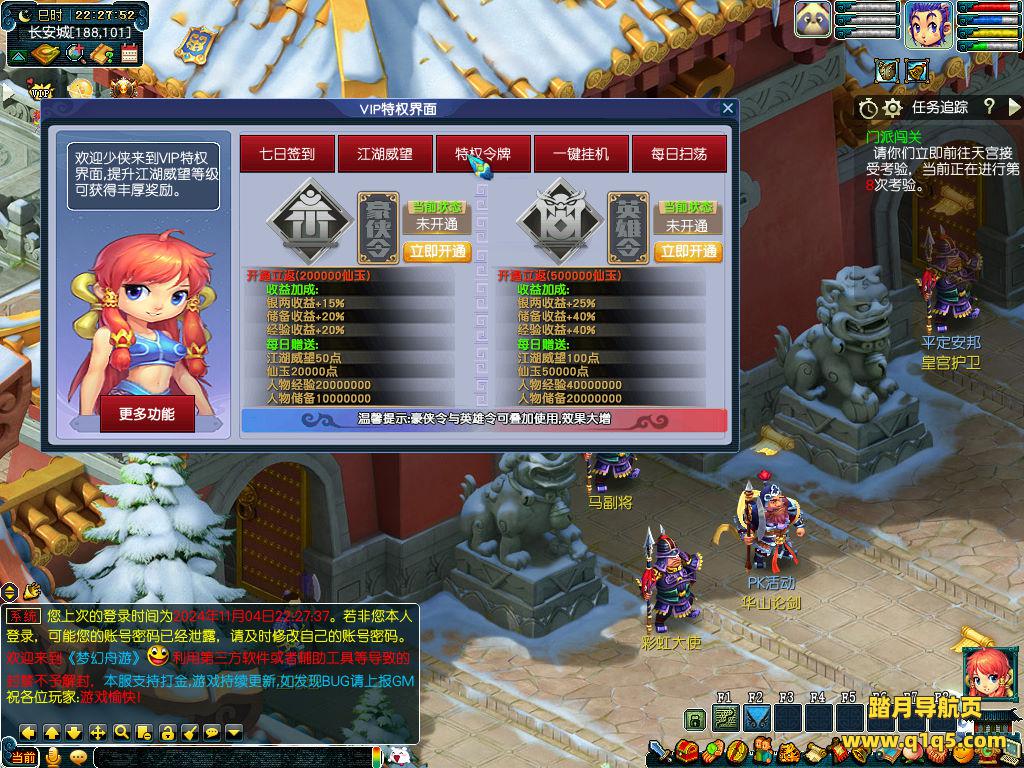 下面我们对游戏功能进行测试看看。好了,其他功能自行测试吧。更多的游戏资源请访问www.q1q5.com下载,我们每款游戏资源均单独制作的有独立的视频架设教程,让小白也可以快速上手游戏架设,快来体验做GM的乐趣吧!