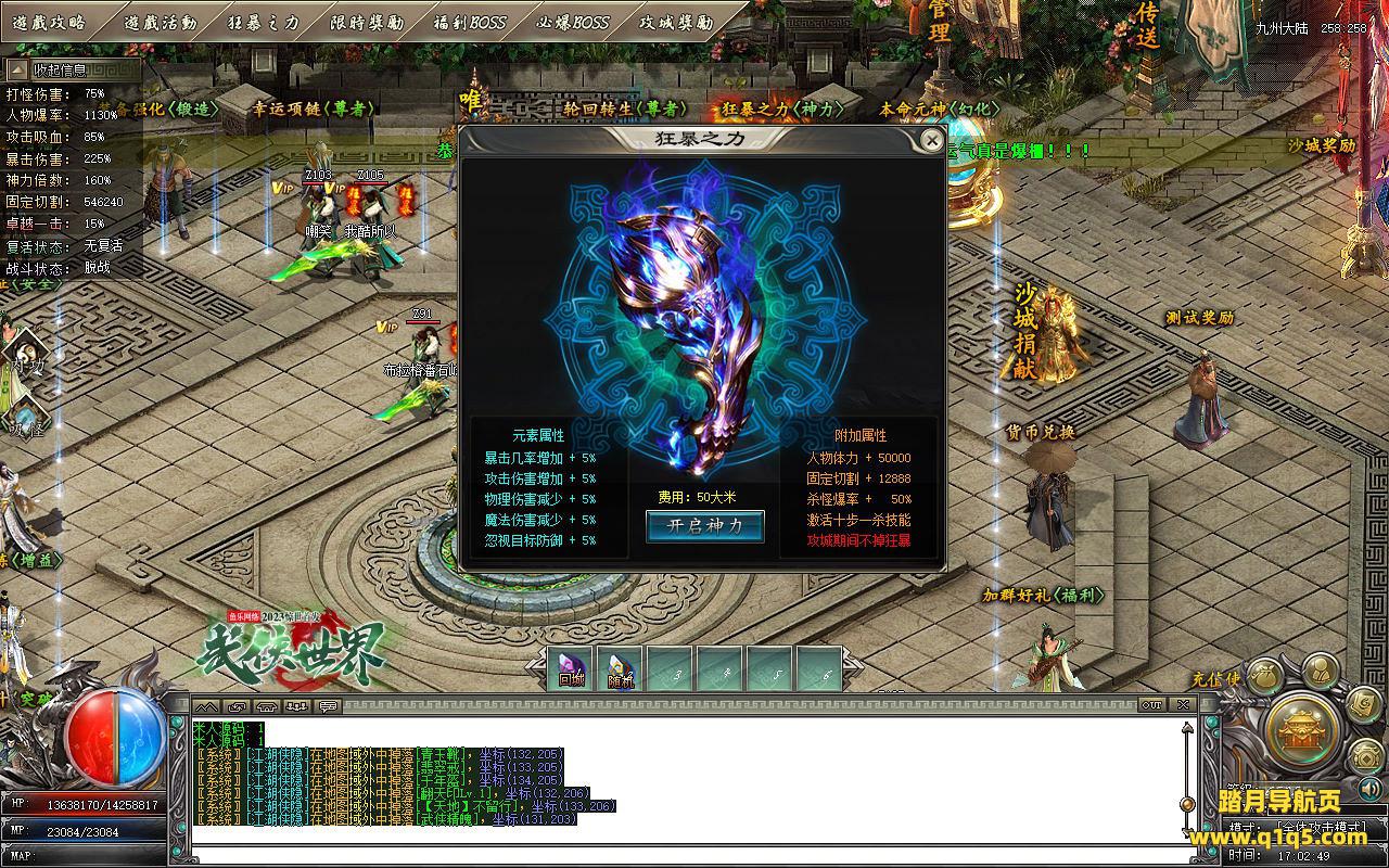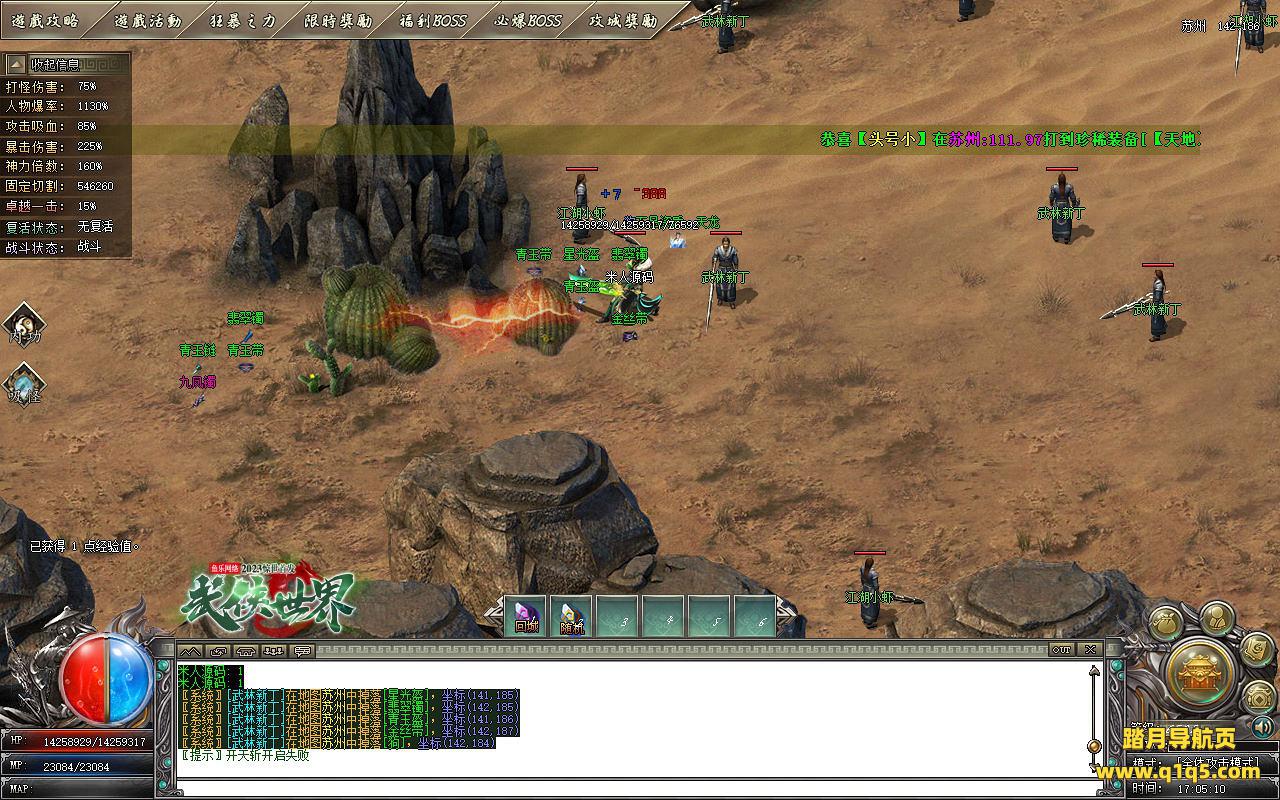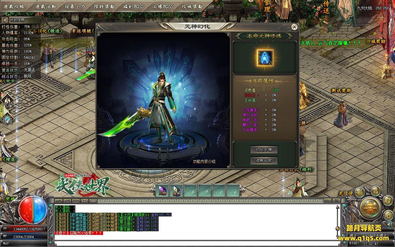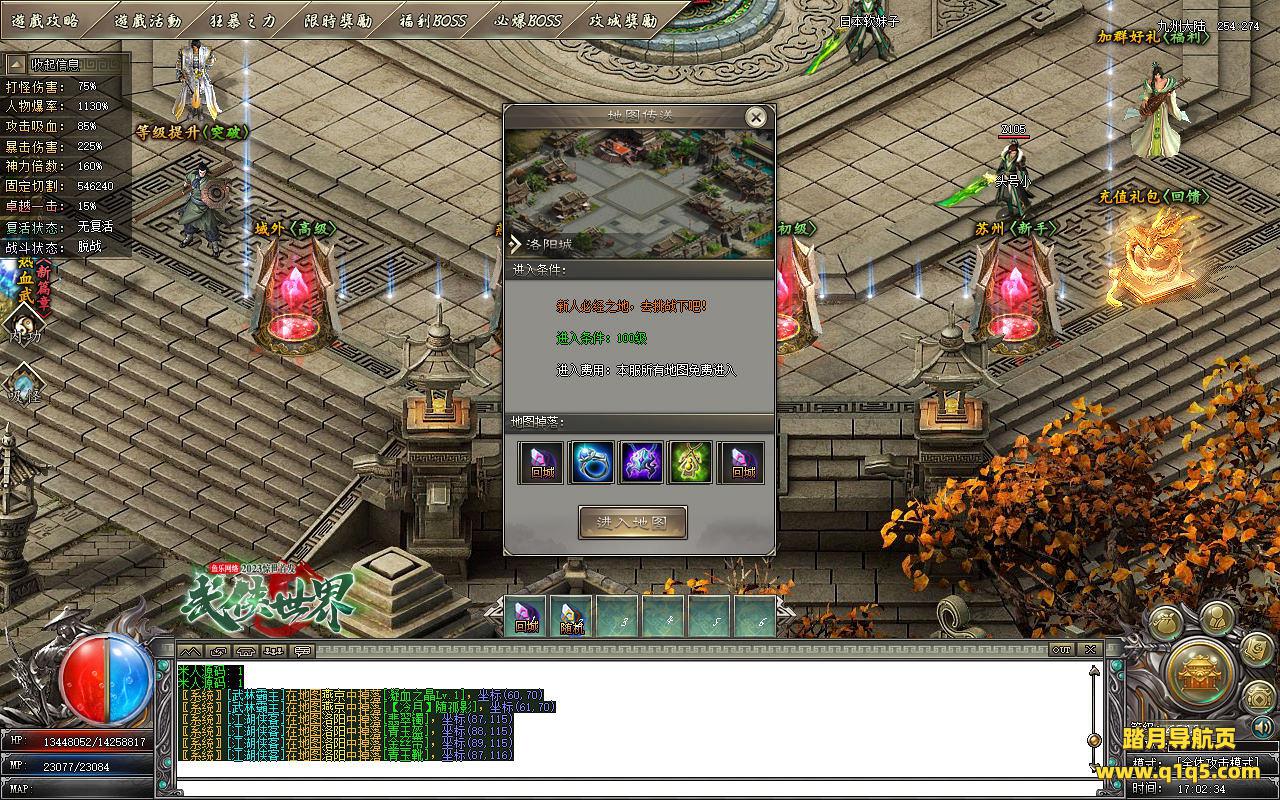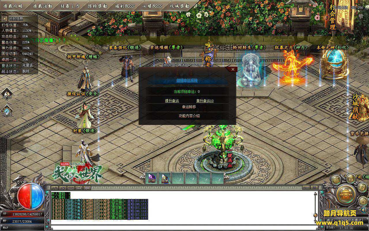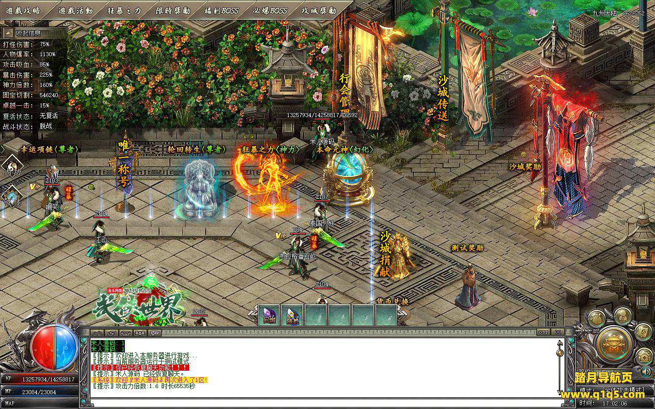 下面我们测试下游戏里的功能。好了。基本上就是这样 了,其他的功能就自行测试吧。更多的游戏资源可访问www.q1q5.com下载,我们每款游戏资源均单独制作了独立视频架设教程,让小白也可以快速上手游戏架设,快来体验做GM的乐趣吧!