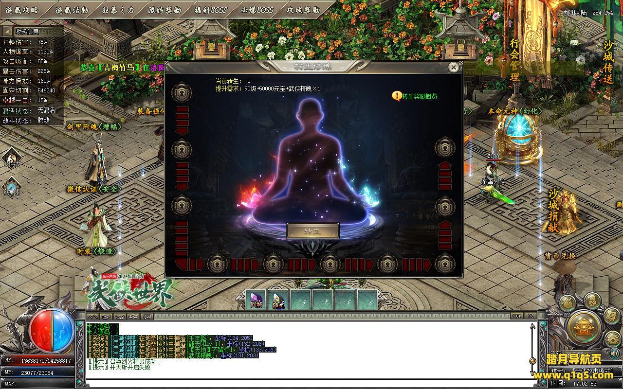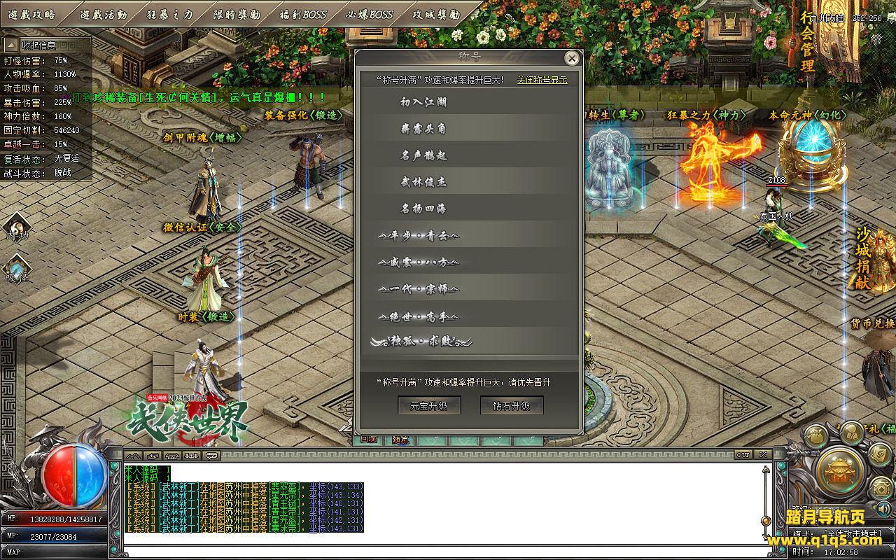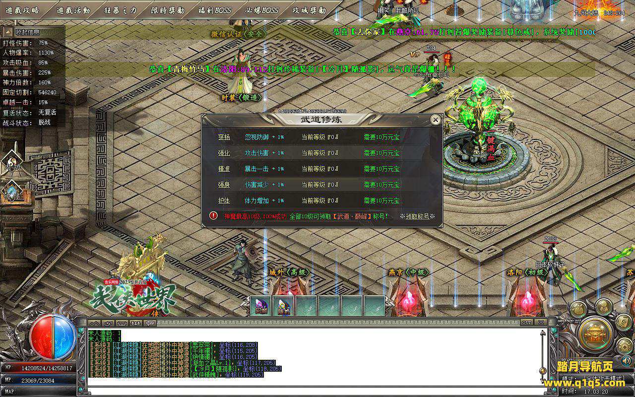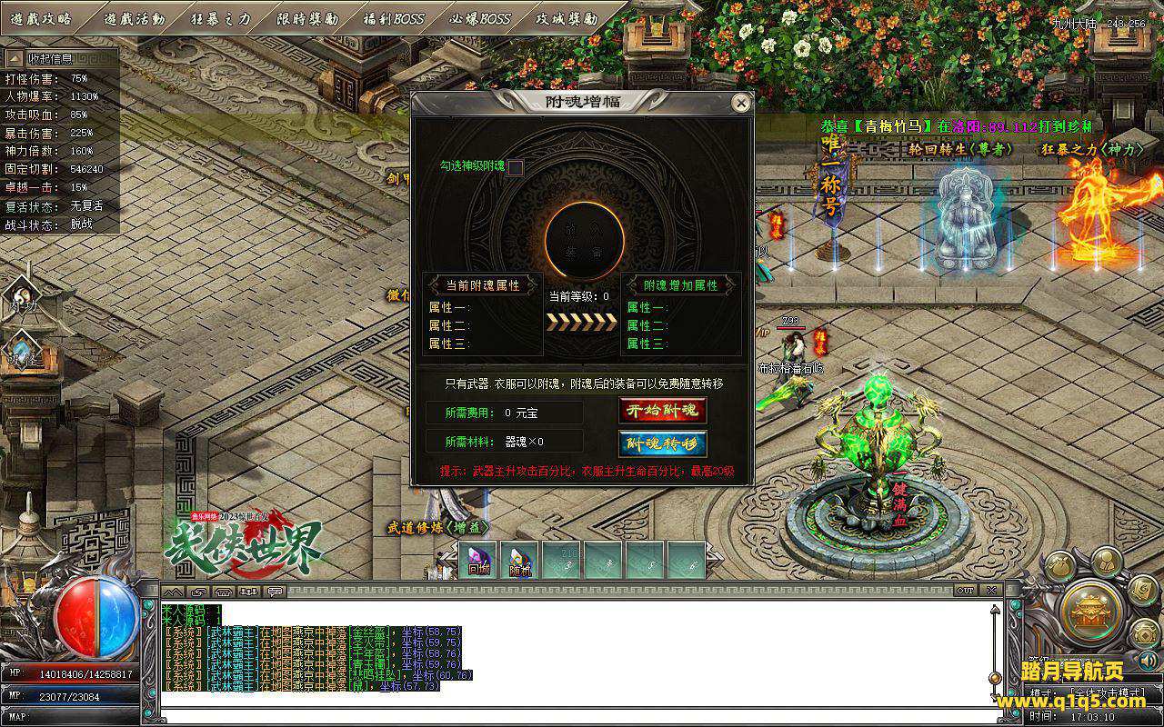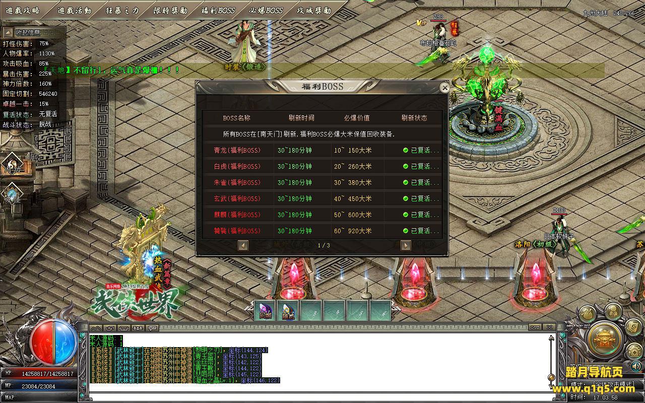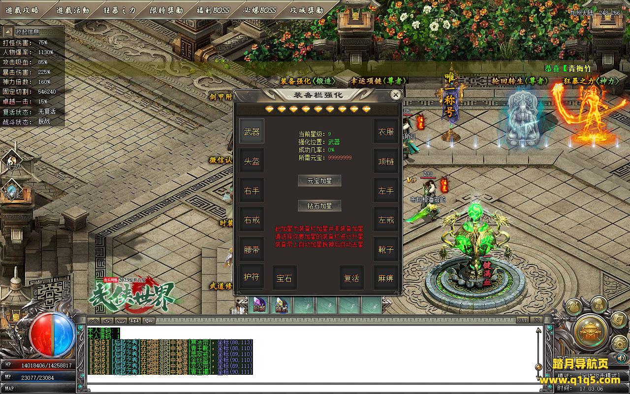 下面我们测试下游戏里的功能。好了。基本上就是这样 了,其他的功能就自行测试吧。更多的游戏资源可访问www.q1q5.com下载,我们每款游戏资源均单独制作了独立视频架设教程,让小白也可以快速上手游戏架设,快来体验做GM的乐趣吧!