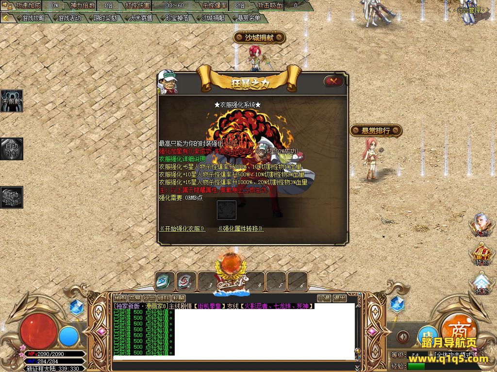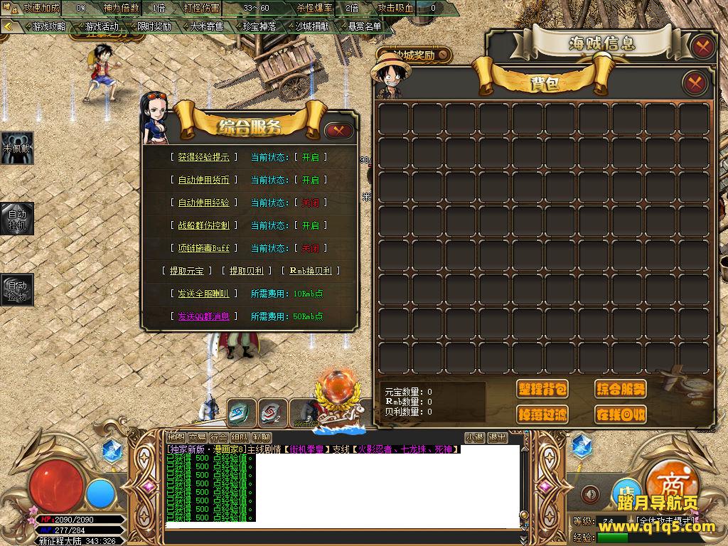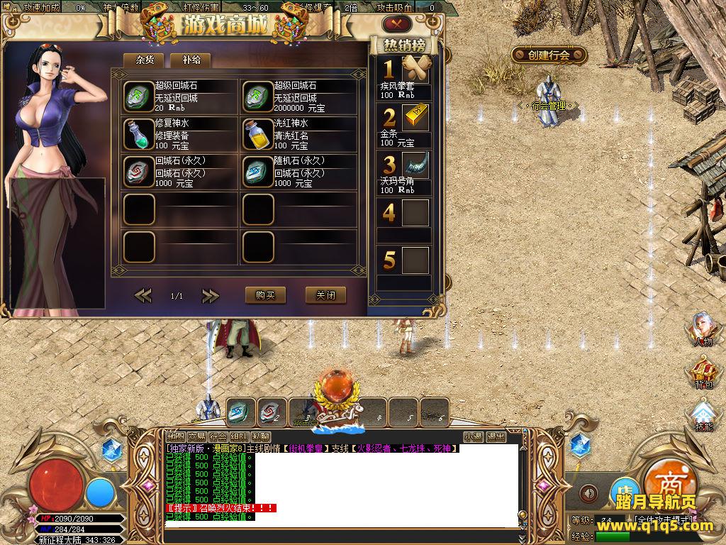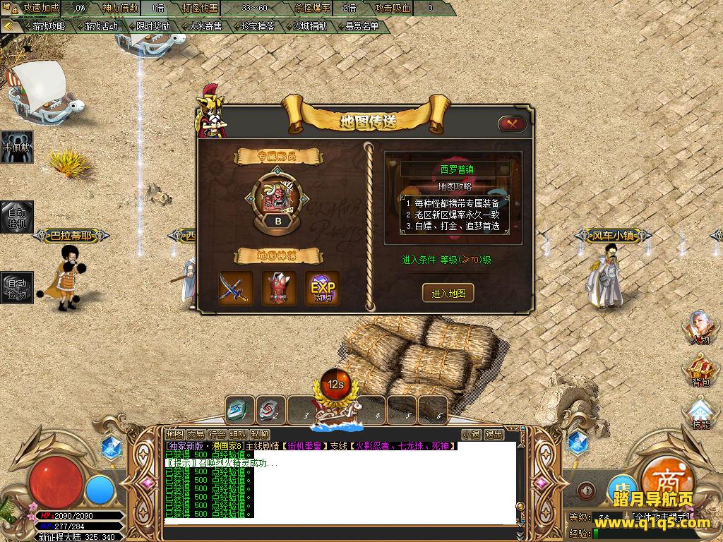 下面我们测试下游戏里的功能。好了,其他功能就自行测试吧。更多的游戏资源可以访问www.q1q5.com下载,我们每款游戏资源均单独制作的有独立的视频架设教程,让小白也可以快速上手游戏架设,快来体验自己做GM的乐趣吧!
