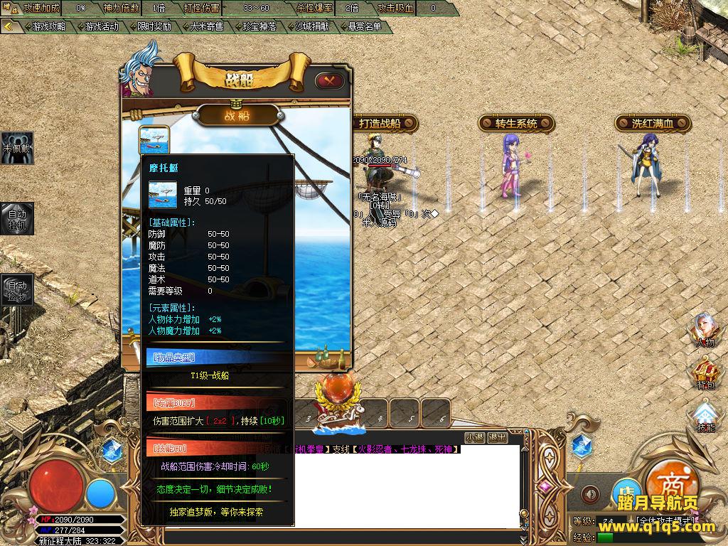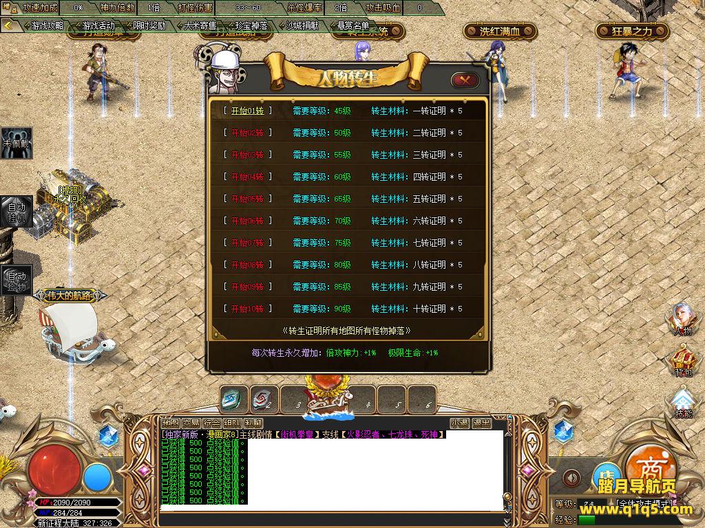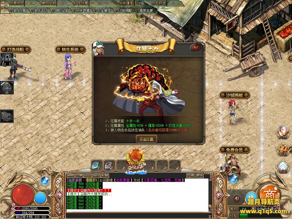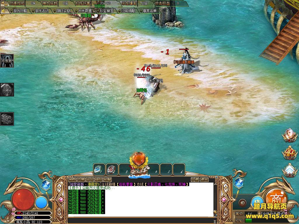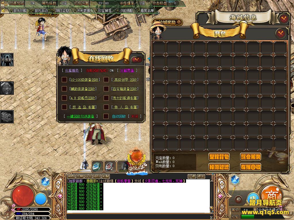 下面我们测试下游戏里的功能。好了,其他功能就自行测试吧。更多的游戏资源可以访问www.q1q5.com下载,我们每款游戏资源均单独制作的有独立的视频架设教程,让小白也可以快速上手游戏架设,快来体验自己做GM的乐趣吧!