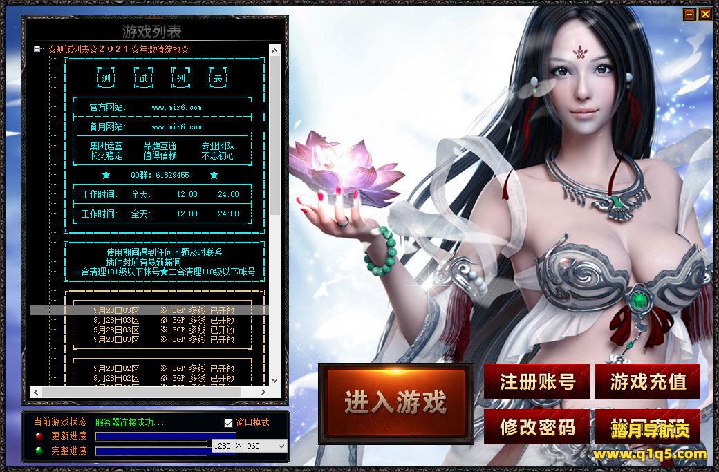 好了,其他功能自行测试吧。更多的游戏资源请访问www.q1q5.com下载,我们每款游戏资源均单独制作的有独立的视频架设教程,让小白也可以快速上手游戏架设,体验做GM的乐趣!