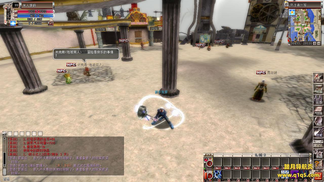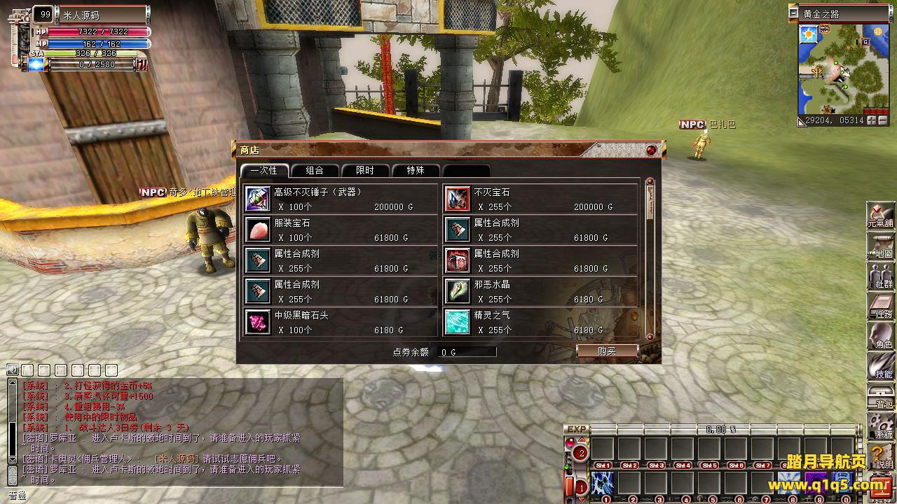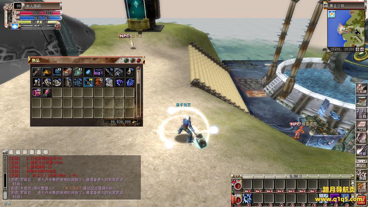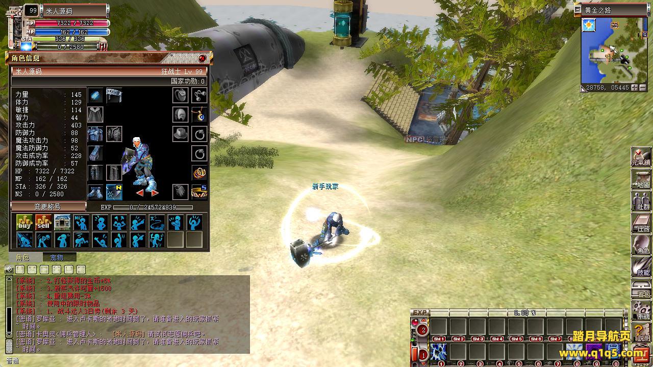 下面我们来测试下游戏里的功能看看。好了,其他功能就自行测试了吧。更多的游戏资源可以访问www.q1q5.com下载,我们每款游戏资源均单独制作了独立的视频架设教程,让小白也可以快速上手游戏架设,快来体验自己做GM的乐趣吧!