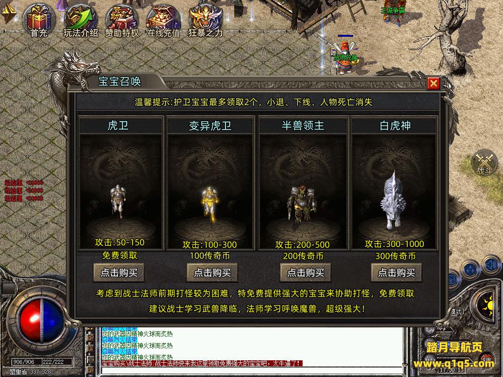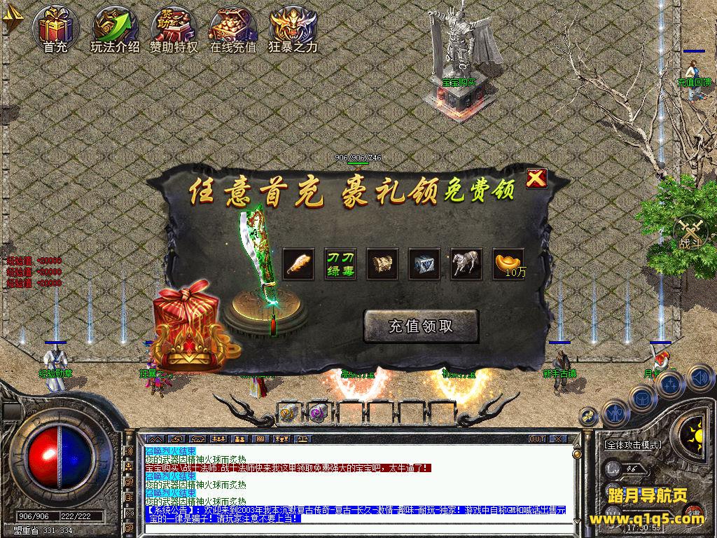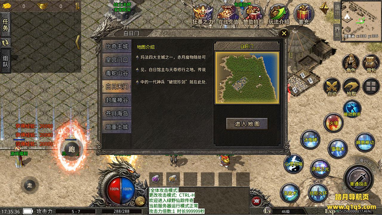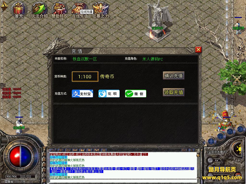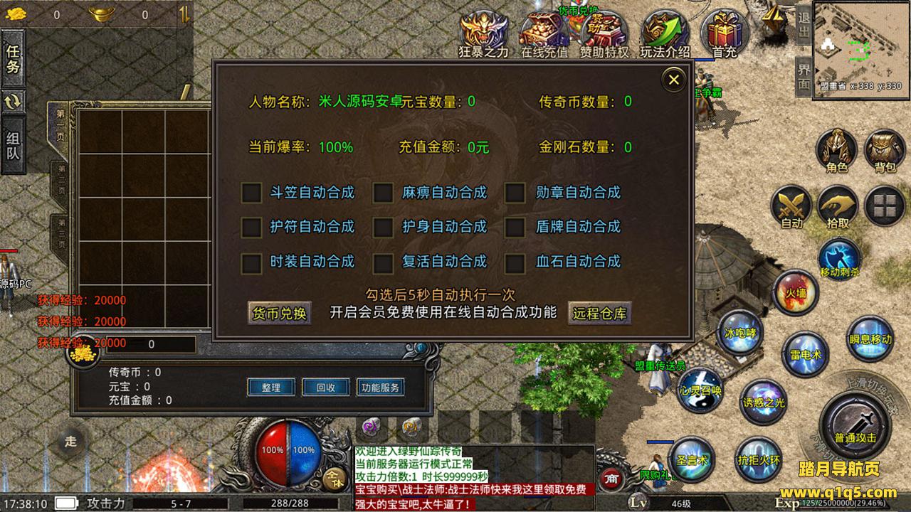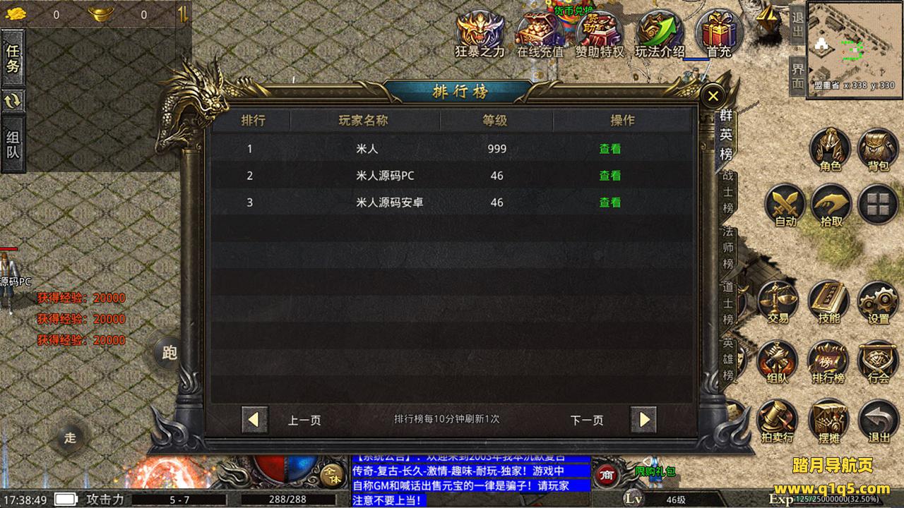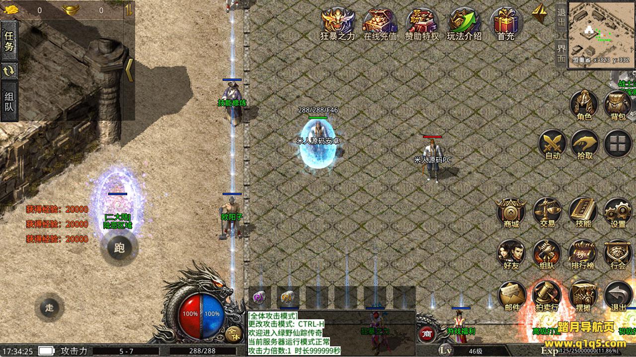 下面我们分别在PC客户端和安卓客户端里测试下游戏里的功能看看。好了,其他功能就自行测试吧。更多的游戏资源可以访问www.q1q5.com下载,我们每款游戏资源均单独制作了独立的视频架设教程,让小白也可以快速上手游戏架设,快来体验自己做GM的乐趣吧!