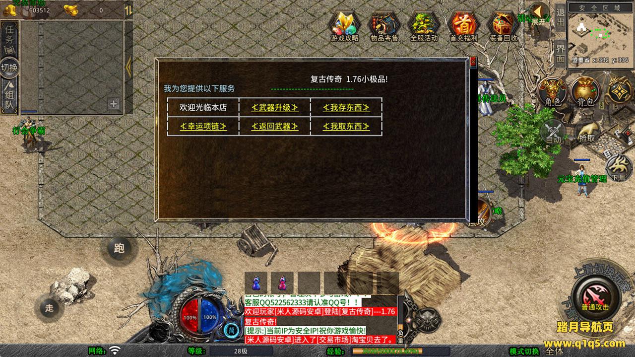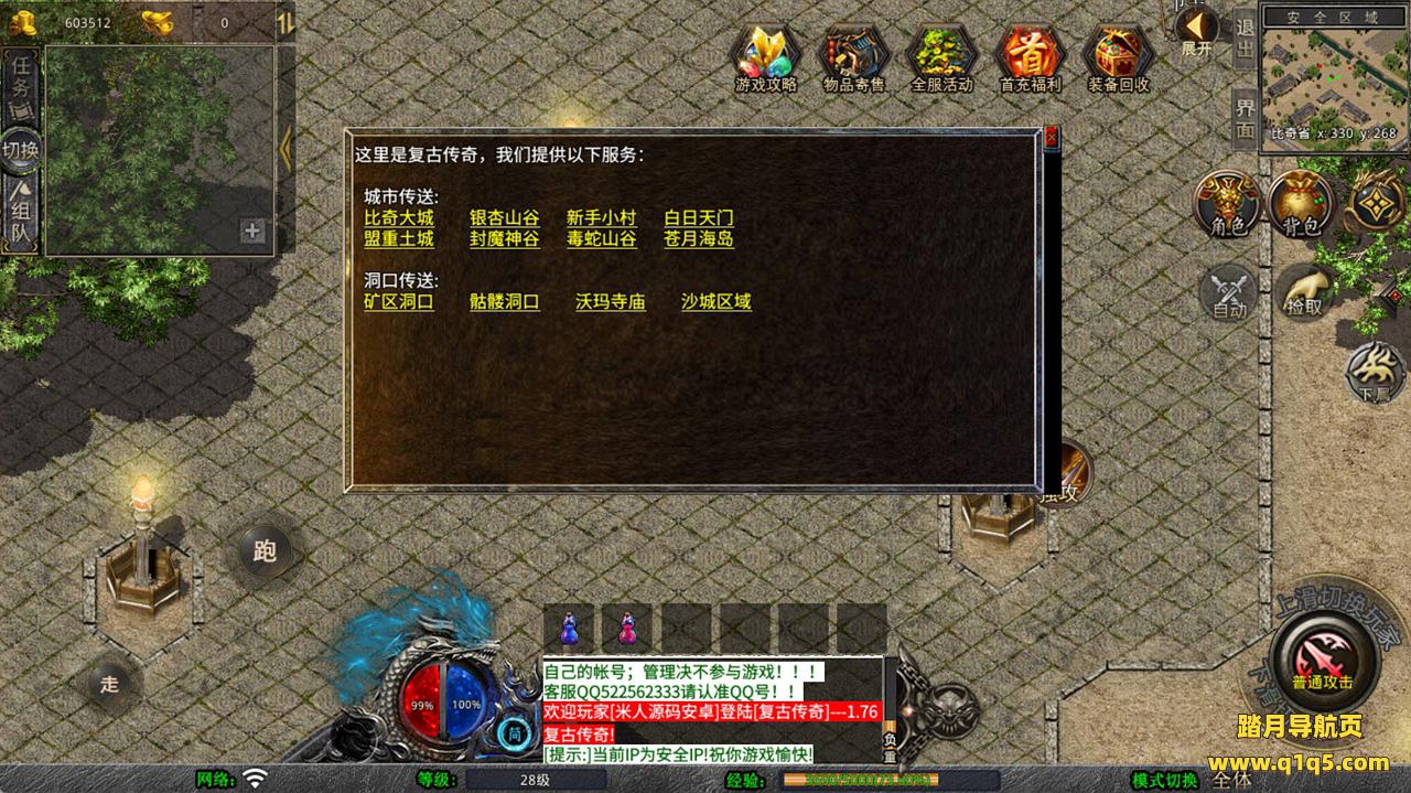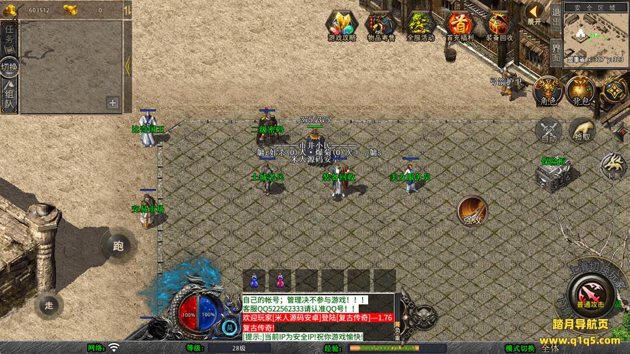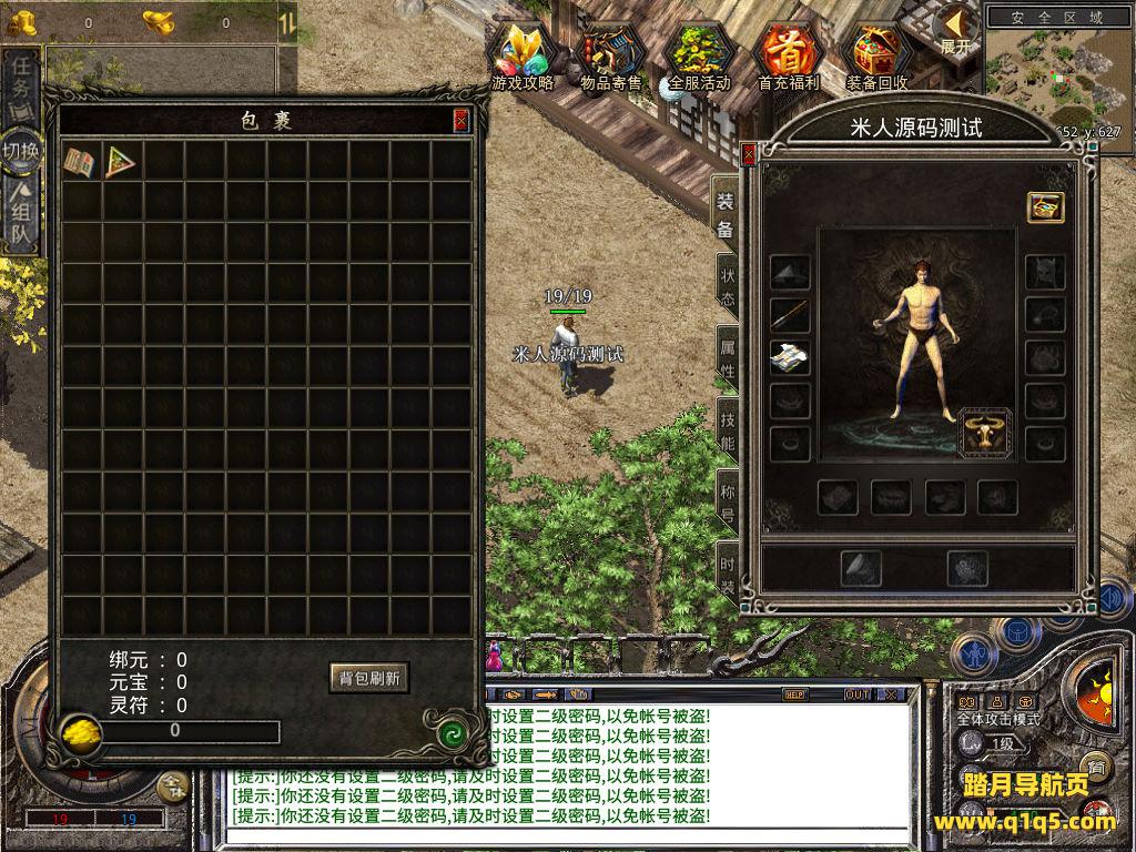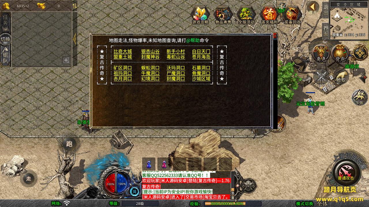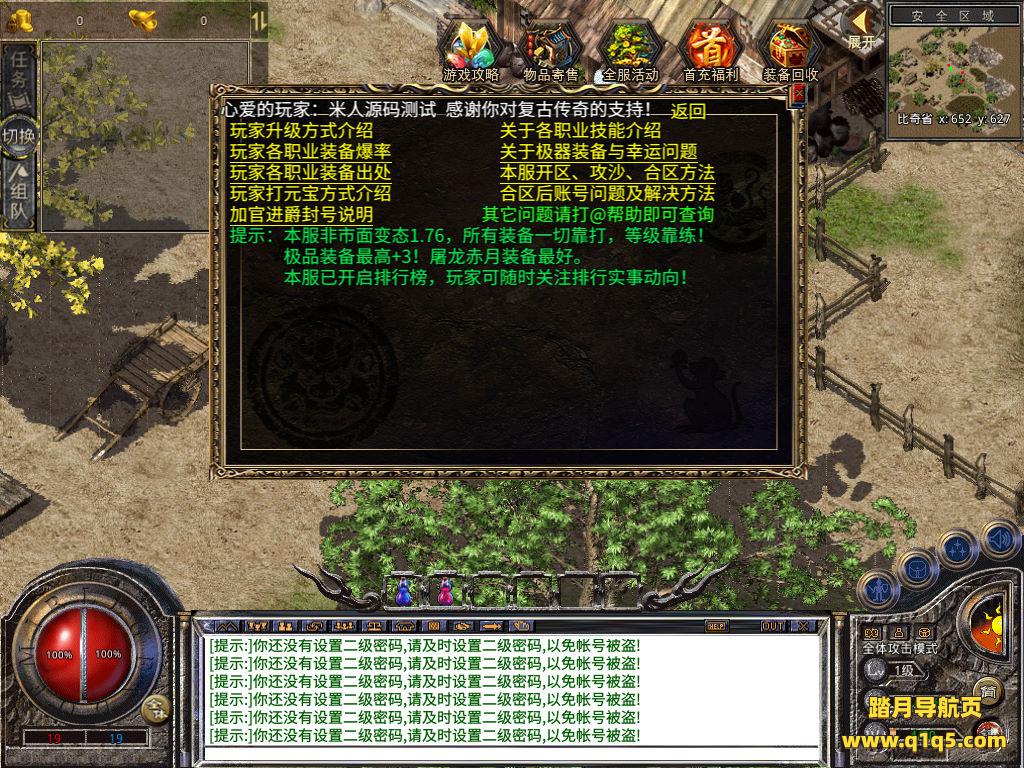 下面我们进入游戏测试看看游戏里的功能。好了,其他功能就自行测试吧。更多的游戏资源可以访问www.q1q5.com下载,我们每款游戏资源均单独制作了独立的视频架设教程,让小白也可以快速上手游戏架设,快来体验自己做GM的乐趣吧!