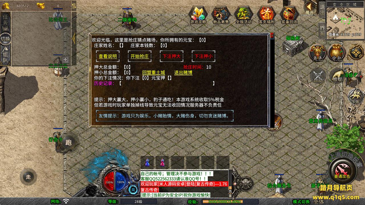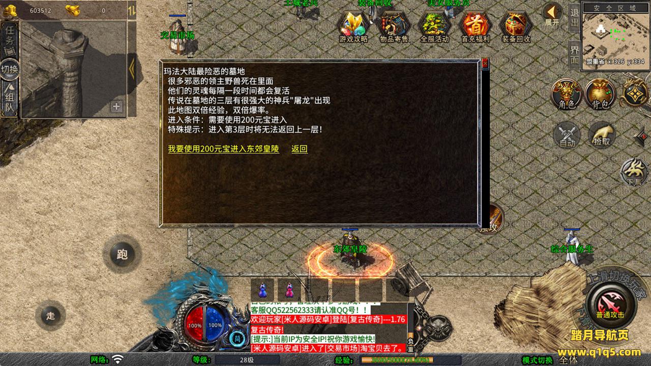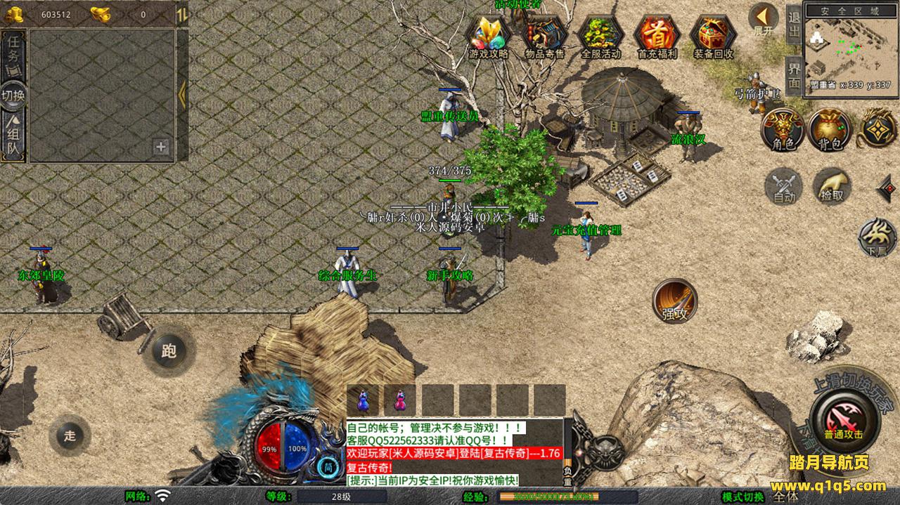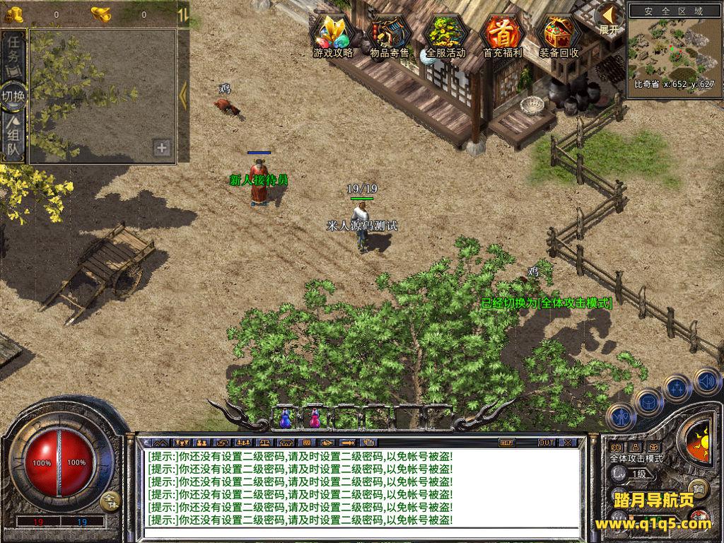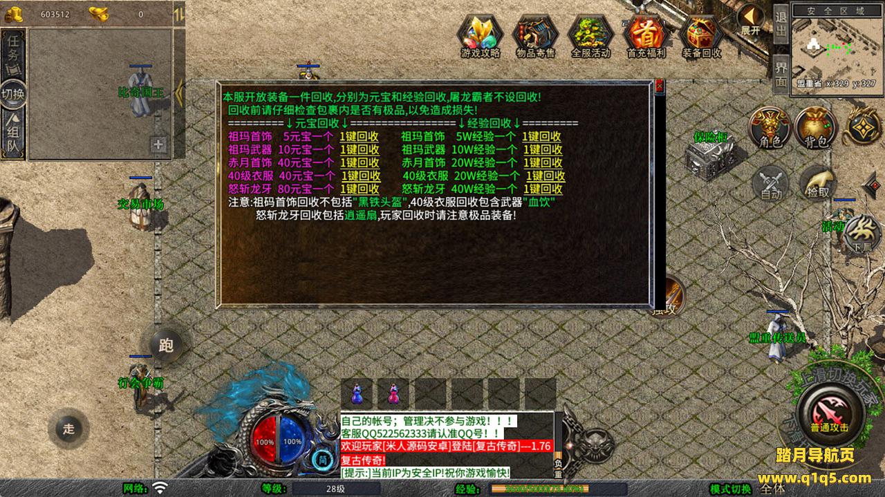 下面我们进入游戏测试看看游戏里的功能。好了,其他功能就自行测试吧。更多的游戏资源可以访问www.q1q5.com下载,我们每款游戏资源均单独制作了独立的视频架设教程,让小白也可以快速上手游戏架设,快来体验自己做GM的乐趣吧!