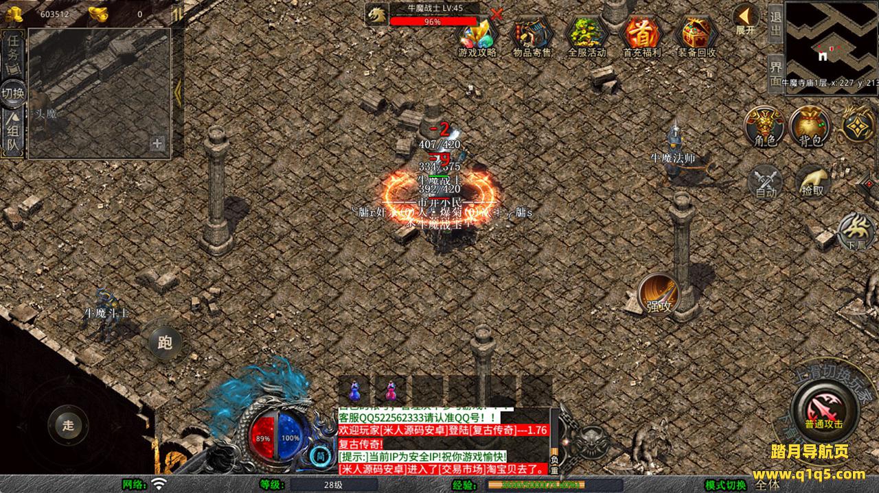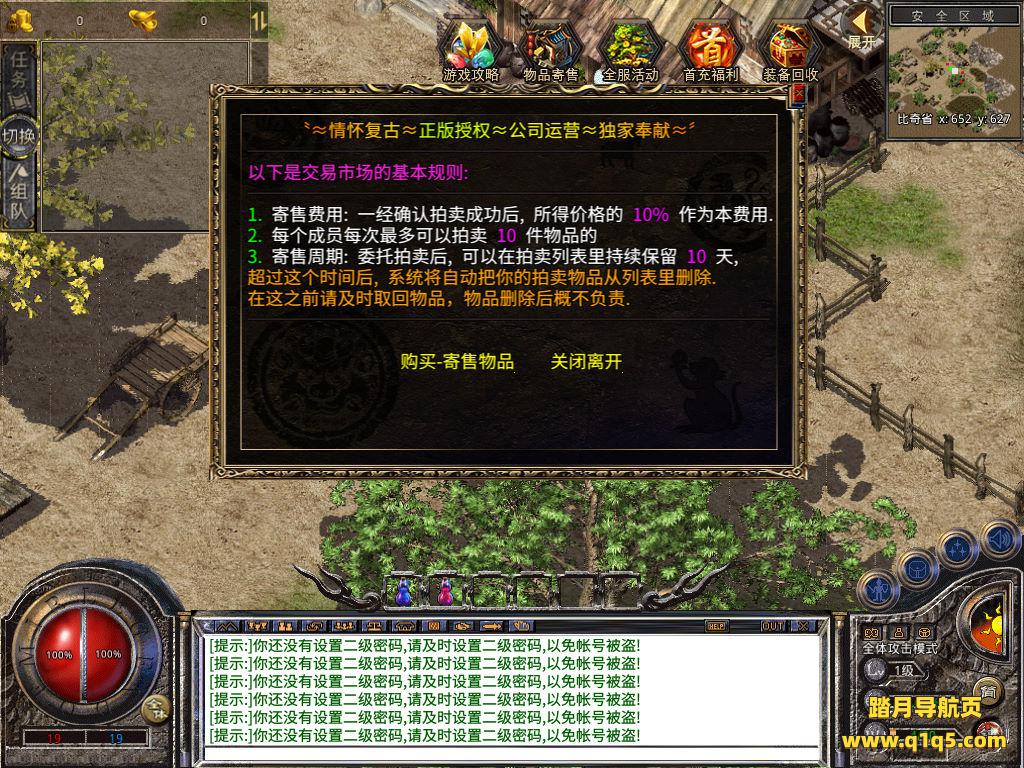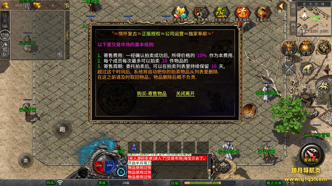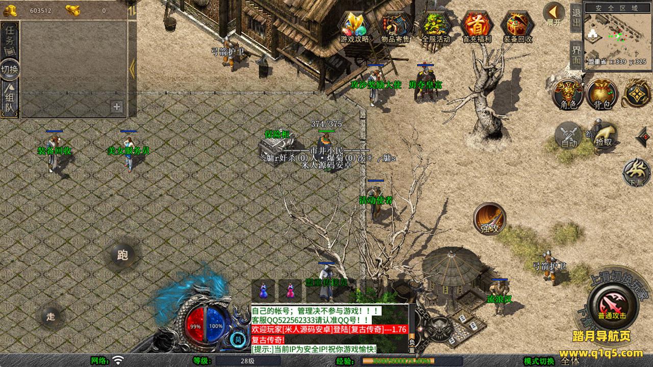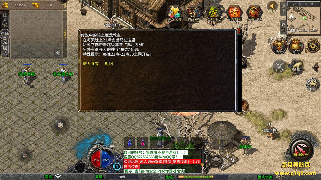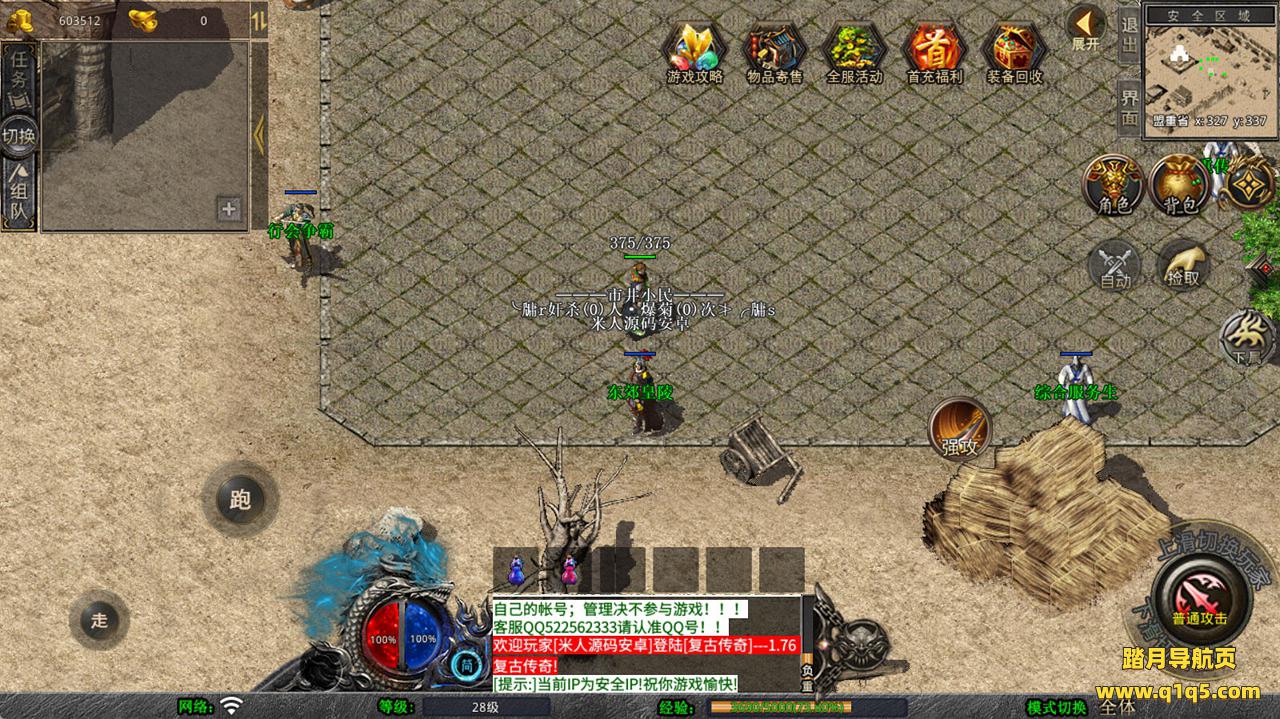 下面我们进入游戏测试看看游戏里的功能。好了,其他功能就自行测试吧。更多的游戏资源可以访问www.q1q5.com下载,我们每款游戏资源均单独制作了独立的视频架设教程,让小白也可以快速上手游戏架设,快来体验自己做GM的乐趣吧!