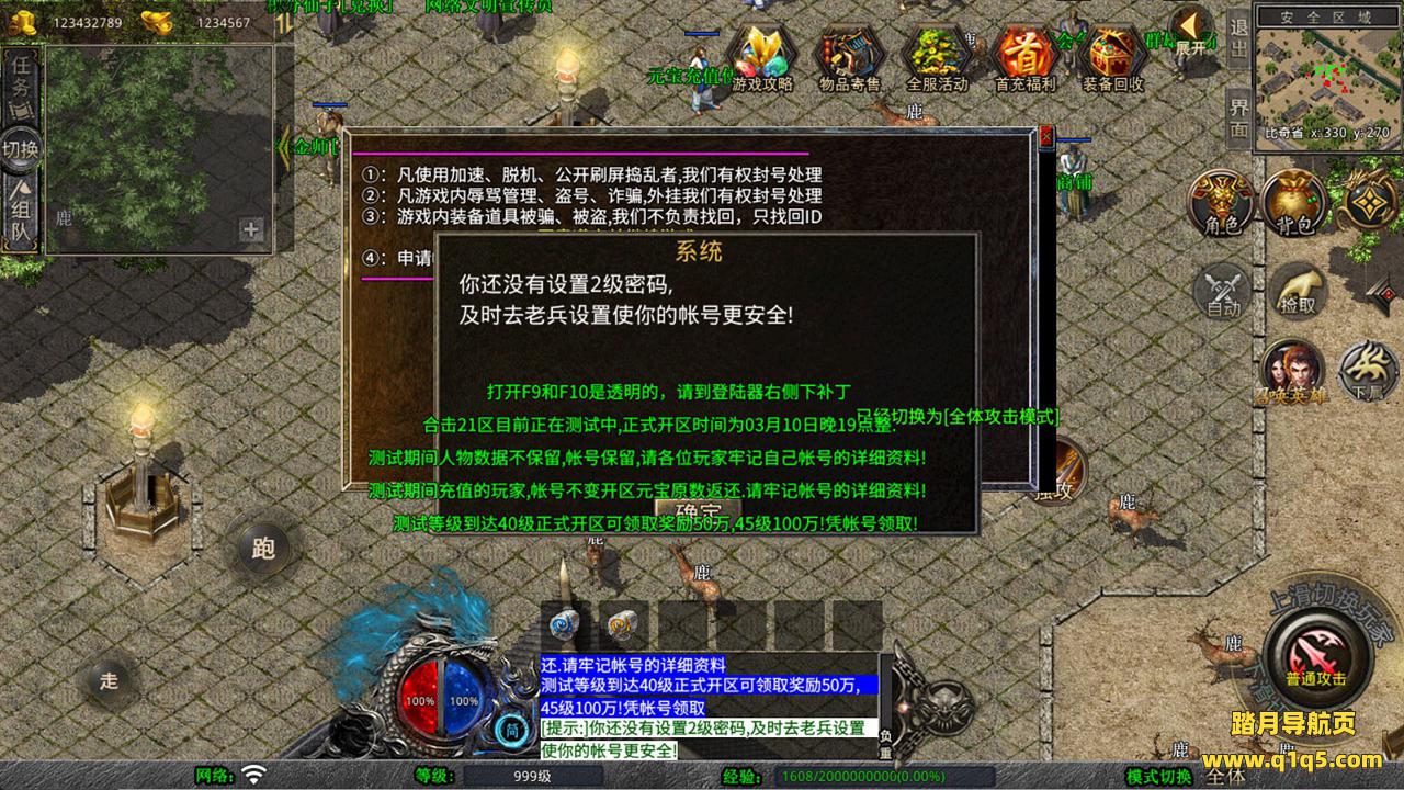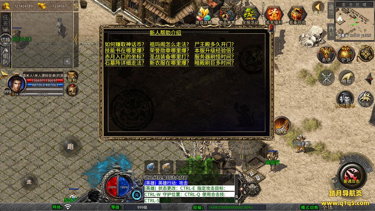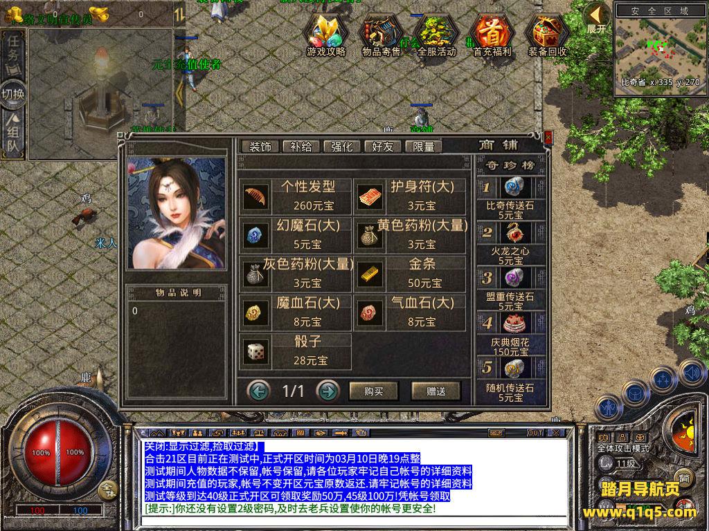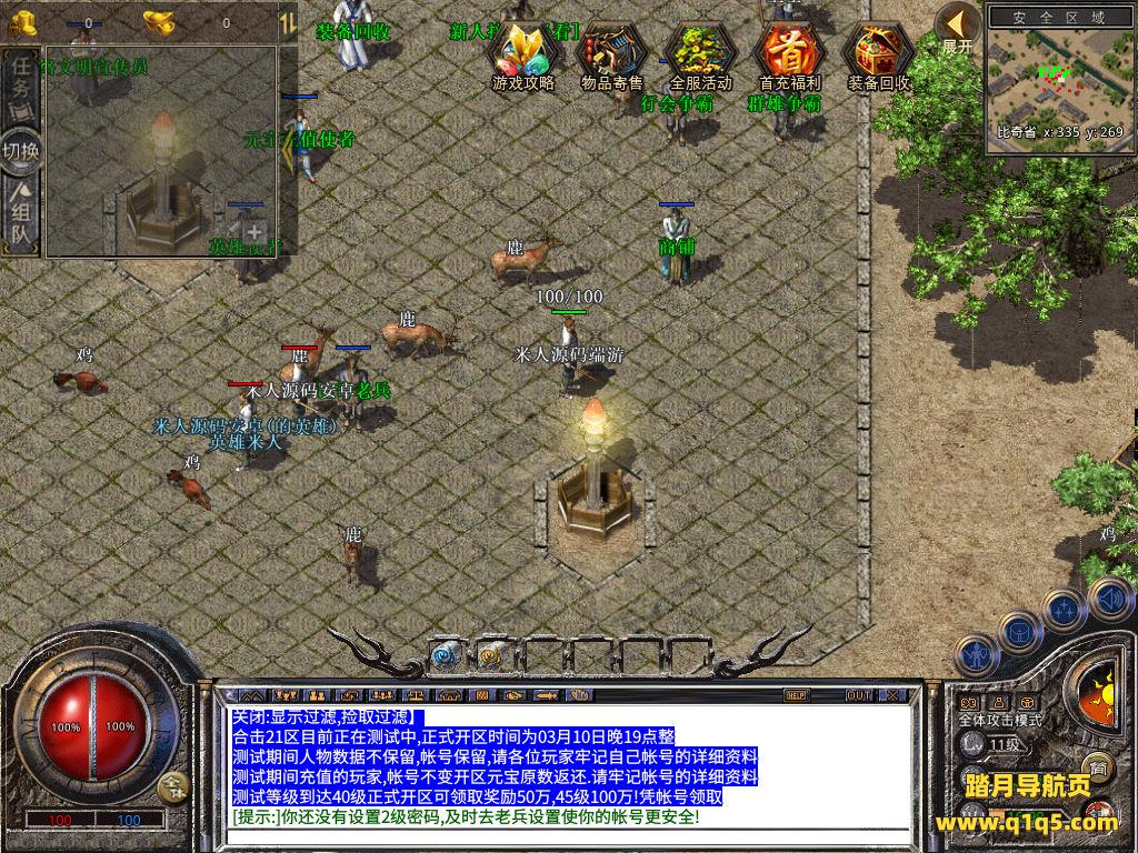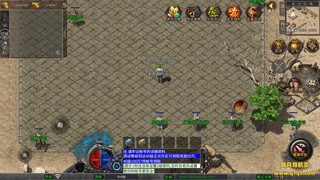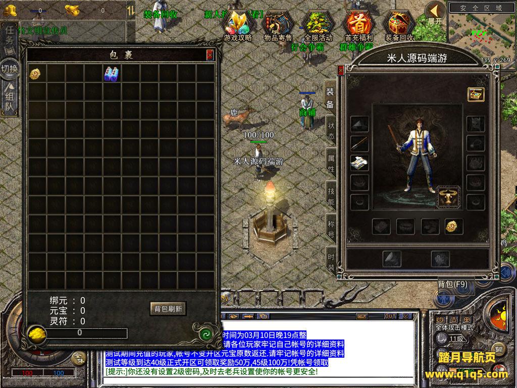 下面我们来测试下游戏里的功能看看。好了,其他功能就自行测试吧。更多的游戏资源可以访问www.q1q5.com下载,我们每款游戏资源均单独制作的有独立的视频架设教程,让小白也可以快速上手游戏架设,快来体验自己做GM的乐趣吧!